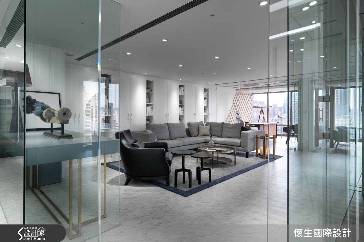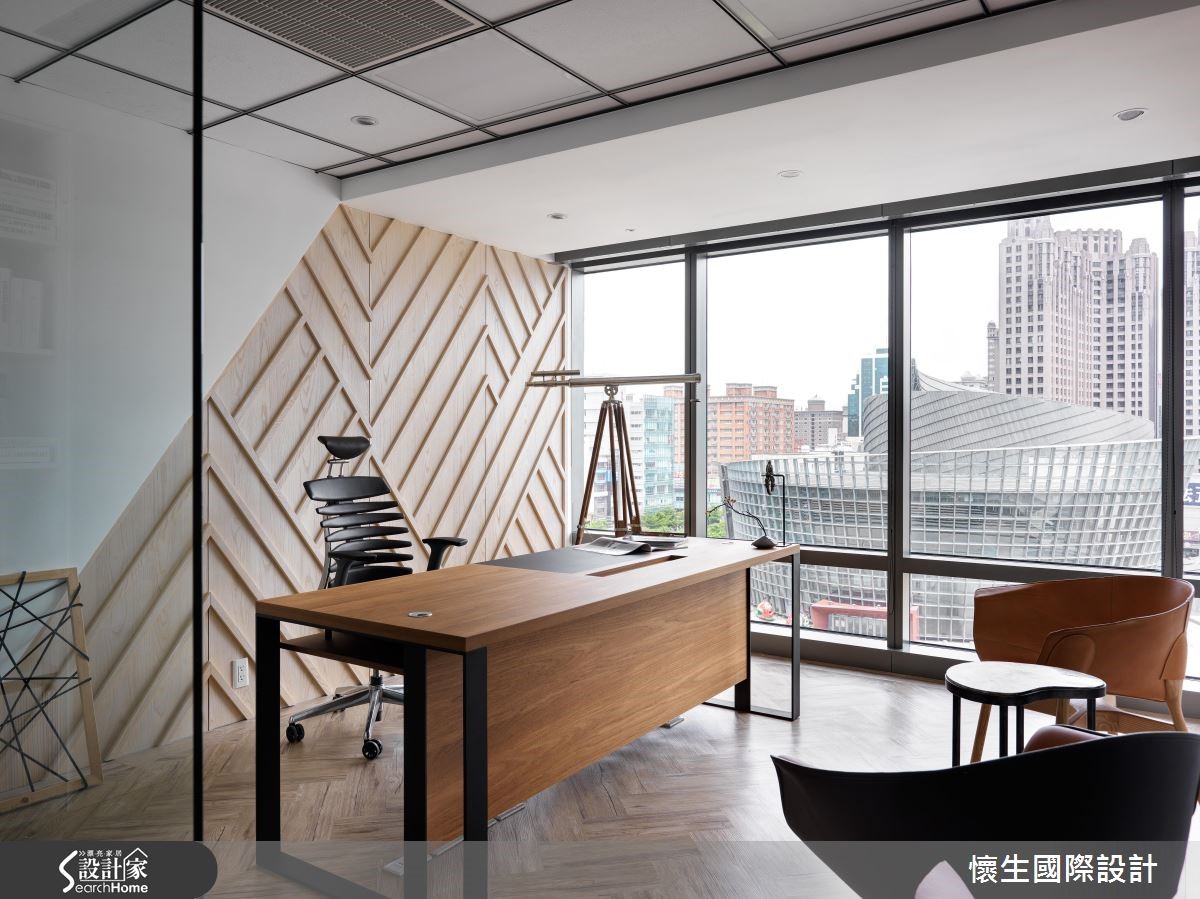 跳脱普通的写字楼规划,融入北欧简约、不失休闲的设计概念,带给客户理性不严肃的空间感。设计师运用白色调打造清爽的门面印象,并穿插延伸线条、间接光带,创造流动感;玄关、厅区则规划玻璃橱窗,使艺品可通透地展示于面前。【玻璃窗景,接收阳光、城市景象】大量的玻璃隔断、落地窗等,型构自由交流的工作环境,同时导入充沛阳光,接收开阔的城市景象,整体氛围透露轻松闲适,而家具则采深灰、浅灰与深蓝色系,以及地毯、布沙发等,搭佐立面与天花理性的框架线性,阐述现代舒适风格! 设计师藉著地板的异材质铺述,界定出公共接待区、办公区的内外分野,并在小型会议室、主管室墙面做出特殊造型,无论是木作立体线条或是仿清水模材质,都充分传达了场域的个性主题!