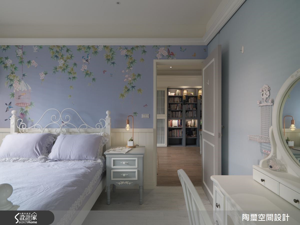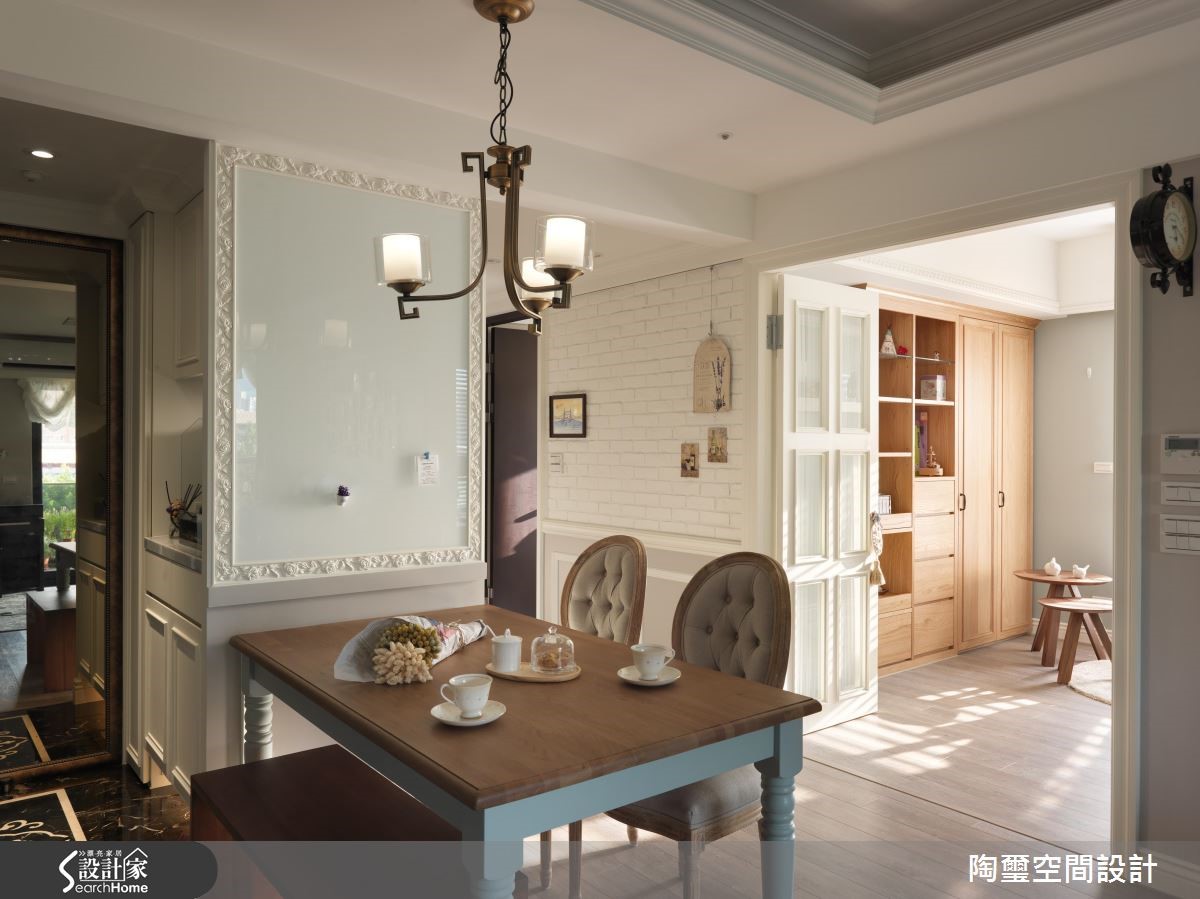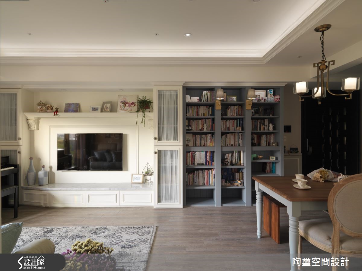 喜欢古典风格,却又担心太华丽造作。设计师适度抹去既有的繁丽雕琢印象,藉由提升空间的自然亮度,搭配中性的棕色、灰蓝色调,让空间看起来温和而自然,另外设计师也挹注多元的收纳机能,满足屋主对于大量藏书、储物的收纳需求。【风格,英式古典的幸福温度】新成屋的屋况条件极佳,唯独原有书房格局让采光有所限制,设计师拆除隔间墙后,令室内中段也得以享有舒适光感,而略为幽暗的玄关处则设置镜面,承接公领域的明亮亮度,并具放大空间的视觉效果,再搭配拼花大理石地板,营造出低调而奢华的入门气场。另外,喜欢英式古典风格的屋主,平时拥有丰富的藏书,公共空间利用线板搭配欧式家具,框画出典雅的异国气质。【实用,满足收纳的多重用途】客厅电视墙采用半壁炉式设计,旁边也规划一道灰蓝色落地书柜,完美达成风格与实用机能需求,而餐桌旁则安排一道附有白膜玻璃的双面柜,可以进行收纳,也兼具界定空间、生活备忘录等多重用途。进入主卧室,以熏衣草色和花草语汇渲染浪漫的睡眠氛围,纯白线板门片则隐去盥洗区及衣柜收纳的存在感,让整体风格更具一致性。