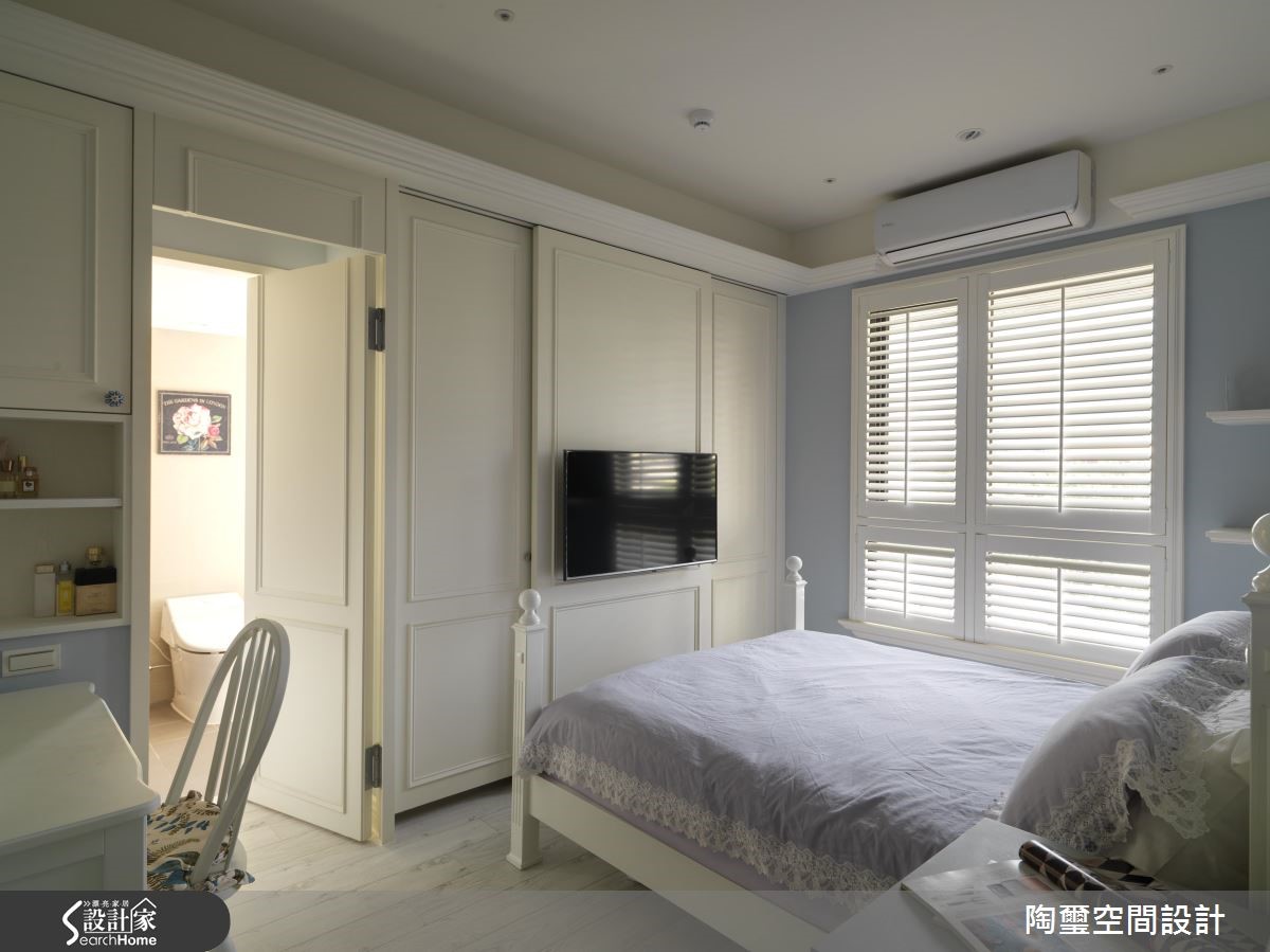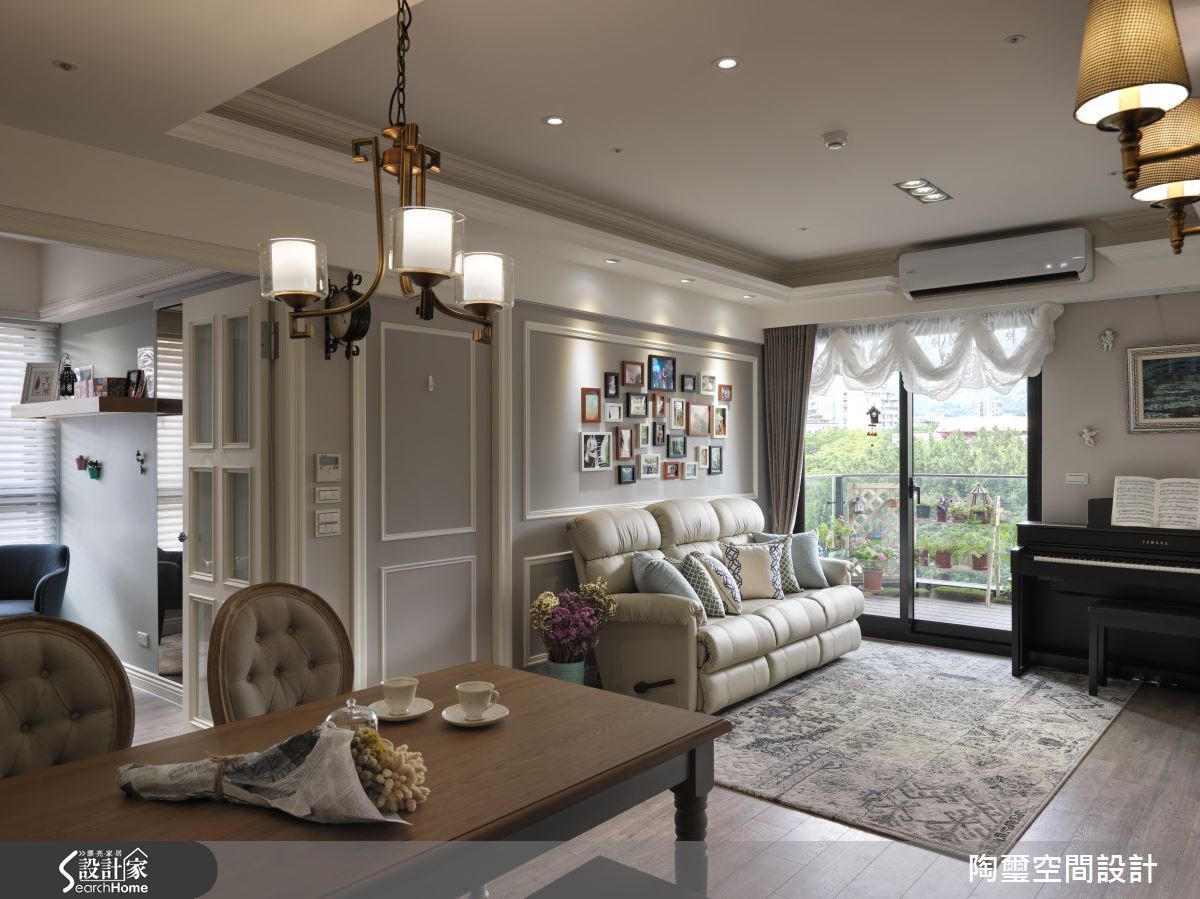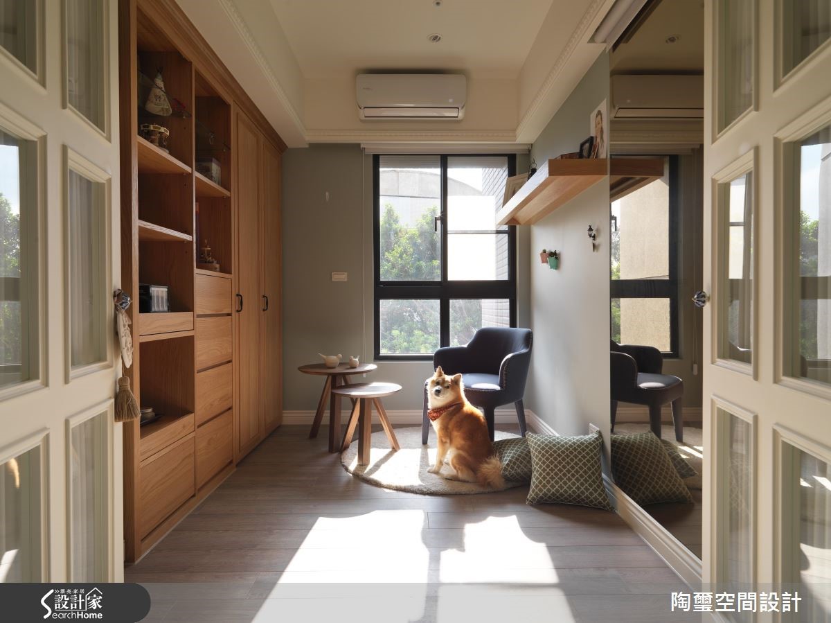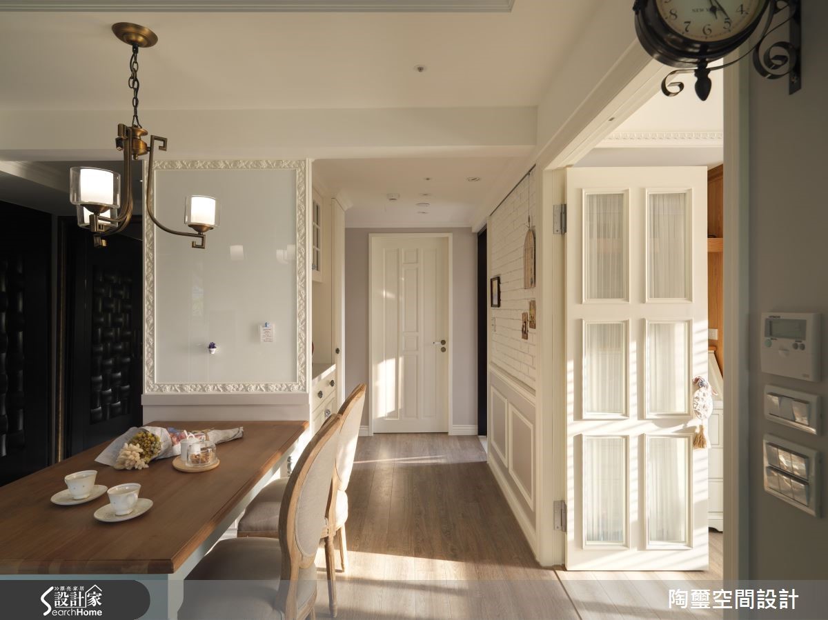喜欢古典风格,却又担心太华丽造作。设计师适度抹去既有的繁丽雕琢印象,藉由提升空间的自然亮度,搭配中性的棕色、灰蓝色调,让空间看起来温和而自然,另外设计师也挹注多元的收纳机能,满足屋主对于大量藏书、储物的收纳需求。【风格,英式古典的幸福温度】新成屋的屋况条件极佳,唯独原有书房格局让采光有所限制,设计师拆除隔间墙后,令室内中段也得以享有舒适光感,而略为幽暗的玄关处则设置镜面,承接公领域的明亮亮度,并具放大空间的视觉效果,再搭配拼花大理石地板,营造出低调而奢华的入门气场。另外,喜欢英式古典风格的屋主,平时拥有丰富的藏书,公共空间利用线板搭配欧式家具,框画出典雅的异国气质。【实用,满足收纳的多重用途】客厅电视墙采用半壁炉式设计,旁边也规划一道灰蓝色落地书柜,完美达成风格与实用机能需求,而餐桌旁则安排一道附有白膜玻璃的双面柜,可以进行收纳,也兼具界定空间、生活备忘录等多重用途。进入主卧室,以熏衣草色和花草语汇渲染浪漫的睡眠氛围,纯白线板门片则隐去盥洗区及衣柜收纳的存在感,让整体风格更具一致性。