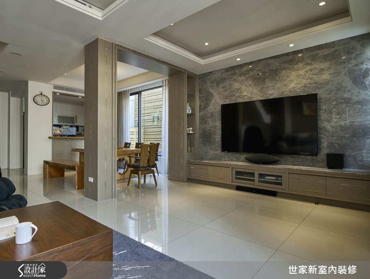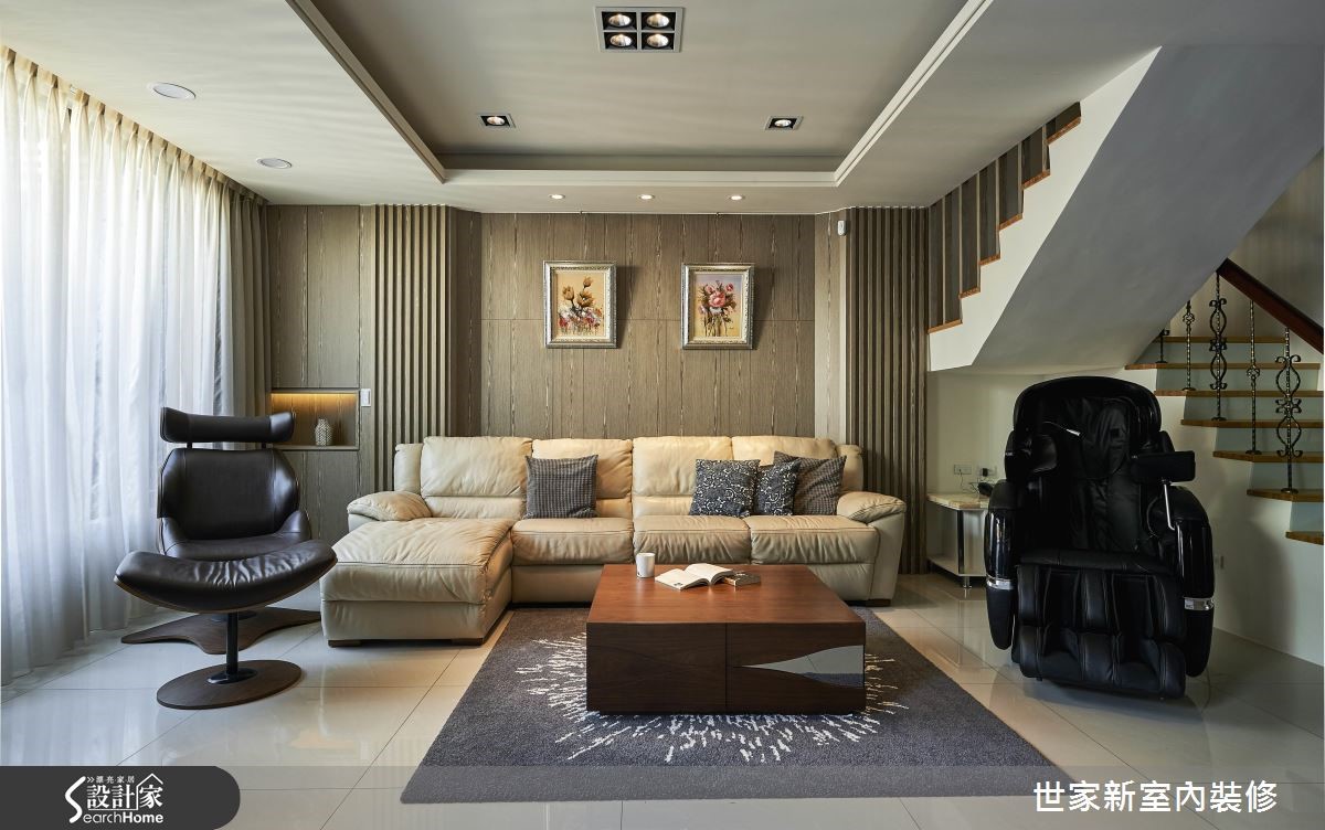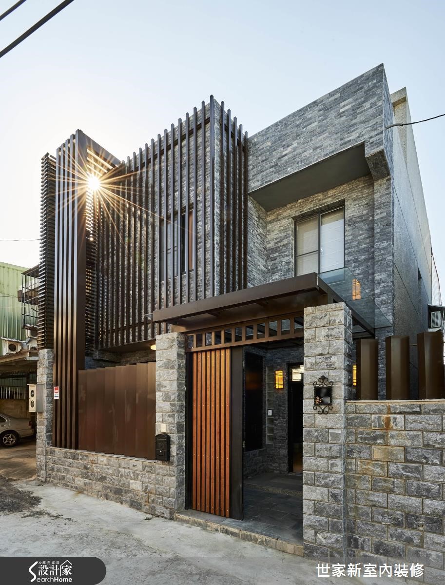 屋主夫妻与爸妈同住在郊区的231平方米独栋楼,利用带有自然色彩的建材营造温润氛围,宽敞的开放动线更为中高龄族群打造友善生活。 【大地色和宽敞动线,空间好纾压】建筑外观与围墙运用大量石、木材质与格栅设计,粗犷的纹理构筑充满日式气息的印象。进屋前设置的小型庭院,则能让绿植延伸进入室内转变氛围,形成内外空间的清新缓冲。一楼以开放式公共空间为主,因为屋高足够,采用吊隐式冷气达到简洁美观的目的。客厅以大地色系佐以木格栅呈现自然放松的氛围,电视主墙则采用带有天然纹理的石材,营造休闲中不失大器的格调。由于餐厅有著厚重柱体,为了美观,特别设置以木皮包覆,且与电视墙相连,形成附有展示机能的拱门造型,成为开放客厅与餐厨的区隔。并利用吧台划分用餐与烹饪动线,形成工整的居家层次性。