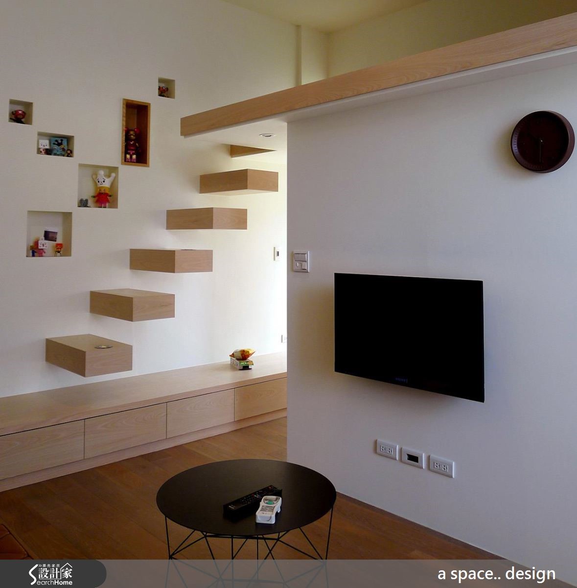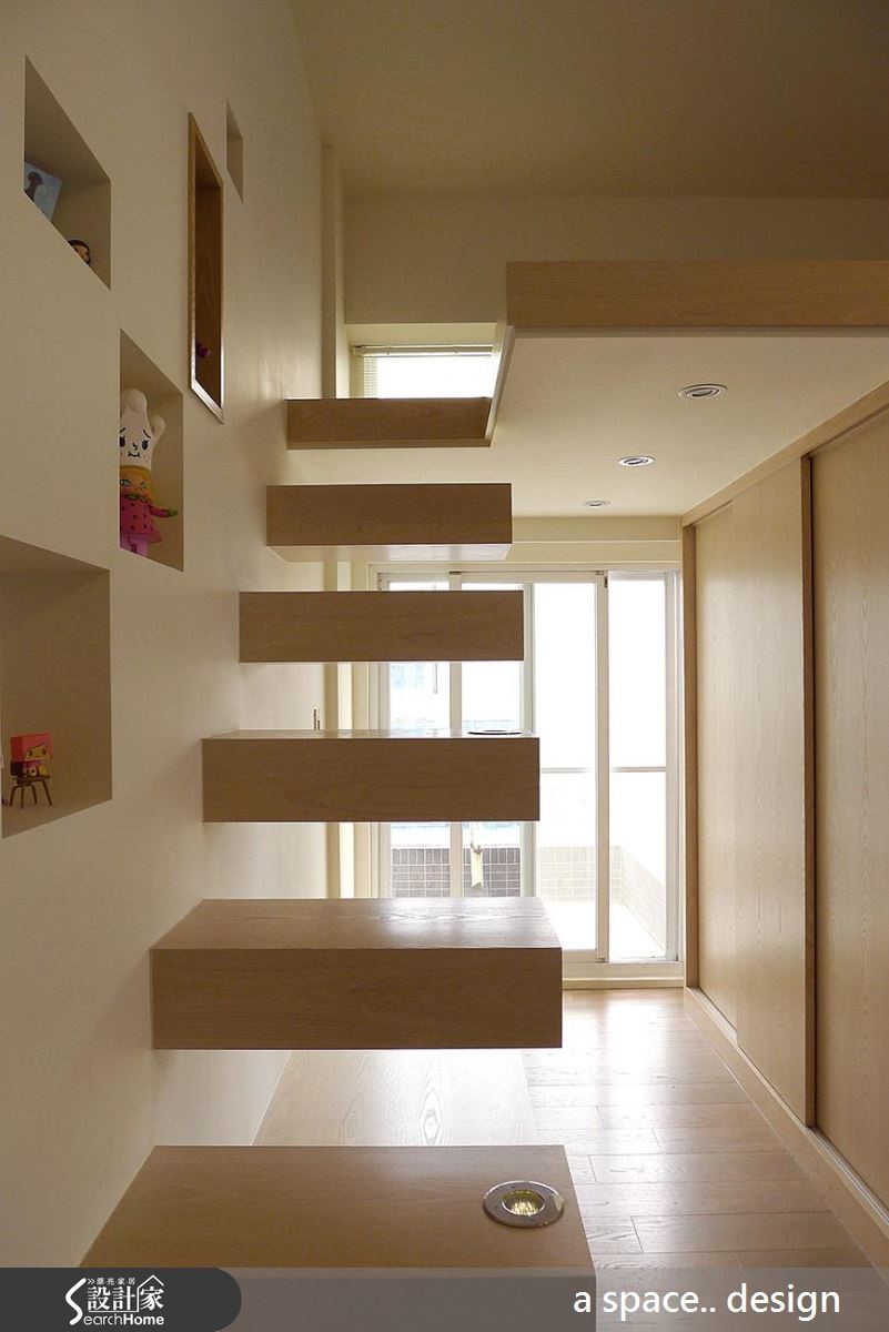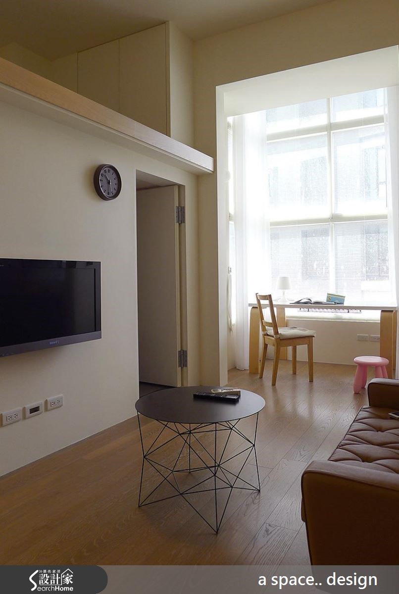 即便是单身生活,也能住得温暖又舒适!40平方米的跃层空间,以暖白色作为简约基底,散发着木质的温润魅力,设计师更融入完整的居家机能性和充裕收纳,具有生活美感,也能有实用性。 【简单色调和材质,营造自然质感】不过度矫饰、铺陈,仅以简约清爽的设计手法,调和出色调和材质的自然纯粹感,让小空间看起来更加纾压扩容,即使融入客厅、书房、卧室、卫浴及储藏区等机能,仍然可以展现宽敞自在的动线和生活视感。把阅读区安排于采光良好的落地窗前,化身舒适的休憩角落。串连上下楼层的楼梯,采用轻盈的悬空设计,化解梯间沉重感,也让日光能自由流动、增进采光效益。并于梯阶嵌入灯光,守护夜间安全,也能为空间挹注感性的光影变化。
