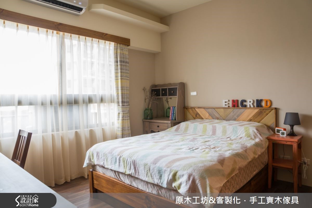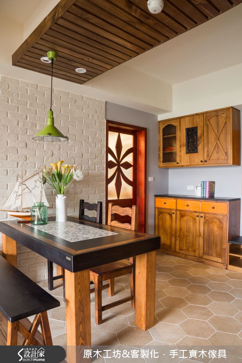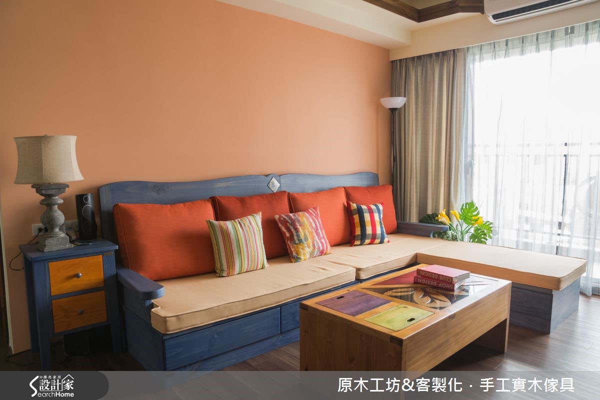 86平米的单层住宅,屋主一家三人与年迈的母亲同住,期待能营造出具有温馨感的居家风格。设计师透过质朴自然的实木材质,以及活泼的色彩混搭,点缀出生活的愉悦趣味性。 【开放式与缤纷色彩达到扩容效果】除了着重采光、收纳以及温馨感的营造,也因为家庭成员包括3个成人,整体空间稍嫌不足,不希望有太过于狭窄拥挤的感觉,因此设计师将客厅、餐厅采开放式设计,以地坪材质划分区域界线,藉由暖橘、橙黄、靛紫等色彩,碰撞出丰富层次,让整体空间更具开阔感。卧室处保留充沛的日光,选用木质家具,凸显温朴自然的乡村生活质感,并藉由色彩与造型装饰,营造出视觉亮点。
