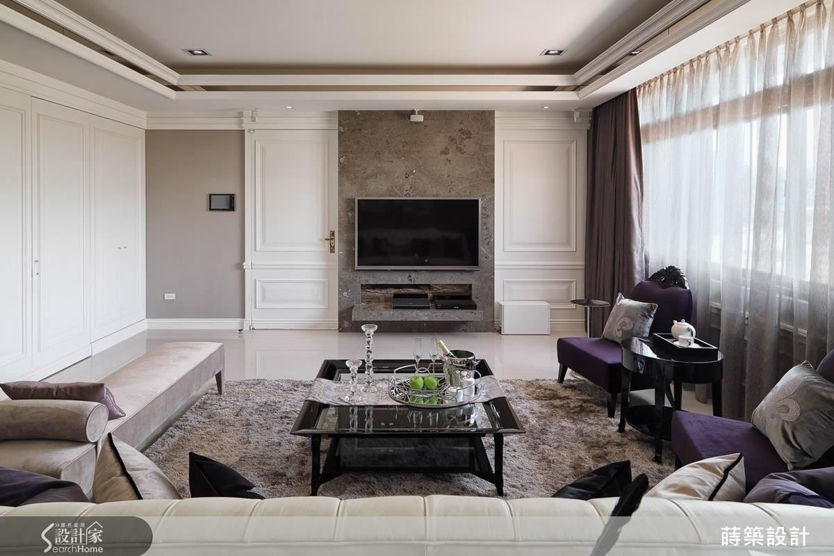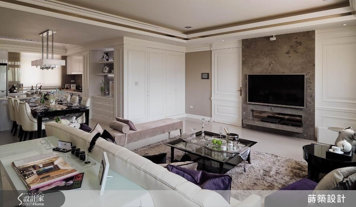 如果依照原有的设计(可参考2楼平面图),客厅受限玄关的出入口,会变得太狭长。于是利用电视墙延伸左右两边,把玄关入口也纳入线板设计,扩大宽度,营造客厅的大器感。