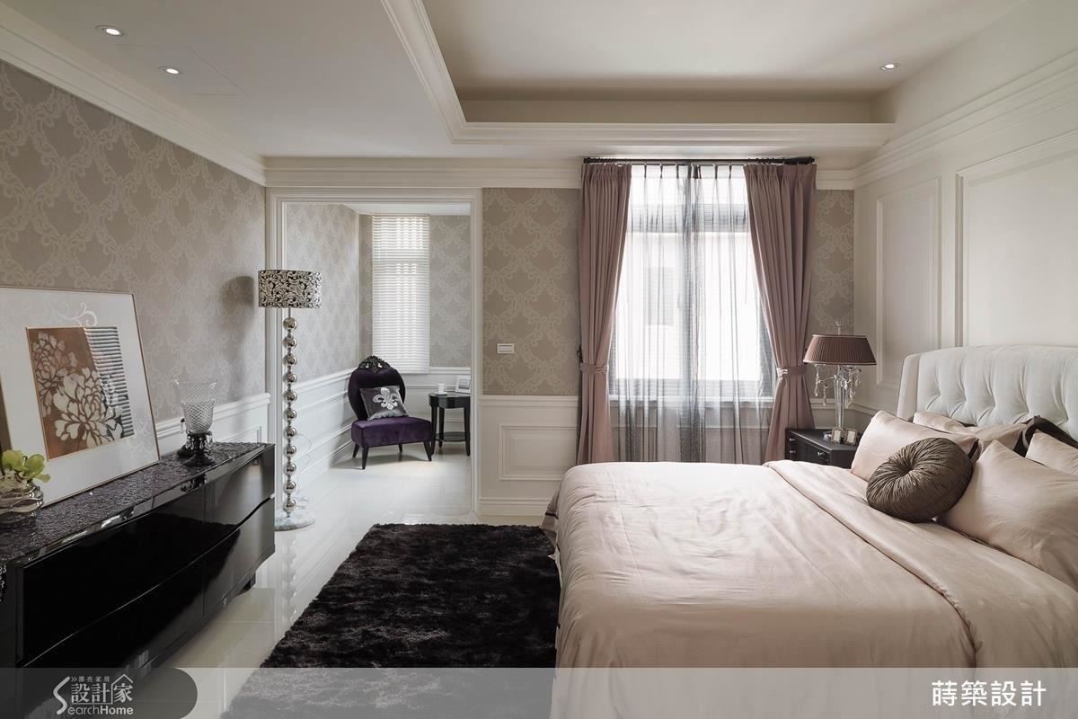 孝顺的屋主把又大又好的空间留作孝亲房使用,而且面对原本设计中凸出的畸零地,设计师巧妙布置成阅读小角落,并以大地色的图腾墙纸营造温馨又有品味的质感。