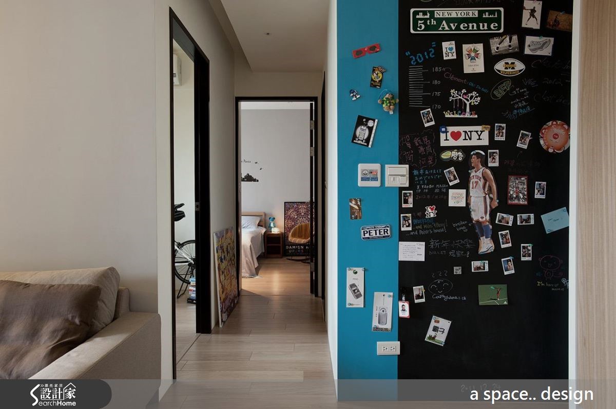 83平方米的居家空间,设计师给予休闲风格的挹注,并透过黑板墙、家饰摆设等妆点,勾勒出屋主的生活主题、创造怡然自得的乐趣,快跟着小编一起走进来看看吧! 【沙发墙局部镂空,串起空间互动】全室引用木地板铺陈,表现舒适悠闲的气场,并于电视墙嵌上错落的开放柜,摆上公仔与收藏物展示,记录回忆及情感点滴,同时在一旁立面加入色块、建构黑板墙,融入涂鸦和照片的创意点缀,型构视觉焦点。沙发背墙则铺陈浅灰色,与整体白调作出层次差异,提升室内的温度。同时,局部镂空加入清玻建材,使厅区、书房产生微妙的视线链接。把厨房安置在采光绝佳处,且拆除封闭隔断、赋予开放规划,与客厅产生交集互动。卧室利用墙纸、家具的安排,并揉入木纹肌理,描绘出属于居住者的个性品味。书房则坐拥采光良好的整面开窗,搭配着隔断的局部透空,让光线可自在流通,维持居家各角落的明亮感。