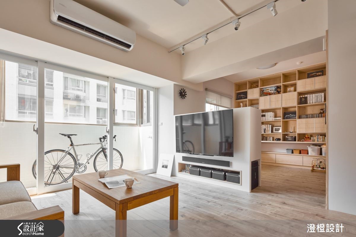 99平方米的单层住宅,设计师拆除原本封闭的书房墙面,让公共空间可以拥有令人羡慕的明亮日光,由于屋主家中有小孩和宠物,因此特别选择无甲醛木地板和环保乳胶漆等健康材质,调制出清新、无毒的亲子生活。【好感北欧风营造温润清新氛围】考虑到屋高仅有2米7,为了不影响视觉高度,天花板维持原本裸露的样貌,让空间高度可以更开阔。客厅处与阳台之间设置三面落地玻璃门窗,将充沛的日光揽入日常生活,顺带让空间向外延伸层次,梁柱的压迫感也能降低。电视墙为双面用途,另一面为书房的收纳格,多功能的书房不仅可以阅读、工作,同时也是与孩子、宠物一起玩耍的游戏间,除此之外,书柜、飘窗下方都能进行收纳,设计师并在书柜边框加入铝制饰条装饰,提升材质的丰富度和质感。