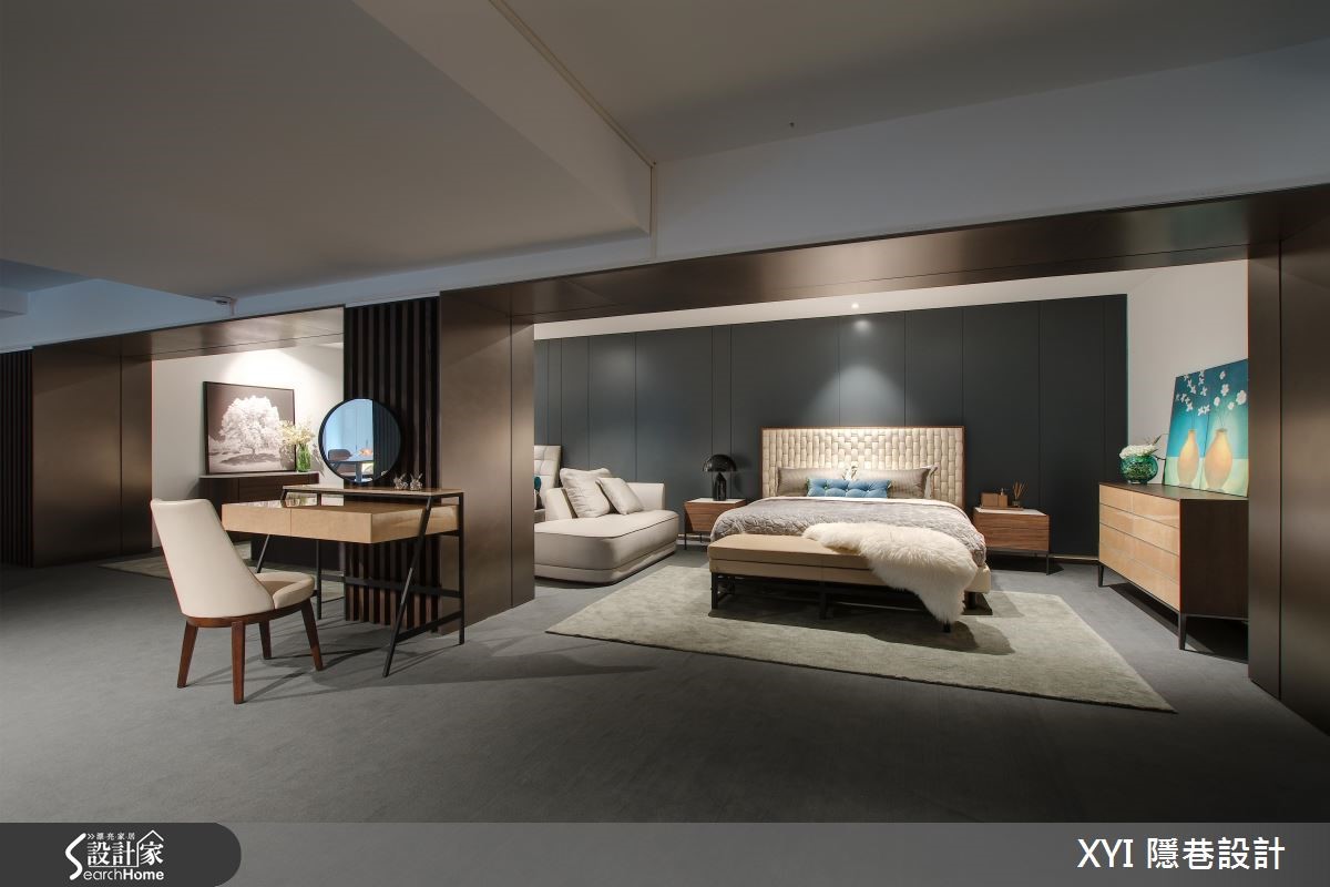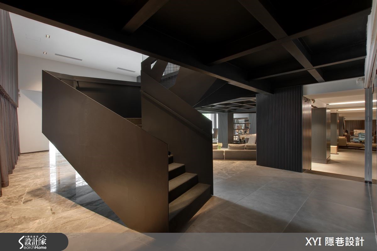 座落于中国东北部繁荣商业区的"芬特丽家具店",拥有1500平方米的展间,注入意大利对于工艺的细致精神,将家具化为居宅内的艺术品。设计师由CIS到展场空间全权设计,使用几何图形线条构成雄鹿,作为企业标志,象征了力量与家具。【大理石与沉稳灰,造大器空间】由于展场原始高度不足,全室不做隔断,设计师以大面积落地窗引入丰沛日光,并用黑色柱体巧妙划分展场的动线,在柱体之间依序安插客厅、餐厅与卧室等空间,准确引领顾客进入居家情境。高耸柱体也同时展现磅礴气势。为了显现家具的本质与工艺,设计师采用沉稳大器的芝麻白大理石与波尔多灰大理石,搭配灰色油漆、铝板与胡桃木饰面,充满自然原色的衬托让家具的形体、材质与色泽立现。