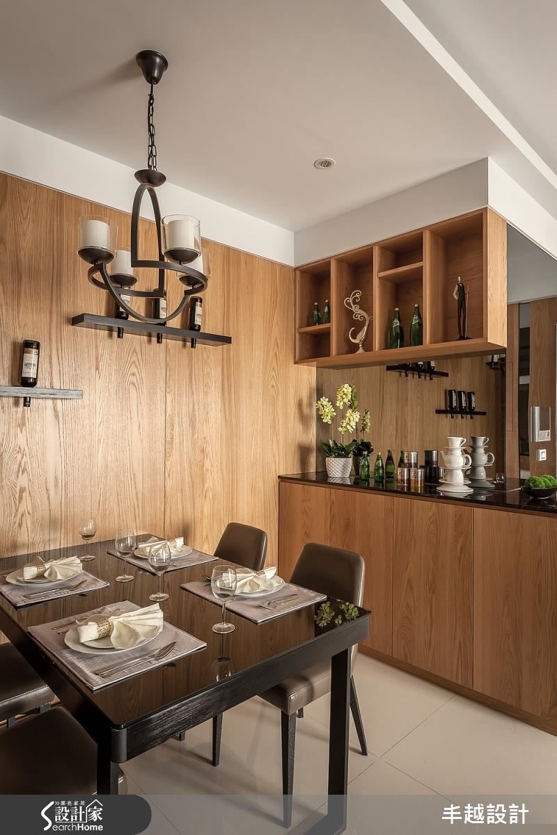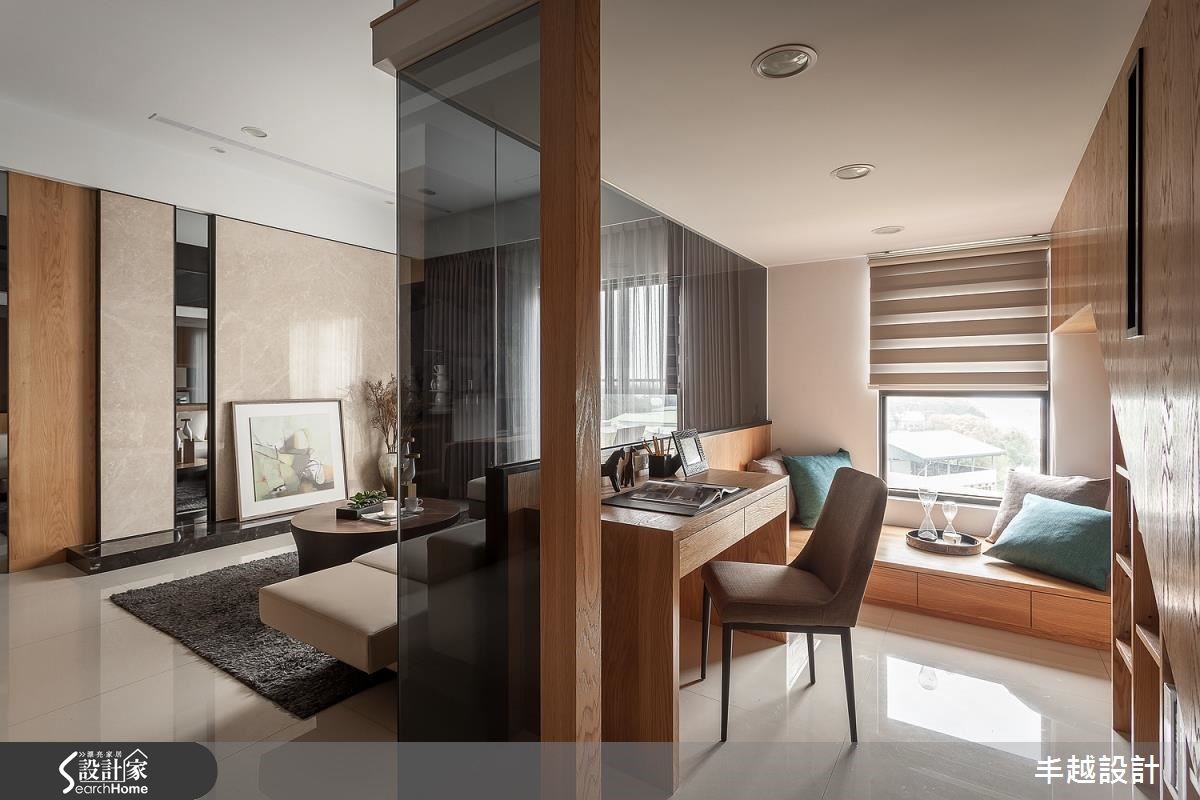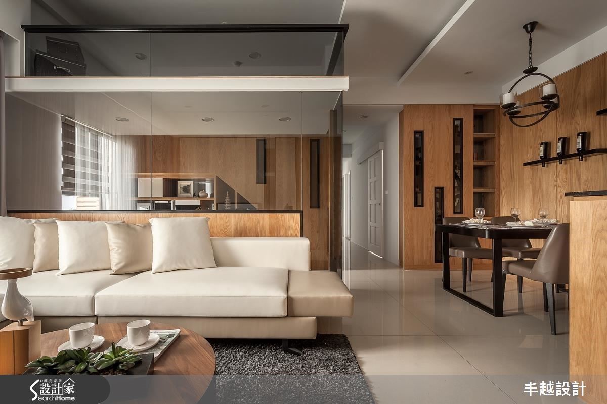 172平方米的居宅,设计师顺应屋高优势,在3室2厅之余额外规划跃层空间,满足每位家庭成员所需,整体风格以现代风语汇勾勒,并藉由大面积木皮铺设、描绘美好的生活温度。【温润木质调,营造温馨居家氛围】设计师透过大量木皮质材提升居家暖度,并错落穿插镜面与大理石,引入黑色立体框线增添空间层次感,同时采玻璃打造客厅、书房间的隔断,使场域视觉可通透无碍;而书房上方则因应屋高优势规划跃层,以玻璃围塑,不仅让视野达到延伸,也能与厅区保持良好互动。餐区延续木质肌理,流露温馨宜人的用餐氛围,并巧妙让红酒以吊挂形式收纳于墙,不仅便利拿取,亦达到趣味展示的效果;卧室部分,同样采用温润木质感,并将收纳柜结合展示功能,将机能作出完好整合,再融入立体框线,呈现典雅多层次的卧室风情。
