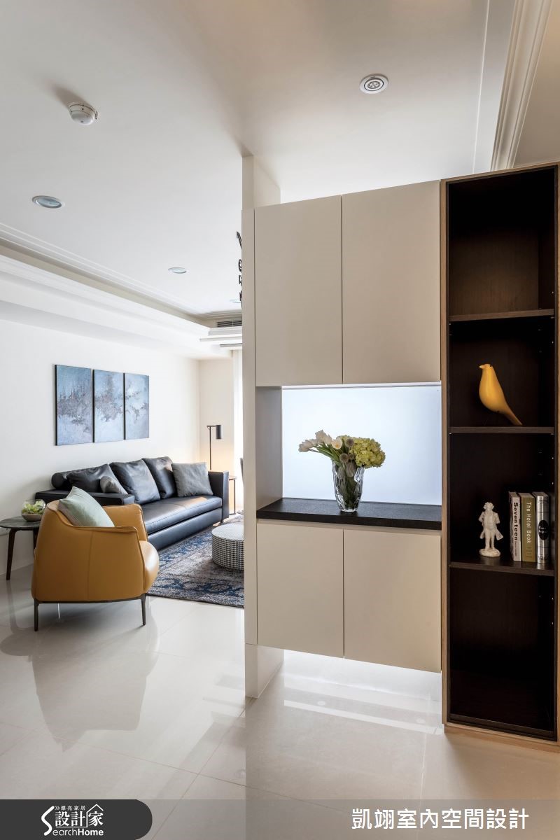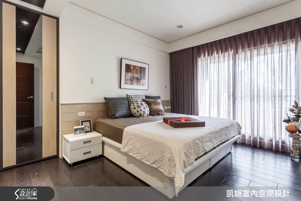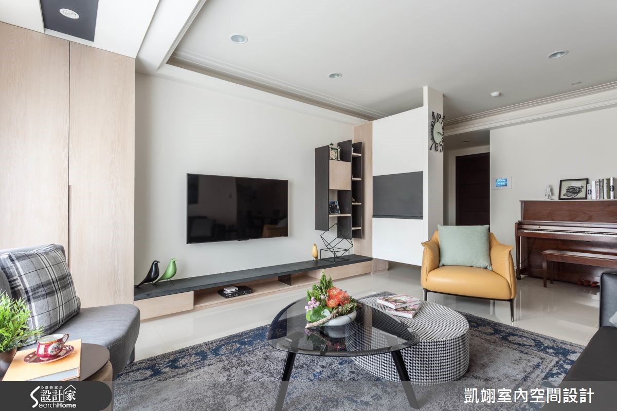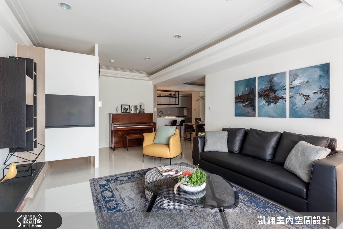 耐看兼具实用,往往是现代风格大受欢迎的因素。设计师透过窗户迎进明亮光线,并搭衬色彩、建材的温度,使空间充满了温馨的日常感,在各区域妆点艺术画作或摄影作品,无论是客厅、卧室的抽象作品、或餐厅的街景人文照片,皆体现屋主的品味。【一盏造型灯,决定空间氛围】 在入口处配置通透的屏风柜体、辅以展示机能,为玄关拉开美好序幕。将钢琴置于一隅,作为客厅、玄关与餐厅的分界点。客厅透过大面积窗户导引自然采光,并铺陈浅色抛光石英砖地坪,型塑明亮放大的视野,电视墙藉木皮、沙发、展示家饰相互辉映,衬出优质的品味。餐桌、吧台、厨具并排规划,给予大面积白色基底,对应局部深浓色调,以一盏摩登味十足的造型吊灯画龙点睛,勾勒休闲韵味。卧室选用素雅风格的纱帘,并在床头旁结合滑门设计,与镜面搭配达到视觉延伸目的,内部则可通往更衣梳妆间,让空间保有串联与独立性。