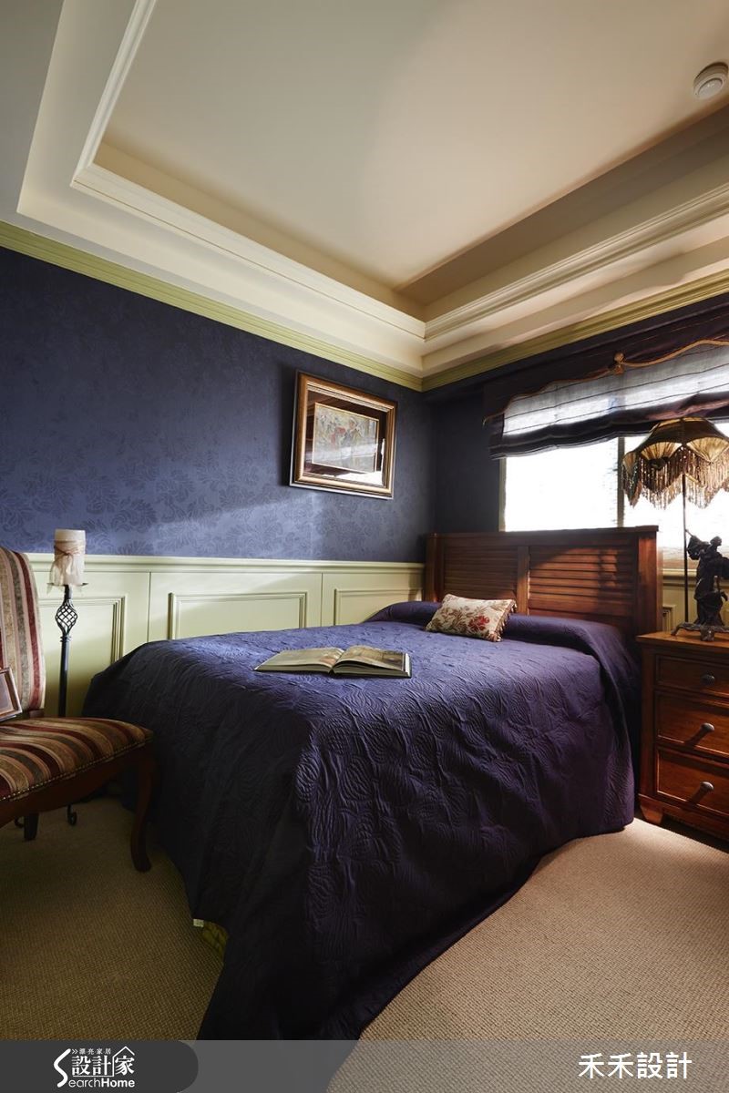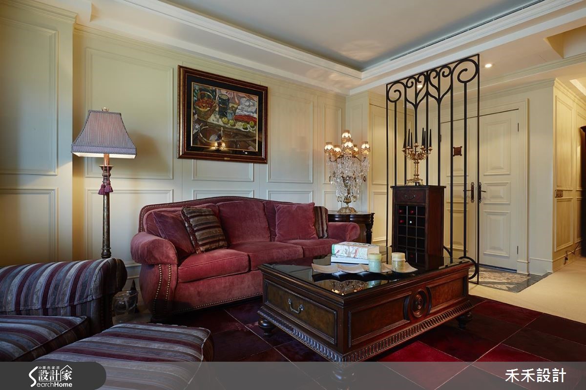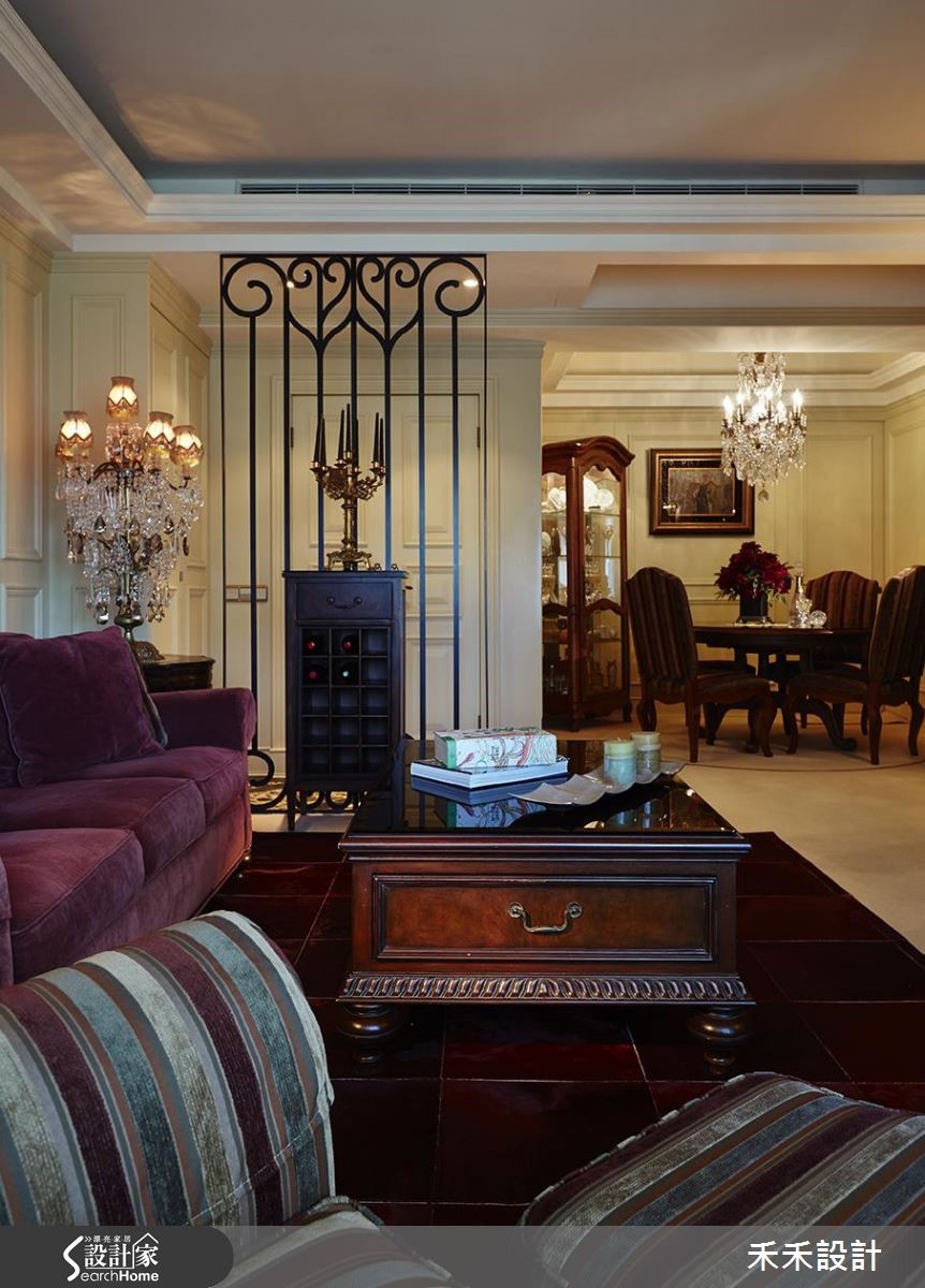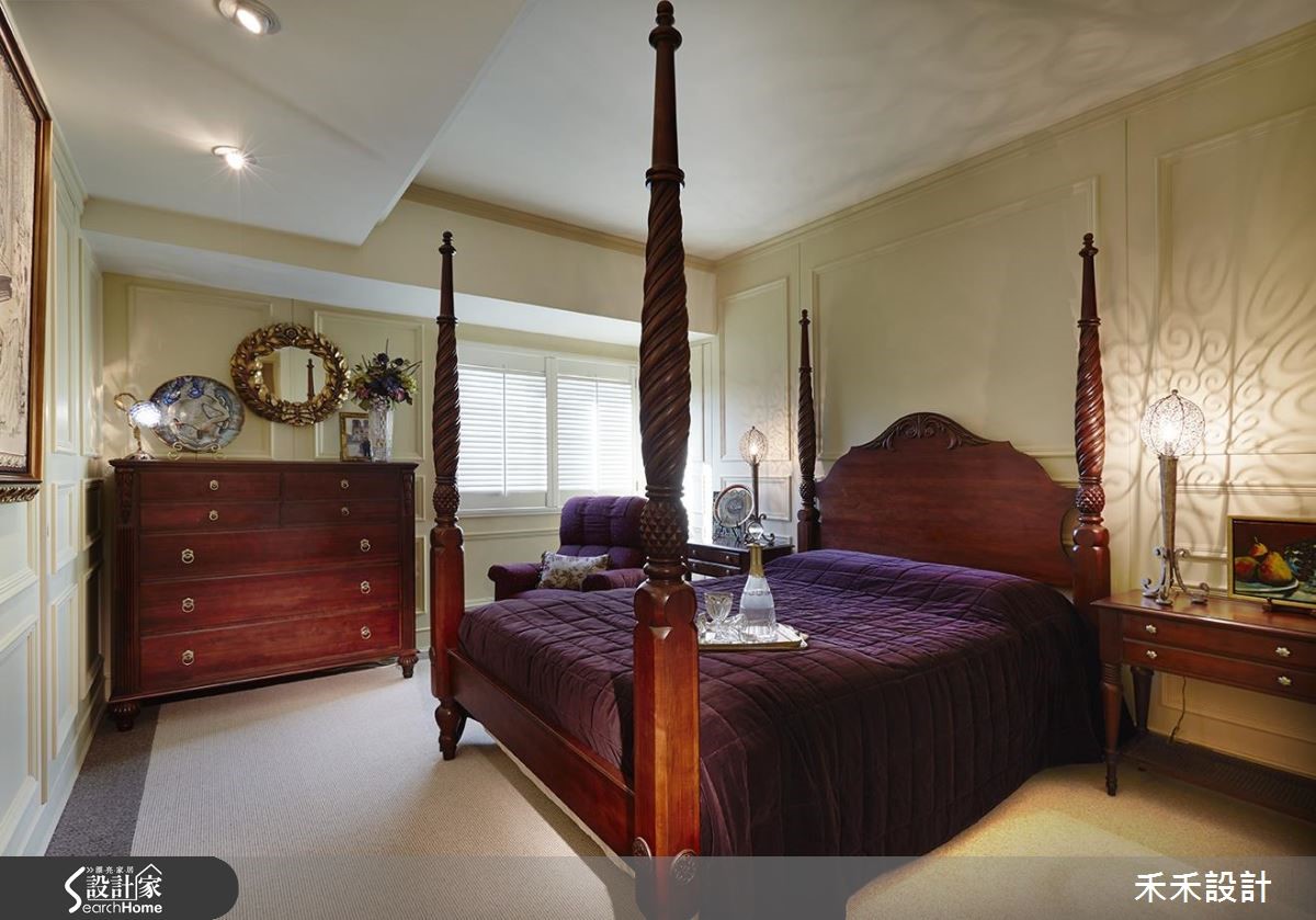 经典的壁炉造型、古典绒布沙发,以及雕花细节,让人有种穿越时空来到欧洲的错觉。醇厚的色彩让空间更添一分稳重大器,搭配复古家具单品和裱框画作,将欧式古典风发挥得淋漓尽致。 【白色调背景,家具家饰做跳色】进入这间古典风大宅,玄关处以镂空雕花屏风划出场域分野,并保留了空间通透感。宽敞的公领域包含客厅与餐厅,藉由格局调度,区隔出彼此的独立性。墙面则利用大量线板勾勒欧式氛围,并延伸至收纳门片,呼应整体风格营造。走进私领域,设计师依据使用者的需求,注入不同的色彩元素和机能性,不论是经典的四柱大床,或是鲜艳湛蓝与温质湖绿的精采撞色,皆具古典风格的雍容风采。