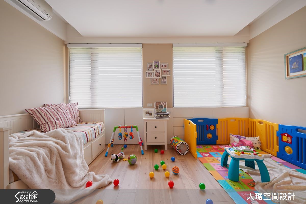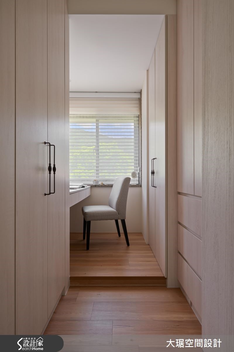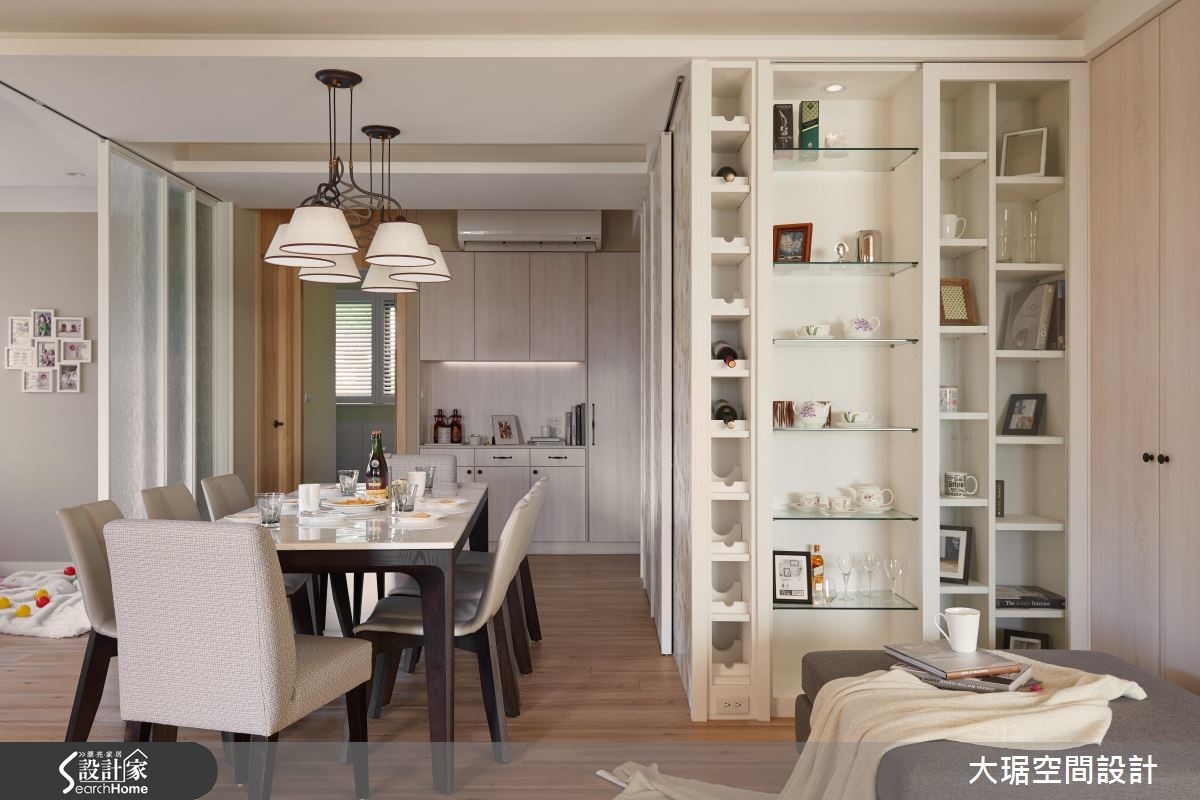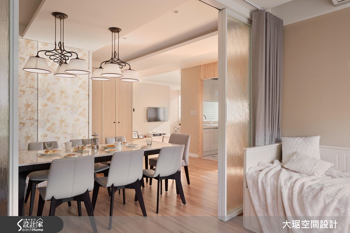 在设计师规划之下,打造出可以容纳妹妹、哥哥家庭共同居住的132平方米双并住宅,并藉由场域的串联,让家人之间情感更加乘。【木元素给予自然舒适的空间气息】此间整体以木作为基底,采用木地板铺陈温暖质感,导入充足阳光,凝结纾心宜人的主调,并点缀其他材质如玻璃、家具软件、壁纸等材质跳出层次,创造休闲中带乡村语汇的氛围,呈现淡雅细致的空间表情。【重整格局,共享天伦之乐】格局上,则将两户长型屋之间的隔墙拆除,并摆放可容纳多人的长餐桌,构筑凝聚情感的核心位置,周边除了环绕实用的收纳功能外,更在旁规划一处多功能游戏间,配置玻璃拉门流通采光、增进互动,刻划天伦之乐的幸福场景。主卧承袭轻浅明亮的调性,藉由系统板材及木皮融入,兼具温暖舒适与生活机能,电视墙后方则设计一处女主人专属化妆区,透过地坪高低落差、作出动线的转折与界定!