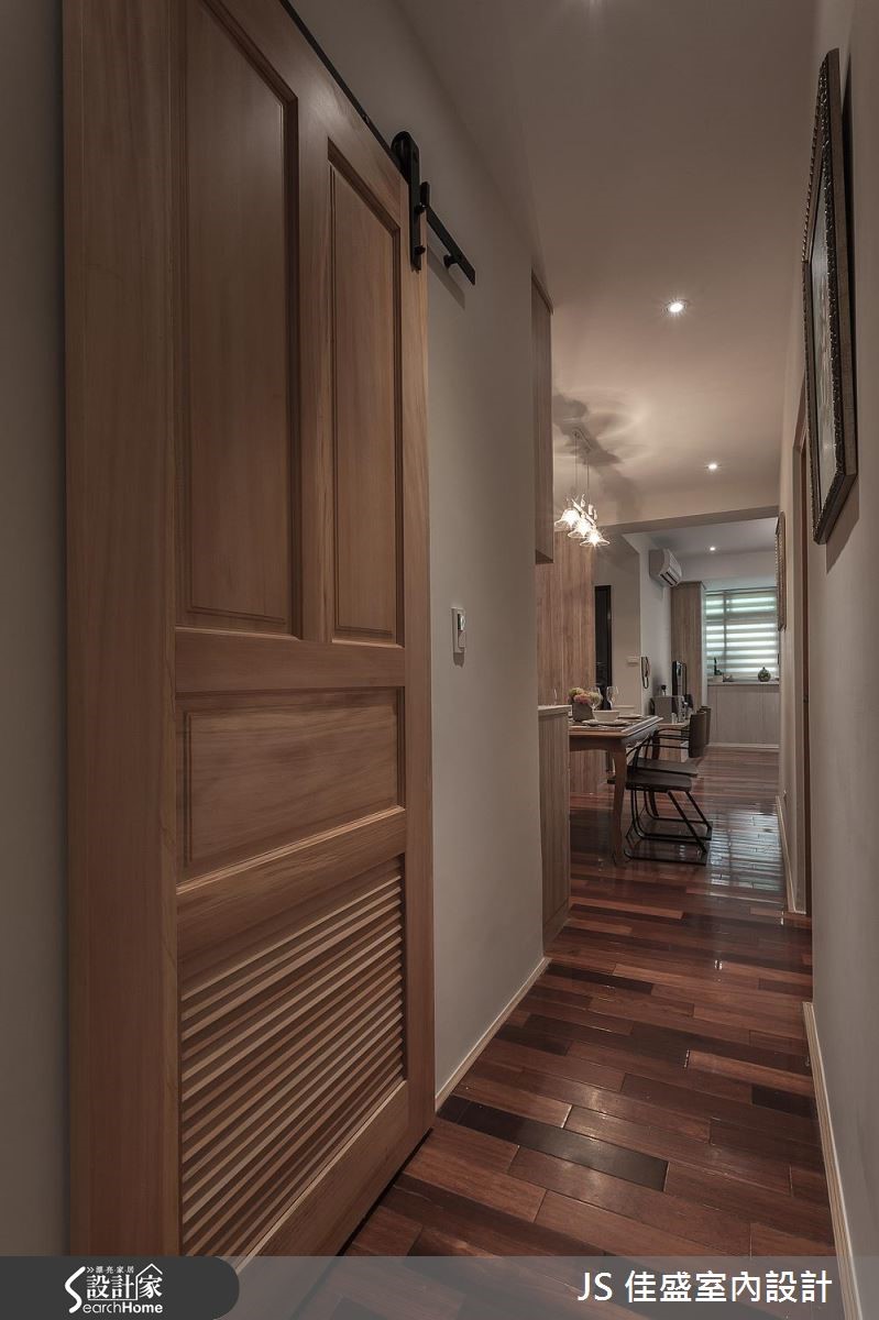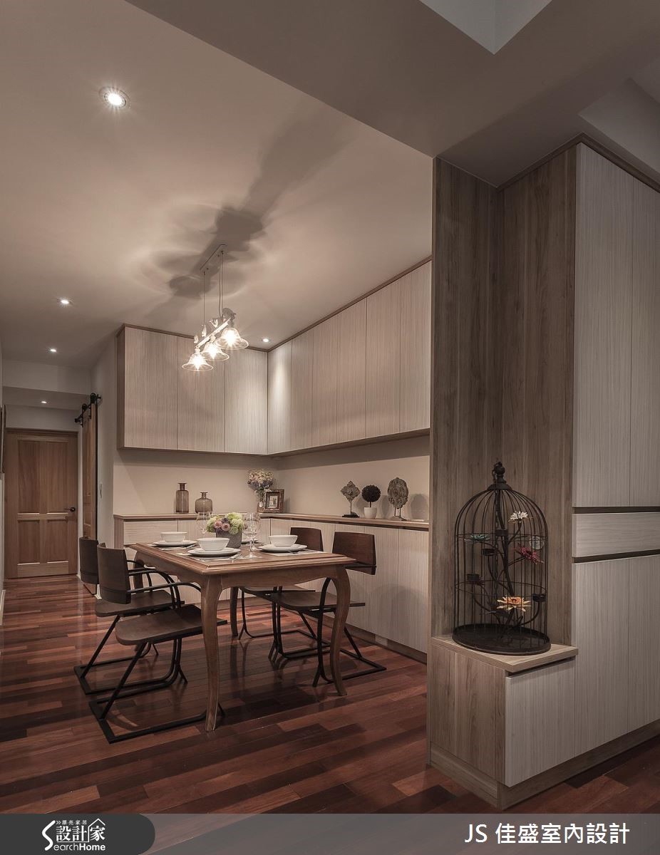 你喜欢美式乡村风格吗?这处拥有85平方米的美式乡村宅,以浓郁温暖的木质色彩,衬托出美式家具的独有的典雅,让你一回到家,就能感受到甜蜜舒适的氛围,并且自然沉静放松!【利用梁柱设置柜体,增加收纳】整体空间以温和大地色系为主,渲染上柔美精致的灯光,再搭配淡雅的沙发色调,散发着暖暖的居家温馨感。玄关处利用梁下处打造橱柜,增添实用收纳机能,并在与餐厅的转角处,设置展示平台,让转角也有好风景。在收纳配置上,客厅侧边规划一整面开放展示柜,收藏屋主的书籍和纪念品,成为具人文生活感的展示墙,餐厅处沿着墙面打造L型柜,让碗盘餐具的取用更加方便。从廊道向内深入,设计师为房间换上木质门片,延续风格的一致性,并随着使用者的需求提供收纳、阅读等机能性,同时也营造出典雅沉稳和温暖柔美等不同睡眠氛围。