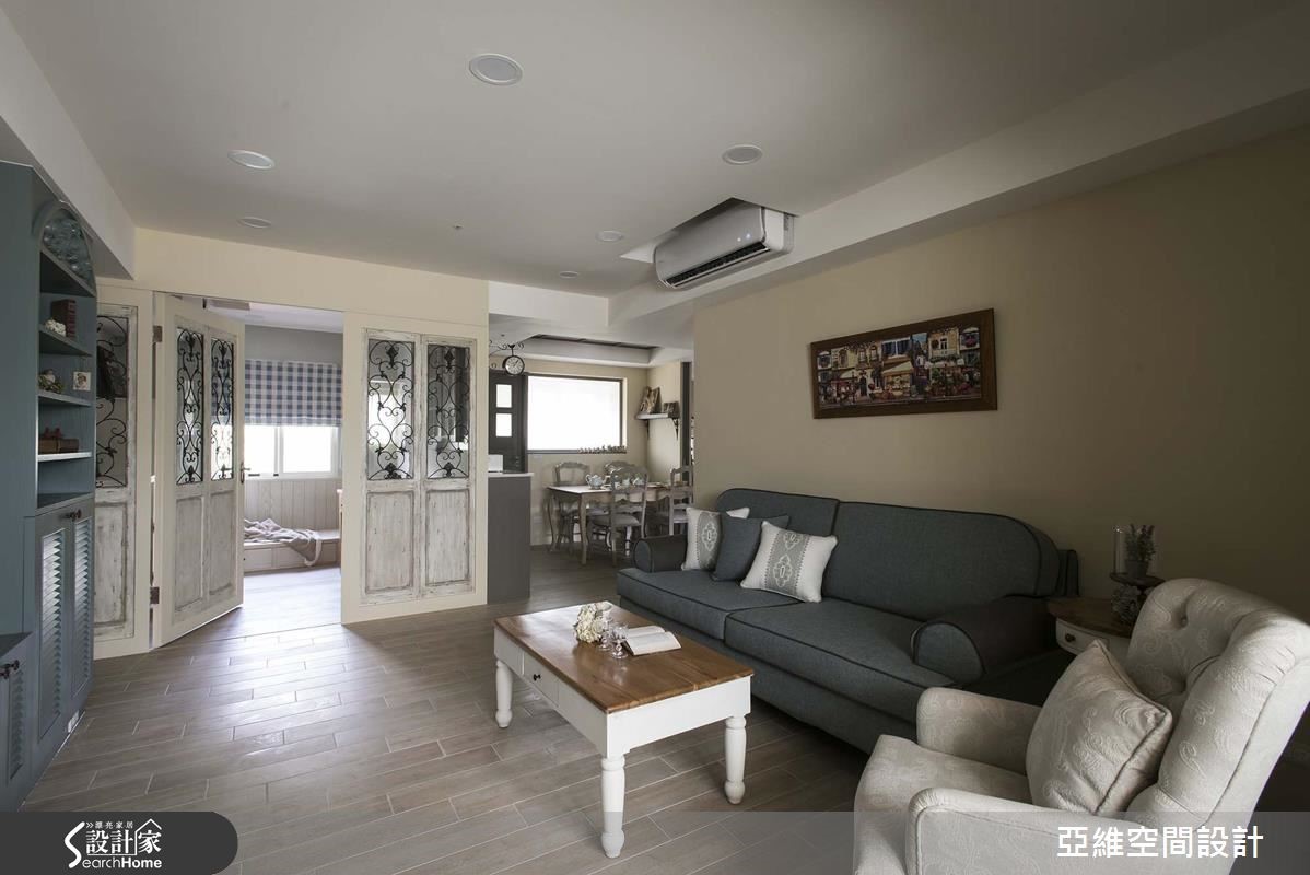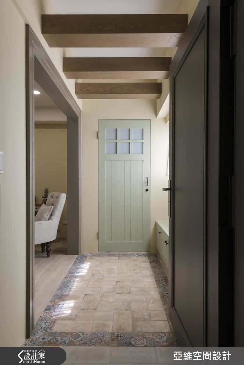 届龄15年的老屋原先格局过于零碎,导致采光不良及动线紊乱、收纳不足等问题,经由设计师重整92平方米结构后,属于3口之家的温柔乡村景致便油然而生!【多功能柜体,扩增收纳空间】设计师打开阳台视野,仅以复古地砖作为玄关内外分界,让光源顺利进入室内。接着利用色调柔美的粉绿色柜体与门片拓增充足收纳,矮柜更兼具穿鞋椅机能。去除零碎隔断的遮蔽并采用开放设计,让空间同时达到扩容与明度提升等功能。【鹅黄色调,散发温馨暖感】全室以暖调鹅黄色为主轴,搭配客厅低彩度的文化石与对称的灰蓝色收纳柜,散发温馨氛围。独立双排厨房的吧台紧邻餐厅,巧妙营造紧密烹饪动线,滑轨拉门更有效减省空间浪费。【古典雕花门片,增加明亮光度】因应屋主需求,设计师规划完整书房,以复古雕花门片划出独立空间,却同时使用透明格状对内窗,除了与餐厅天花照明呼应,更提高光源穿透性。主卧与次卧根据居住者习性,以不同色调与建材创造优雅、温馨的调性。