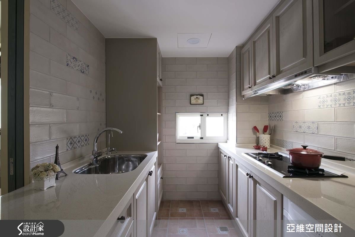 水蓝柜面与白色线板铺陈,乡村宅更显温柔