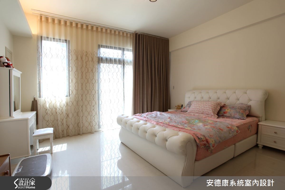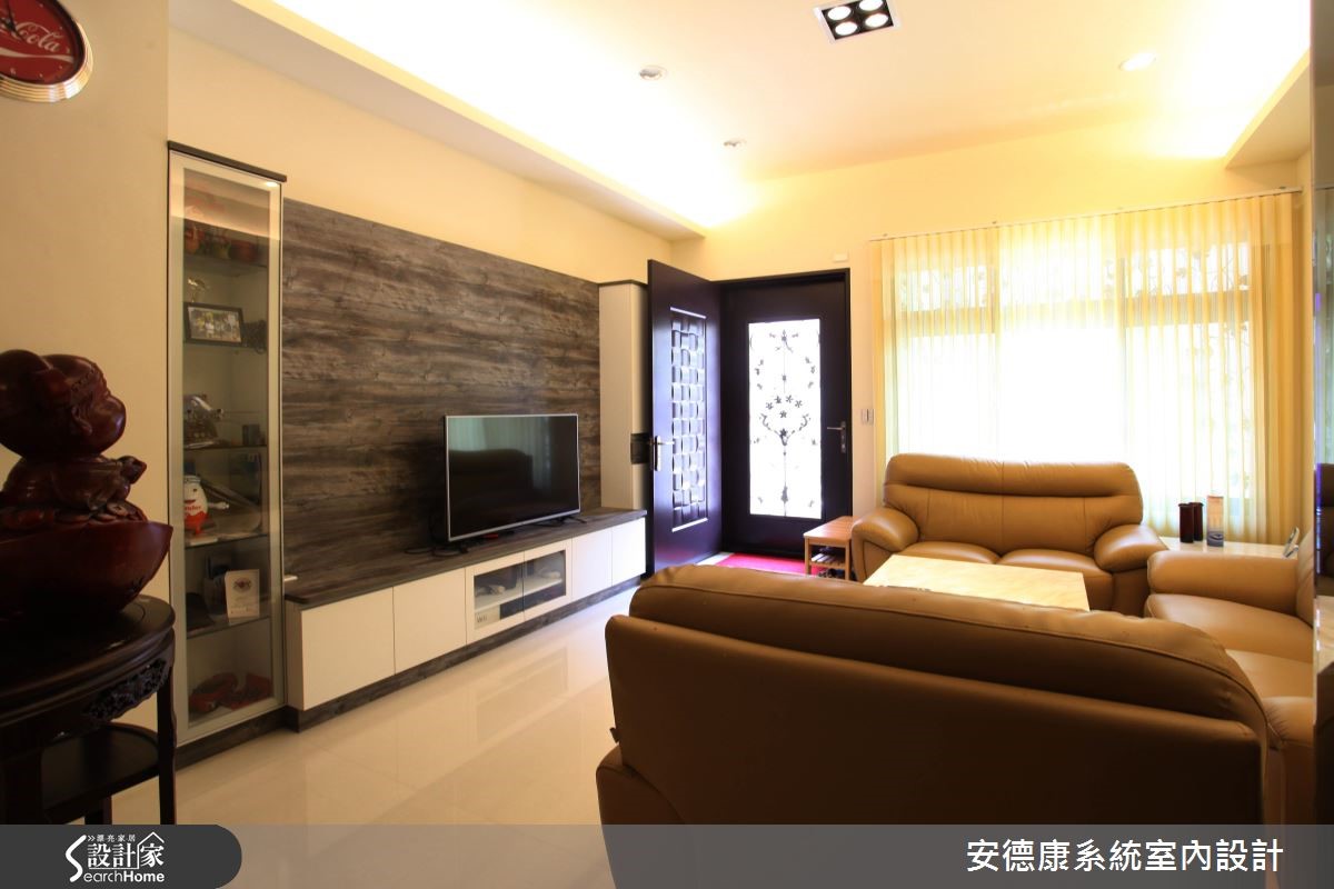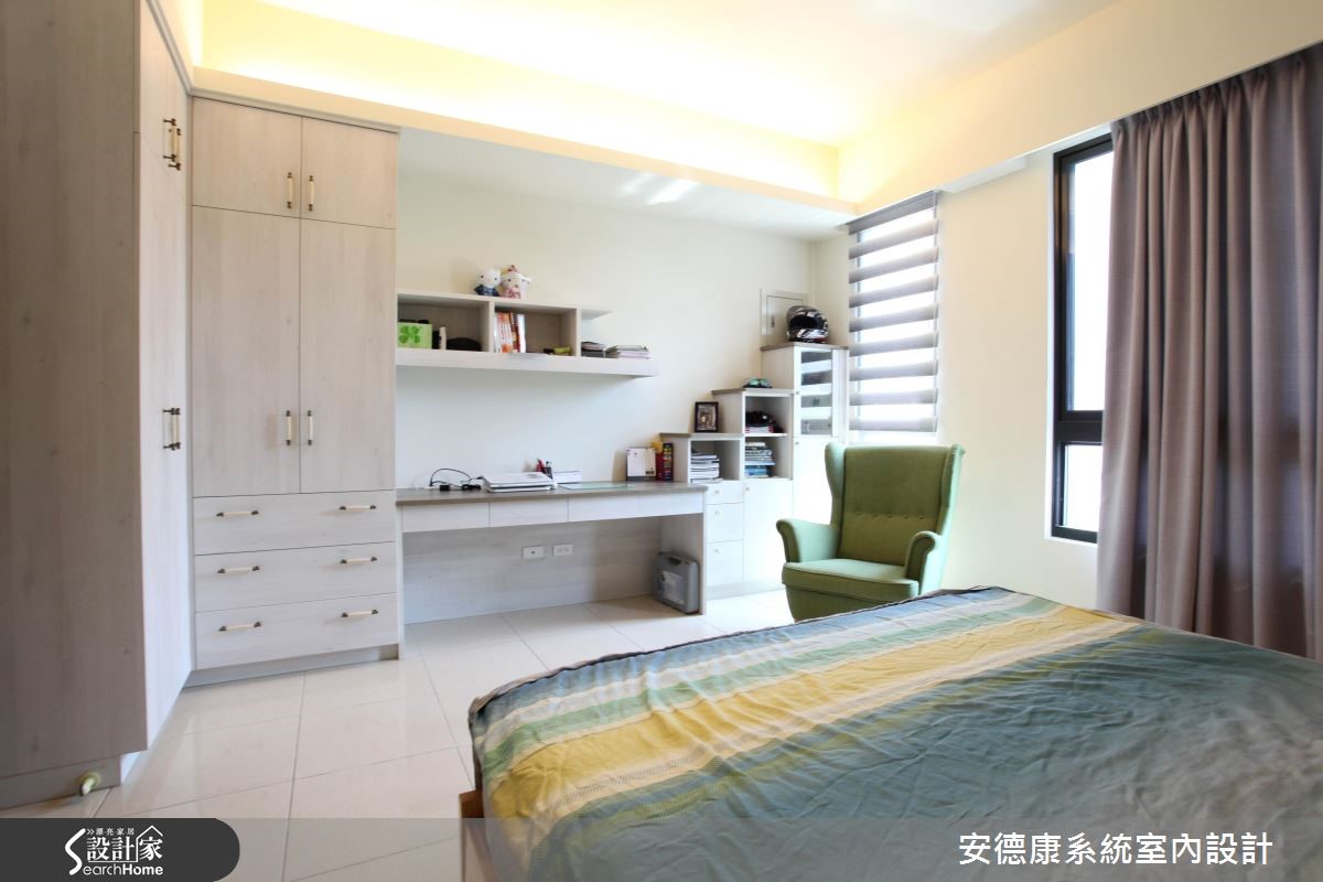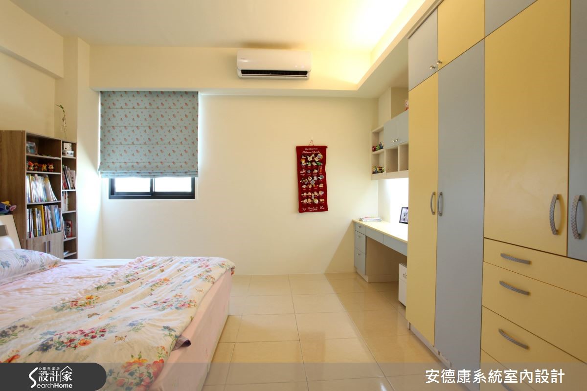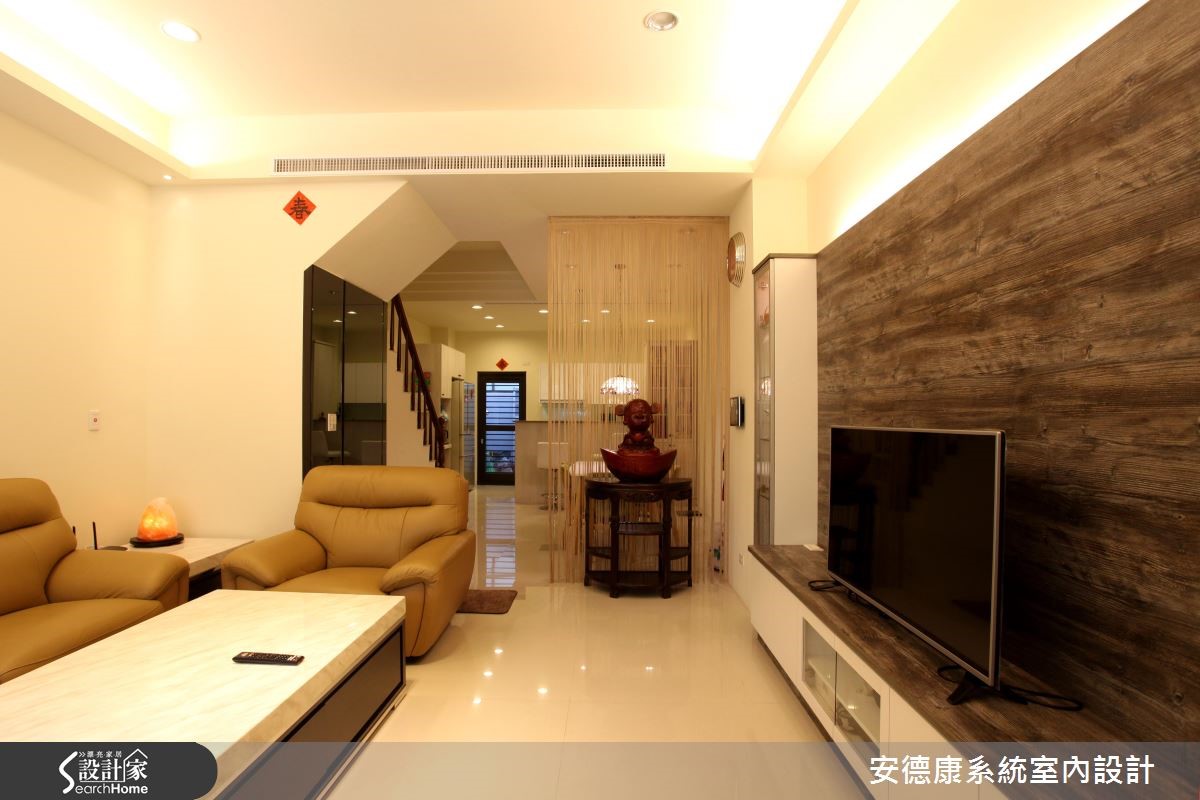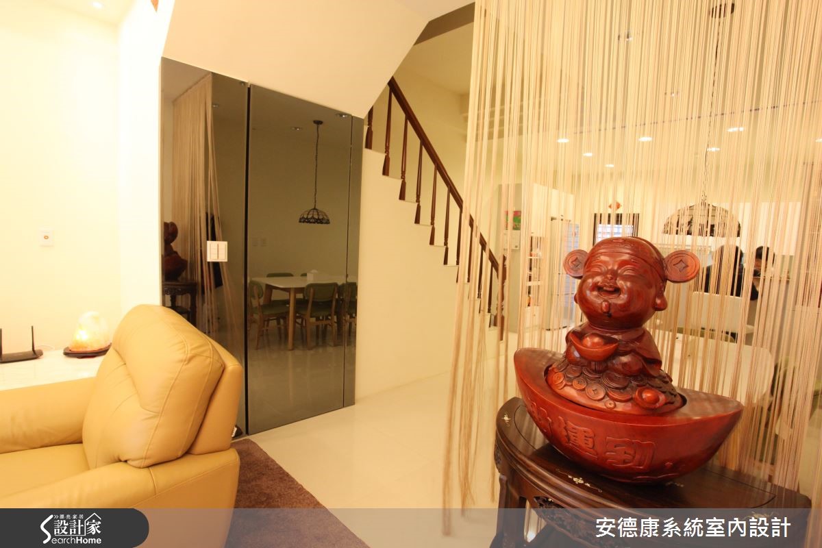 由于本身屋况良好,不用大动隔断,再加上屋主希望居家以收纳机能为主,因此设计团队沿着原有墙面设置大量柜体,并利用半高设计和穿透材质,让采光良好的独栋楼更加舒适宽敞。 【吧台与线帘,有效区隔又通透】虽然采光良好却有些格局问题,因此设计团队首先规划兼具收纳机能的吧台,让人一进门不会直接看见厨房;同时,刻意用线帘取代隔断,藉此保留宽敞的公领域空间,并于电视墙结合收纳柜功能,并以木纹系统板材创造自然质感。另外,设计师利用大面积灰镜修饰位于过道上的卫浴空间,放大餐厨区的视觉感受。针对私领域规划,设计团队依据居住者不同的需求与特性,在男孩房以板材打造猫跳台、女孩房则因应公仔收藏习惯,以跳色门片设计开放展示柜,机能与美观兼具。