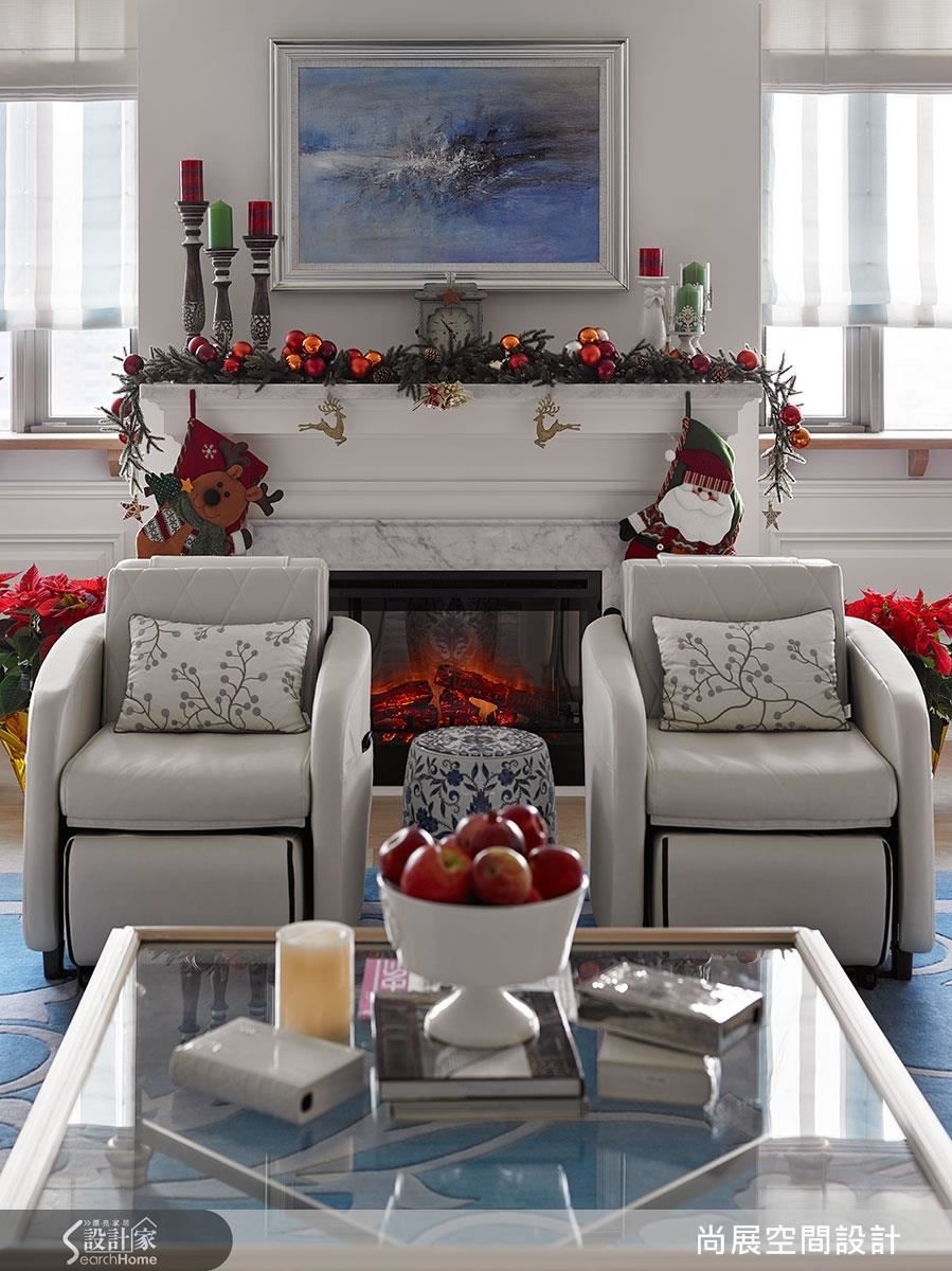 跟圣诞节特别相衬的,可非壁炉莫属,以壁炉为中心,于窗边与壁炉平台上装饰蜡烛、袜子、花圈等小物,特别有节庆情调。在纯白色基底之下,鲜红配饰更为突出。