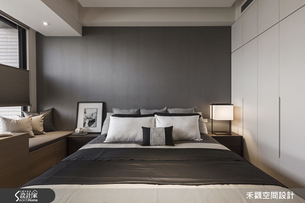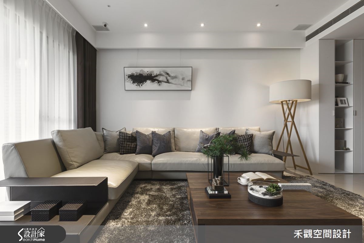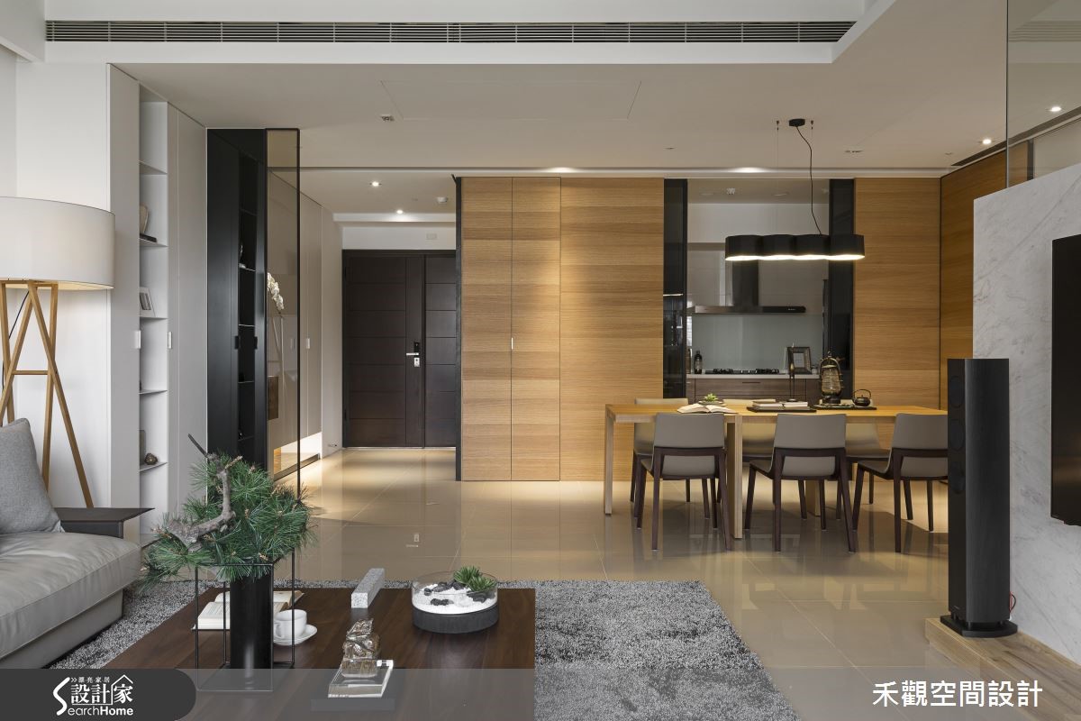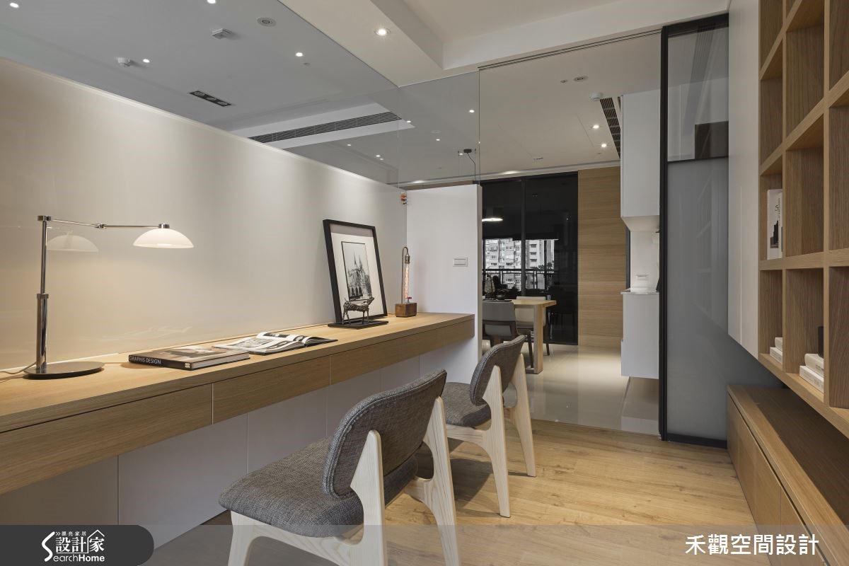 想让住宅引入户外自然景色,采光和通透格局将是设计重点。由于原屋座落于高楼层,为了享受无栋距遮蔽的干扰,对调客厅沙发和电视墙位置,同时运用通透玻璃,造就宽阔明亮的视野。即便坐在客厅、书房或餐厅,都能远望澄澈蓝天。【电视墙融入书房隔断,节省空间】为了因应屋主在家工作的需求,设置独立书房,刻意采用通透拉门,让光线不受限,能深入餐厅。同时一反电视挂墙的设计,改与书房隔断融合。节省空间之馀,客厅也因此180度转向,让人坐在沙发不仅能享受视听娱乐,也能眺望大面窗景。客厅注入大面积的白色调,并结合其他材质如大理石、木素材、墙纸等,缓解冰冷的现代风腔调,点缀生活温度。而屋主在意的收纳,则用无把手的设计巧妙隐藏柜体存在,让收纳隐于无形,大面积的柜体变身为素净墙面。回归卧室部分,则以沉稳灰阶色调为主,并落实清爽干净的量体规划,阐述沉静好眠的氛围。更让每一个空间都添入了适当的绿意,不过份渲染、以恰如其分的比例点亮焦点,带动空间的生机。