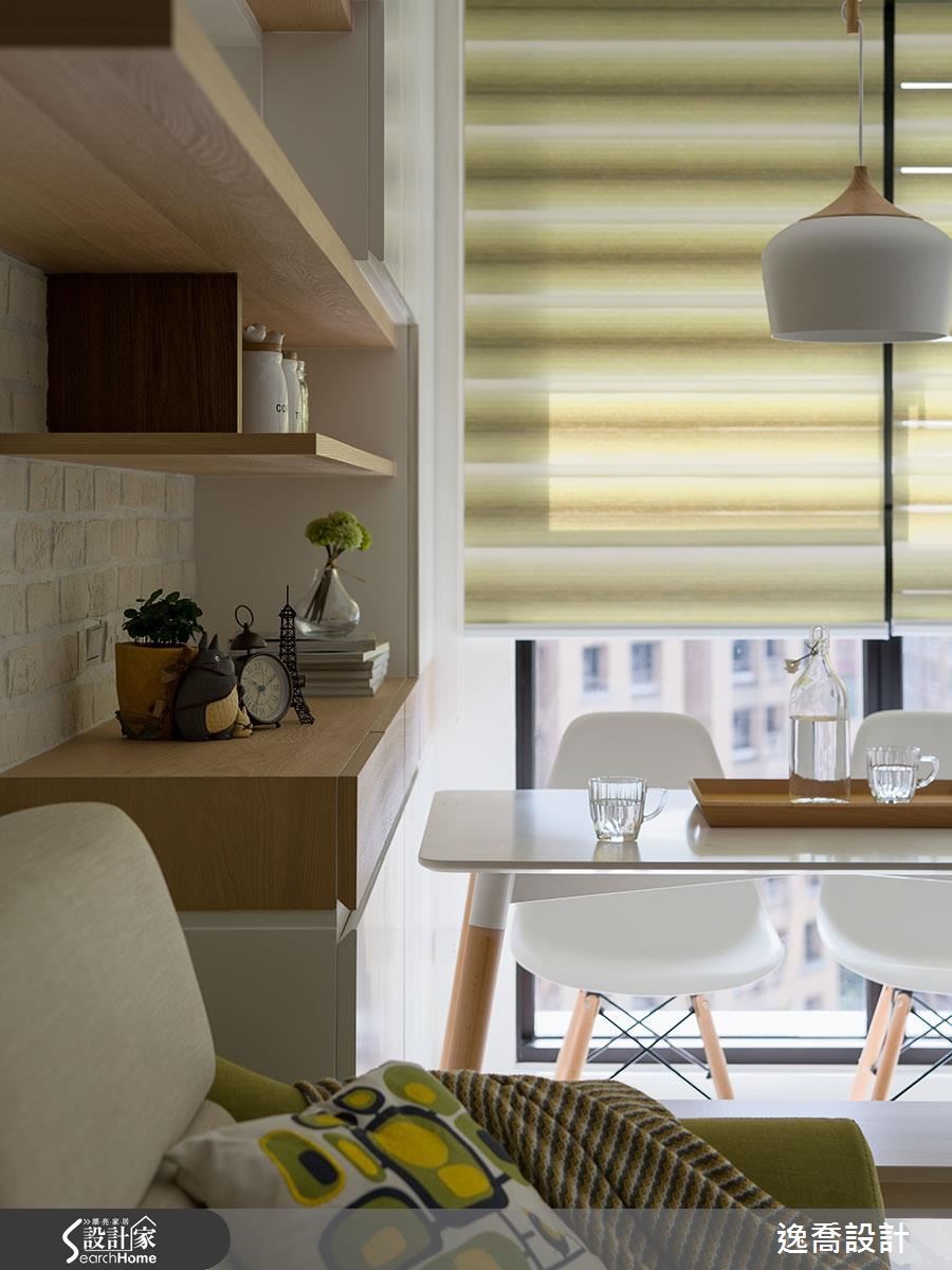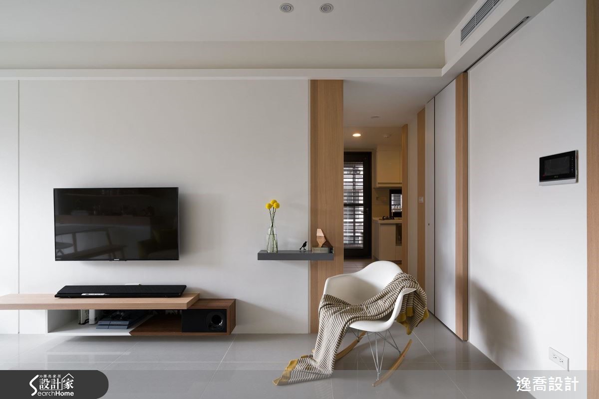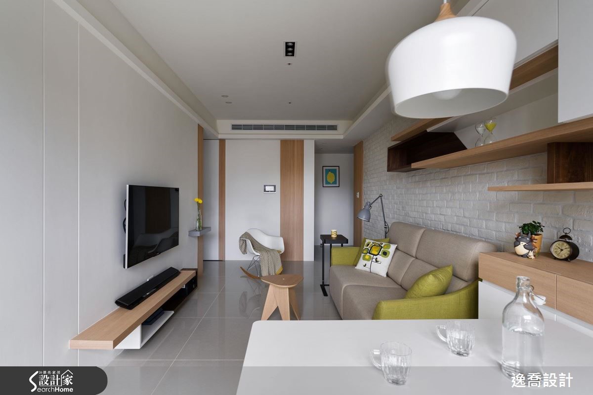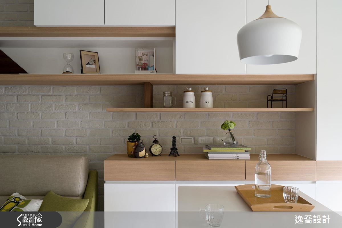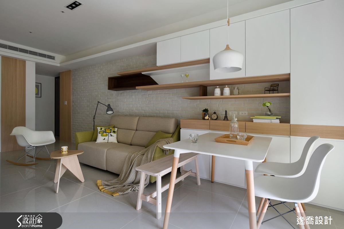 设计师在66平方米的居宅内,减少多余装饰,让整体印象显得干净简约,并使用舒适家具与风格软件,采以随兴自在的陈设形式,创造出有如日式杂货感般的清新视野。【温润石材,打造不造作的质感】空间大量使用文化石材、木皮等天然质材,以白色作为居家基调,营造舒适不造作的质感,采文化石于沙发墙大面积铺底,加上木层板与轻盈的量体配置,搭佐屋主收藏的小物陈列,让立面兼具机能与优雅表情。【良好采光设计为生活注入温度】客厅旁的整面窗景则纳入丰沛阳光,一旁摆上餐桌、单椅,成就舒适美好的用餐情境,并在墙面加入木皮建构垂直线条,在虚化门片存在感的同时,亦创造连续性的视觉导引,且无形中与水平向层板形成趣味对话,交织出丰富层次。