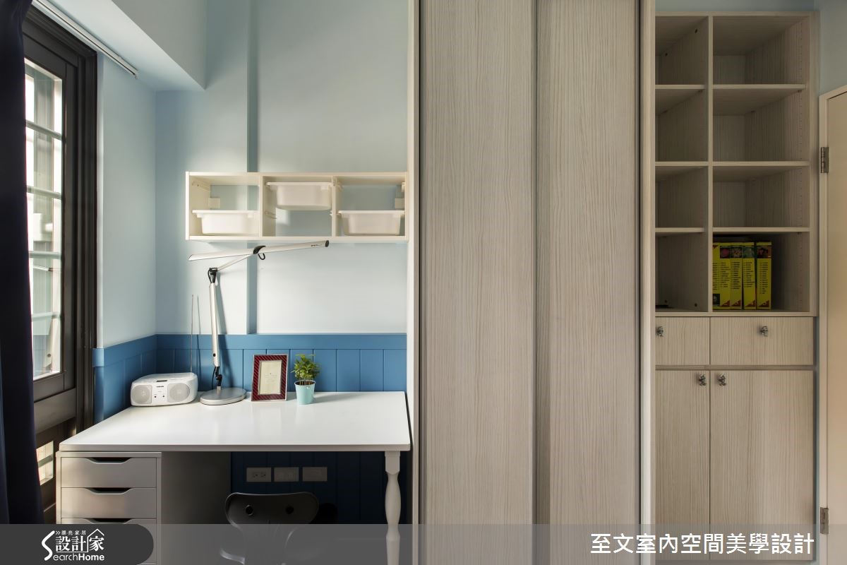 水蓝柜面与白色线板铺陈,乡村宅更显温柔
