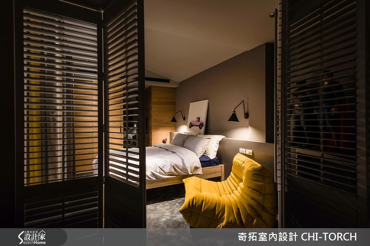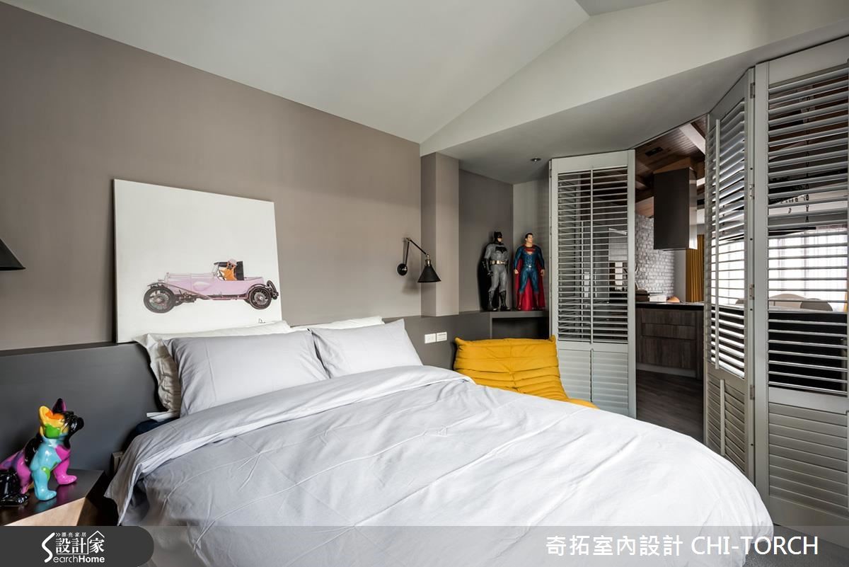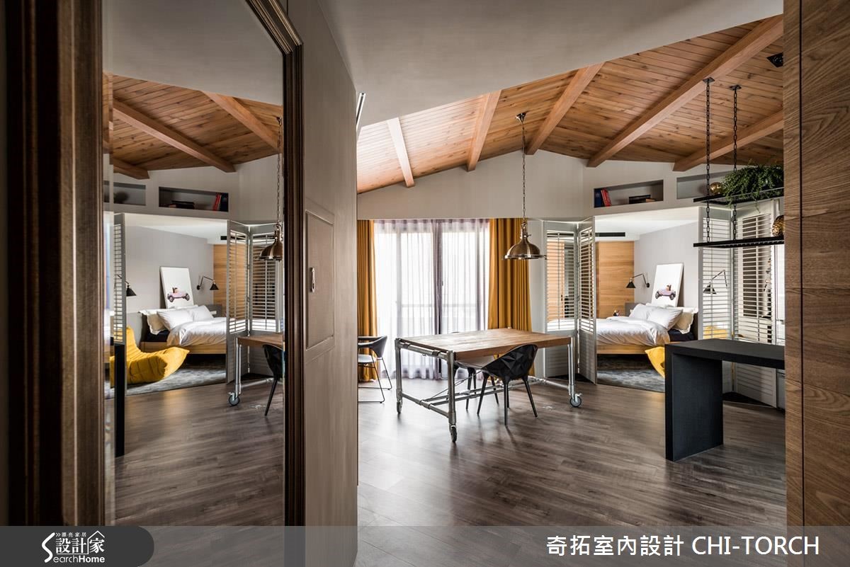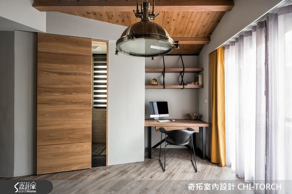 因为爱上阳台的风景视野,长居海外屋主决定买下老屋重新改造。设计师跳脱寻常格局的思维,把男屋主欣赏的美式现代风,以及女屋主喜爱的美式斜屋顶完美共融,混搭出新颖而舒适的居家风格。 【斜地板串联视觉,营造趣味】老屋的改造重点包含防水、隔热层的处理,彻底解决漏水、壁癌与隔热问题。室内空间以纽约都会式的黑格子窗与室外区隔,将充足的阳光带进屋内,搭配仿旧文化石墙面,凸显出光影的立体层次感。使用开放式手法规划,把客厅、餐厨、卧室、书房串联让空间显得更宽敞;各领域间以斜向地板划分,创造利落而有个性的线条,再辅以百叶折门弹性区隔公、私领域的隐私界限。偌大的户外阳台区重新整理地面后,铺上木栈板种植花草。墙面绘上清爽的天蓝色,呼应了阳台外的一整片的天空色彩,摆上简单的户外家具,无论在白天、夜晚都是迷人的休闲观景区。