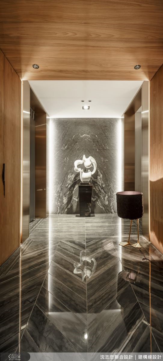 出自沈志忠总监的巧思,这户荣获 Best of Canada Design Awards 2016 年度最佳作品奖,在此作品之中,可见设计师之于细节、建材的考究,并运用创新的设计手法,赋予此独栋住宅生命力,谱写出台湾设计界的佳绩。【浅色调与自然材质,造本质之美】走进空间,设计师于天花做出高低落差,佐以镀钛框架的围塑,自然地将视觉汇聚于艺术品展示区,且渐进式地引导至客厅,构成流畅动线;空间中承接建物的原始梁柱结构,大幅运用镜面、金属与天然石材,精准地给予面材切割,展现空间的精致轮廓。居室加入轻盈色调与自然材质,运用光影变化凸显材质肌理,呈现空间本质之美。 而这样空间结构柱突破制式的样态,与整体设计无违和相融,且透过材质的反射特性,彰显轻盈质韵、演出焦点张力,带出材质表面的流动视觉感!