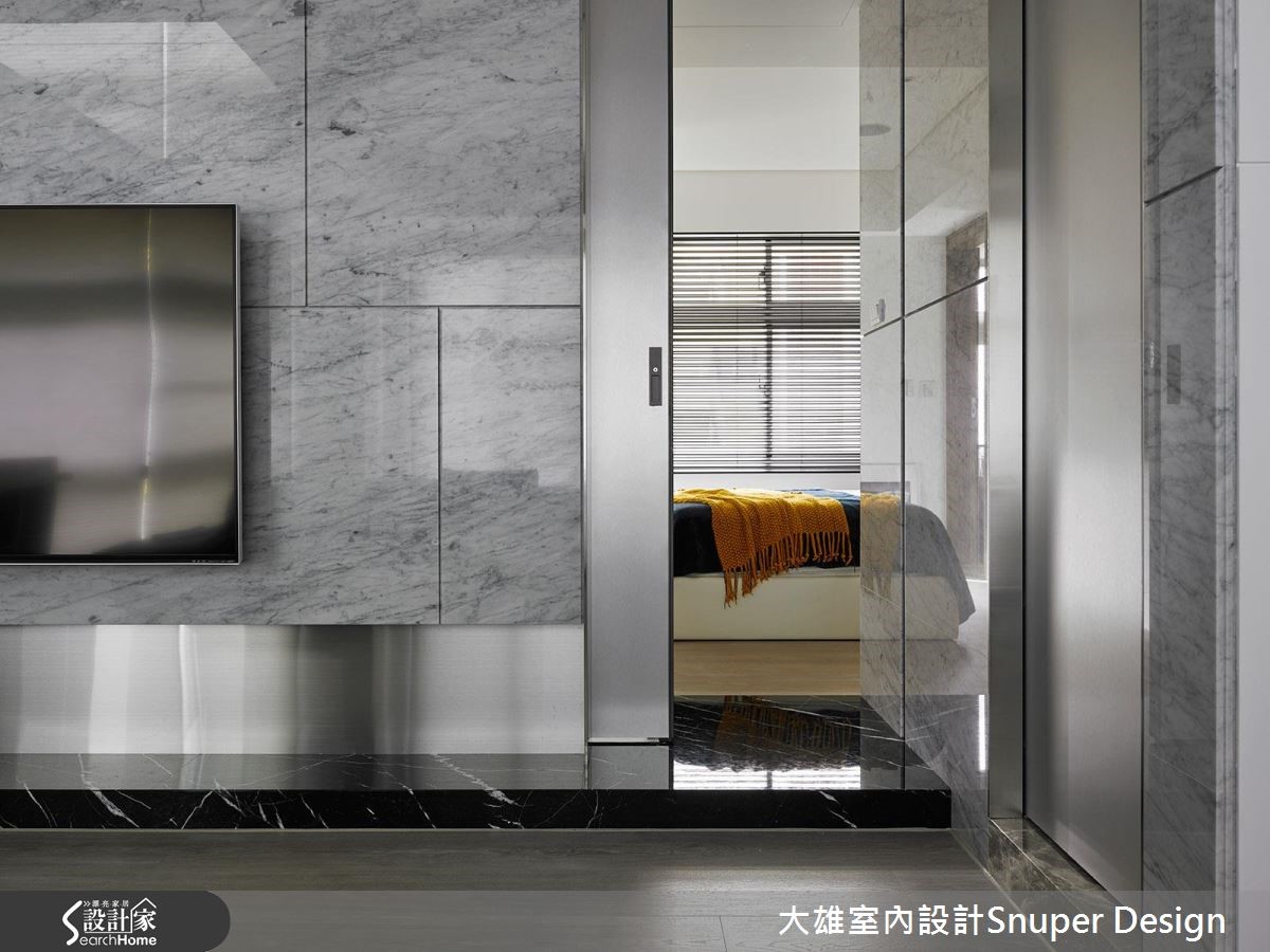 102平方米的单身居所,融入简约灰质、不锈钢,以及大理石的细致纹理,看似沉静冷冽的材质组合,凭借着室内的大面开窗,将坐落于山畔的绿意和日光一并收揽,在现代时尚的空间质性中,汇聚温和的自然脉流。 【以地坪与家具,抹去制式格局】公共空间涵括客厅、餐厨,以及阅读区,抹除制式的格局分野,仅以地坪材质、家具位置等,弹性划分领域归属,沿着日光充裕的窗畔,每个角落皆能感受到绿意和微风的拂照,开启生活的舒适想象。【善用材质,让空间与自然互动】在材质的选择上,采用大理石的柔和脉理,搭配不锈钢金属,形构温质自然和现代时尚的互动对话;天花梁体覆上镜面,让高度得以舒放延展,也透过介质的映射,援引窗外绿景,拉近生活和自然的距离。【独立更衣室与盥洗,提升舒适度】进入主卧室,除了简约宽敞的睡眠环境,也包含盥洗和独立的更衣室空间,将居住者的舒适度列为优先考虑。随着时序渐移,邀请三五好友来到家中小酌一番,LED灯光可依照情境调整色调,让夜间的聚会酌饮更具时尚质感。