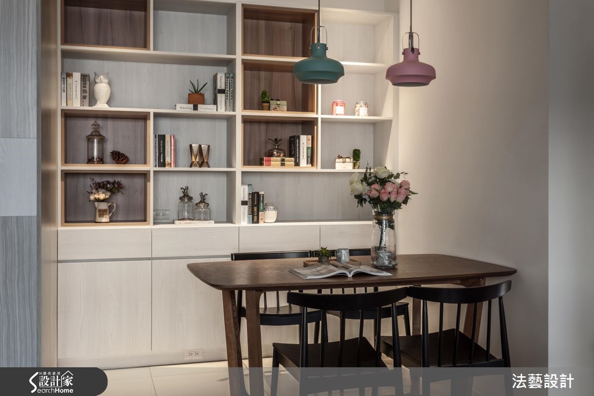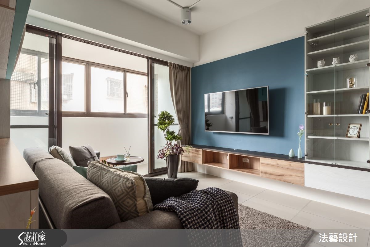 53平的北欧风居家,屋主是年轻的上班族小夫妻,喜欢清爽舒适的空间设计,但因装修预算有限,并期待有设计感和充足的收纳空间;因此设计师运用定制柜跳色搭配,不但满足了实用收纳、生活美感的两大需求,也为屋主掌握装修花费分配!【注入木色,展现别致北欧表情】设计上以简约、清爽为主,电视柜与餐厅的柜体以纯白色搭配木材质,营造风格的一致性。电视主墙以温和清新的蔚蓝色为主,不仅与厨房处的多功能台面相互呼应,更挹注丰富的色彩层次。除了收纳需求,也需要因应小家庭的生活模式,考虑客厅、餐厨等空间的配置关系,厨房天花向下延伸打造开放层架,划分客厅和烹饪区范围。中段采用局部镂空的设计,让采光得以共享,既破除了封闭格局思维,也更显扩容。