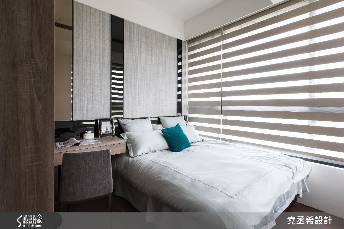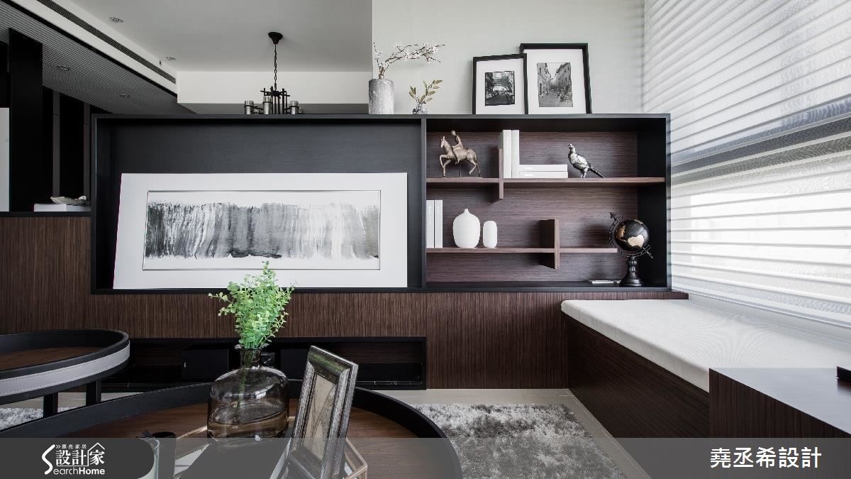 由于有三面面窗的优势条件,便采用开放设计,让日光得以进入客、餐厅,展现大器范。同时以简约的风格描绘整体空间,干净利落的线条游走一室,艺术画作与风格逸品点缀其中,营造出酒店般的精致与质感。【沉稳色调,纳入自然绿意】维持原有的开窗特性,以沉稳色系作为空间调性,添入知性风格。当公领域的窗帘开启,户外的暖阳与造景缓缓引入,与空间内的小植栽相互呼应,自然写意的风格调和现代感的生活氛围,铺陈出细腻与层次美学。一进入室内,虚实相间的柜体成为内外领域的巧妙界定,左侧餐厨区静置一座大理石吧台,衔接长形餐桌,创造出机能完整的烹调与用餐区。隔着双面收纳柜体,来到客厅领域,长型沙发、茶几与柜体形塑简约干净的生活样貌,窗前飘窗则是屋主平日休憩的小天地。