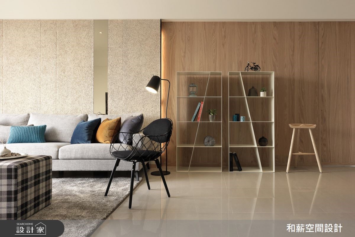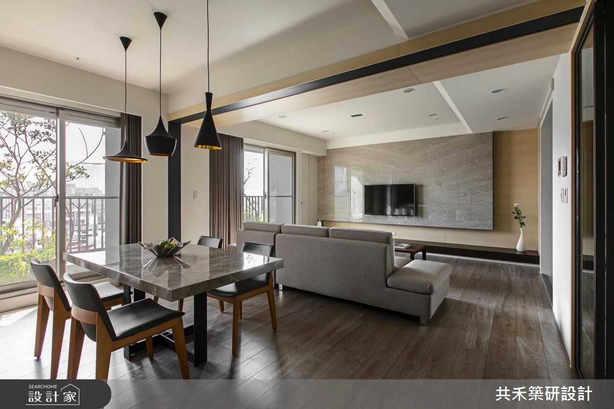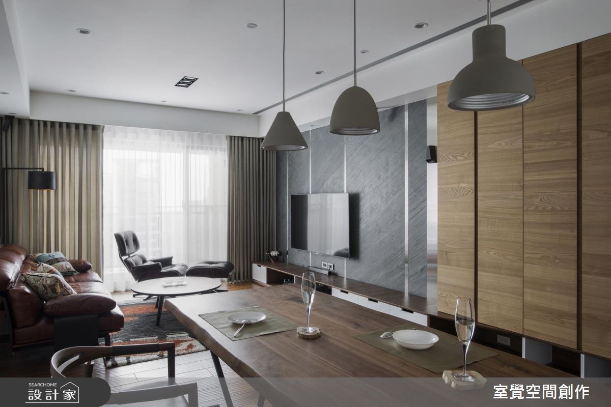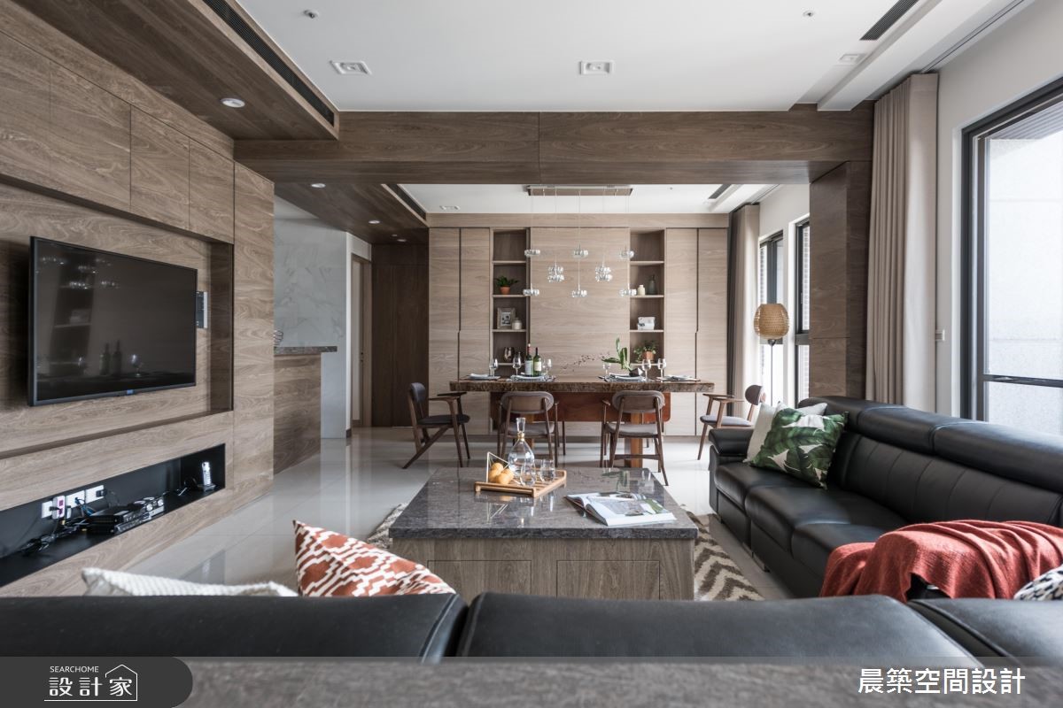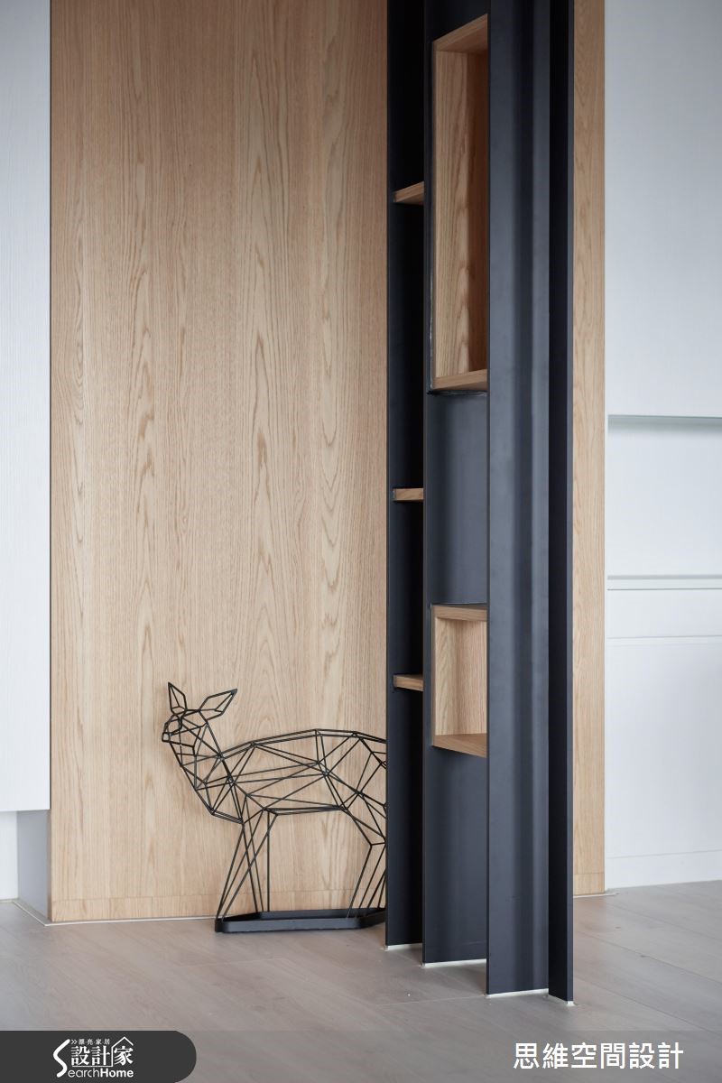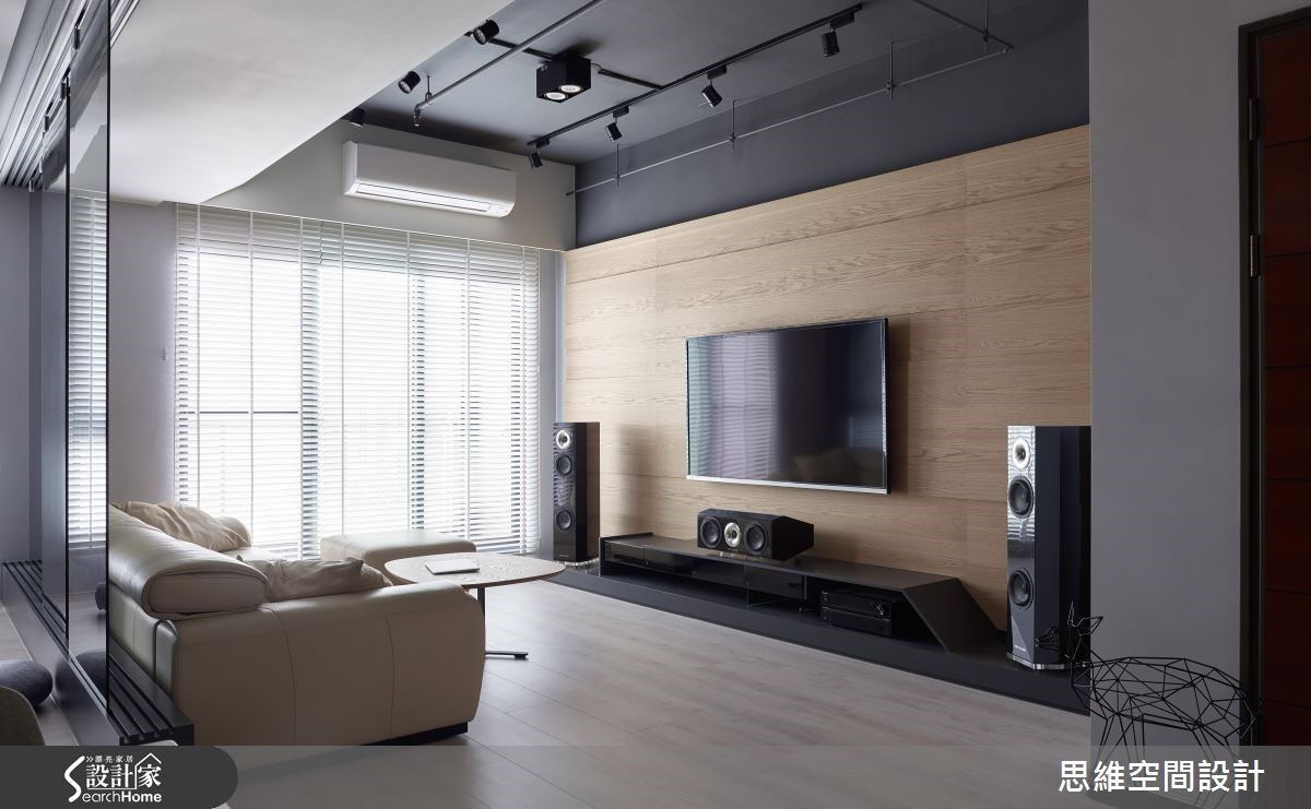 设计团队从客变开始(客户变更;建设公司在施工阶段依照屋主需求,预先提供变更格局、设备等服务),为屋主一家三口规划亲子宜居的生活动线,抹除原先次卧隔断的传统规划,改造为开放式多功能房。不仅放大公领域的感受,更给予居住成员亲子互动流畅的宽敞空间。 【玻璃门片取代隔断,视觉更通透】玄关处以镂空柜体设计,兼具隔屏功能,适时遮掩视线。客厅电视墙以大面积白橡木皮为视觉主轴,天花则搭配明管漆成黑色,别具另类的现代风情。沙发后方的居室改以L型玻璃门片取代实体隔断,垫高的木质地坪提供了游戏间、书房与客房等多维机能。将开放式餐厨置于另一侧动线,并利用中岛吧台划分烹饪与用餐空间,纯白色系搭配木作与细致的铁件造型吊灯,增加用餐氛围。主卧空间延续木作的气息,将卫浴入口隐于大面积木作门片后方,推拉门设计更兼具电视墙功能。