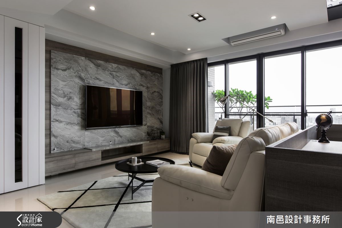 客变后格局还是有问题怎么解?电视半墙创造多元机能,主客卧对调优化动线,59.4 平米新成屋化身质感文青宅