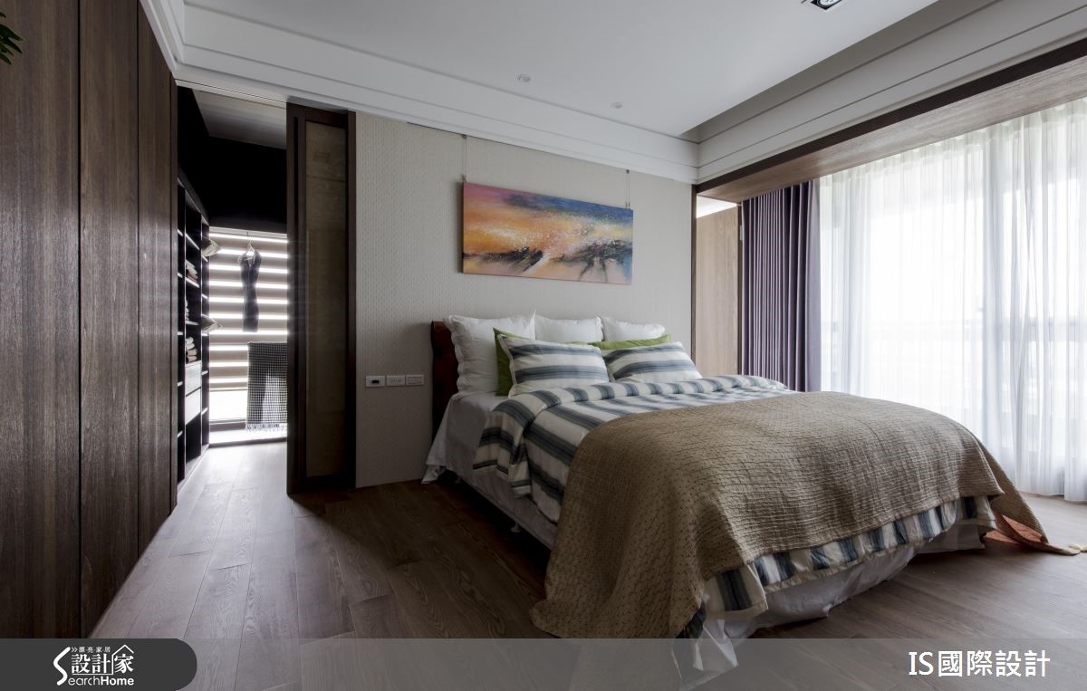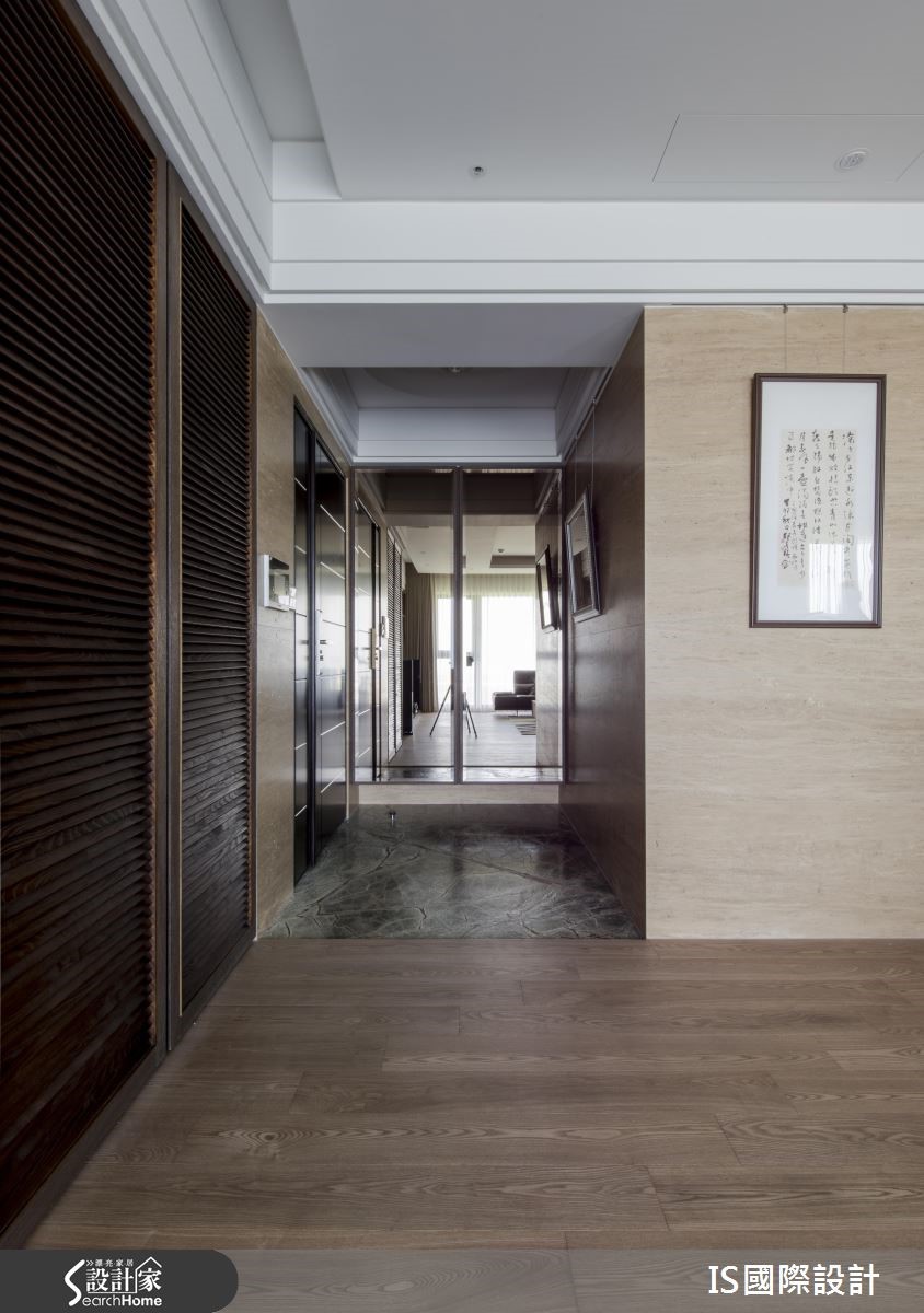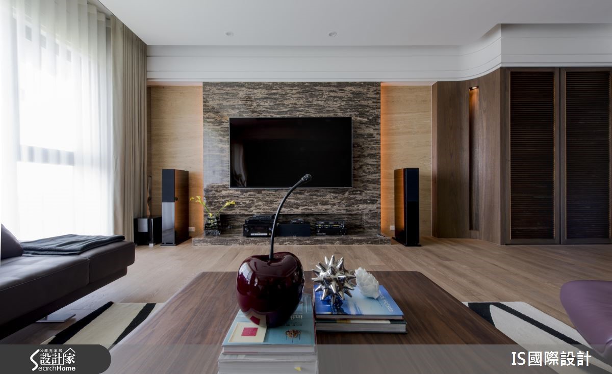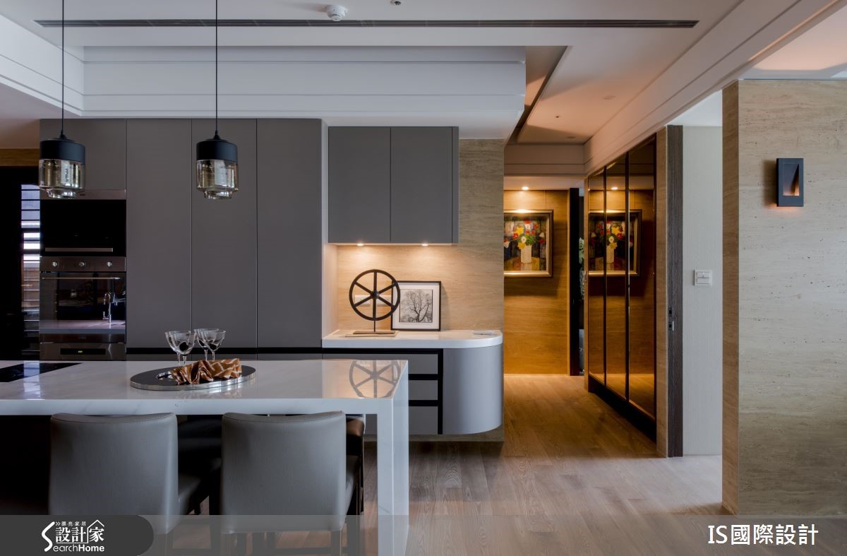 四面大窗的良好采光是此案的优势,休闲干净的质感铺陈一室,营造出净透的明亮质感。宽敞、舒适的公领域里,以简约的设计为核心,随着自然光的洗礼,并调和棕、灰色系的中性调,展现有如酒店般的美学涵养。【高雅石材,展现大器空间】设计师藉由天然材质的纹理铺陈,烘托出空间中的典雅细腻,像是以山水金峰大理石打造电视墙面,而雾面肌理的义大利黄洞石则衬托出自然细节与动人气势。并以方正、渐层的造型描绘天花板,进入公领域后,视觉则得以无限延伸。藉由柜体来型塑空间,不仅整合领域,更让出宽敞的走道。以大理石延伸壁面,门片衔接其中,让收纳柜自然融入墙壁,拉整视觉的平面感受,达到舒适简约的质感。此外,设计师更特别将中岛尺度放大,借此串连空间领域,更呼应休闲度假的宗旨。