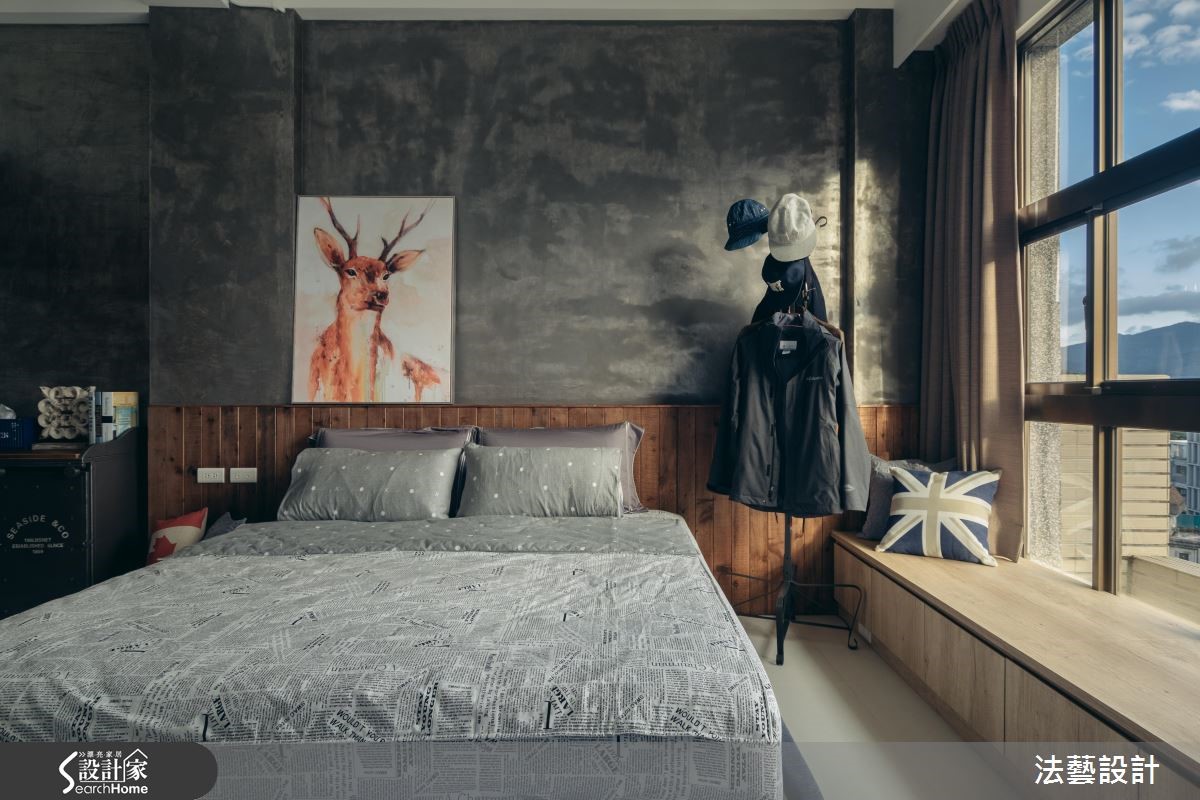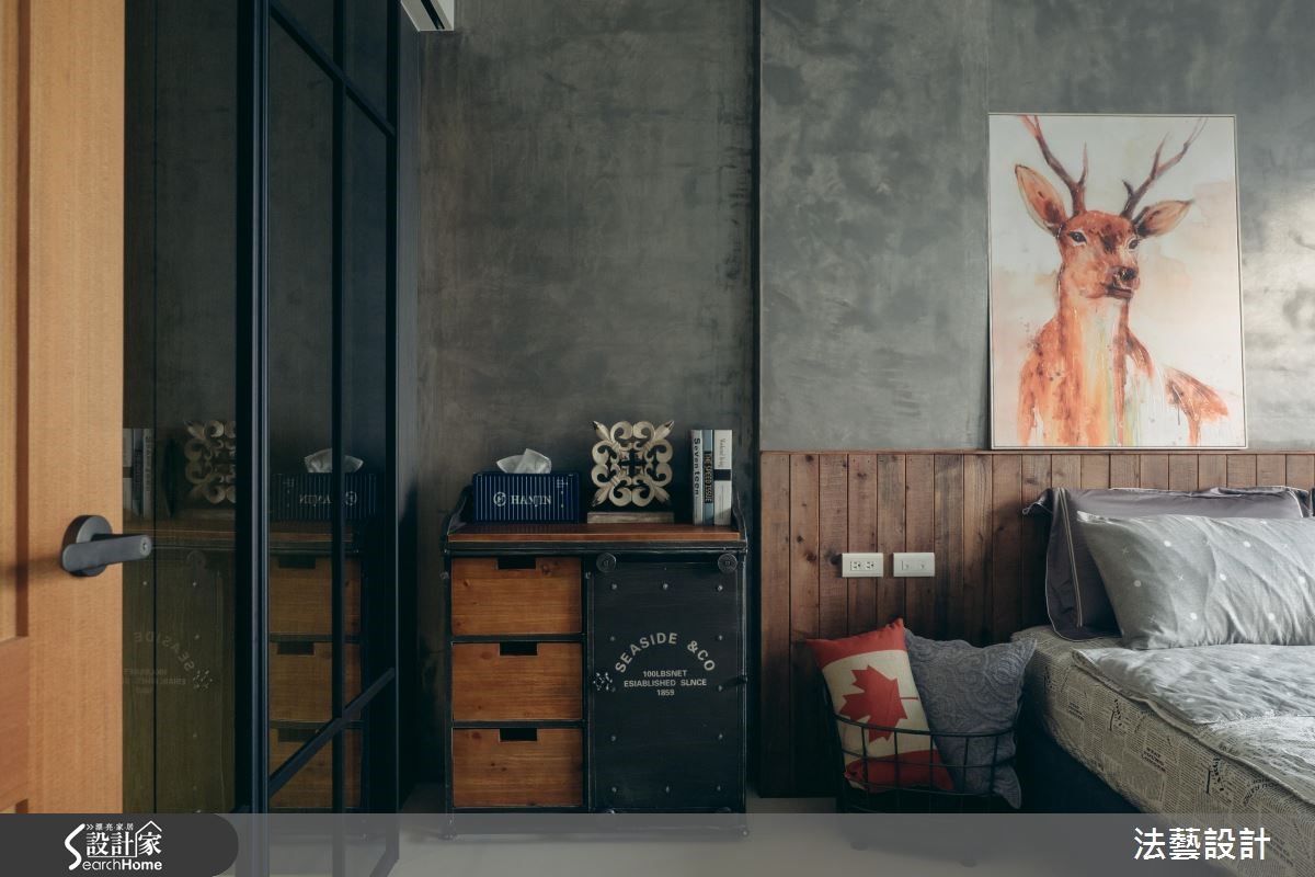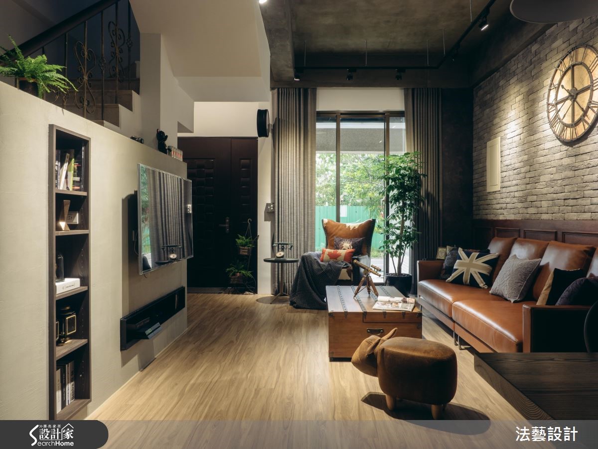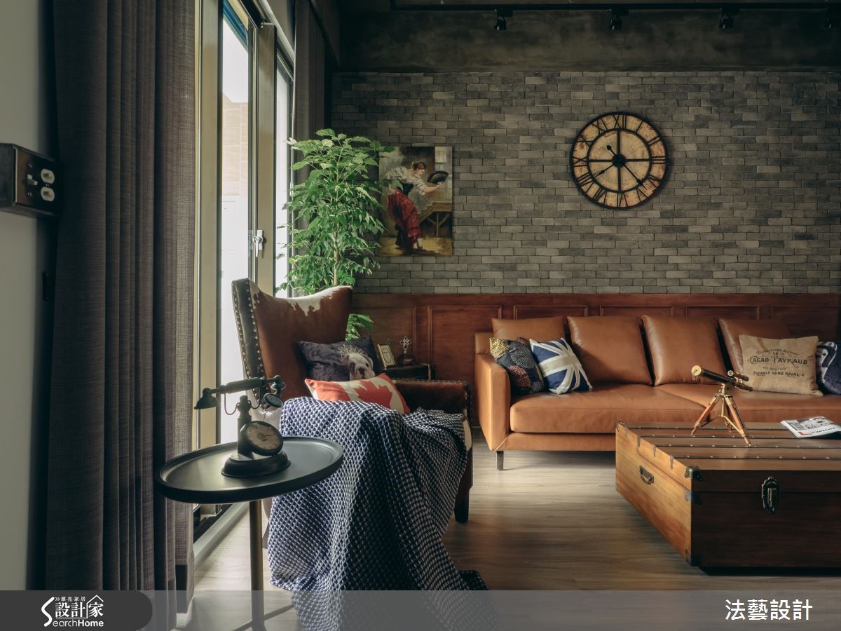 年轻的领导在工作地点附近购置了居宅,透过设计师巧思设计,运用原始水泥色调、文化石及铁艺,为93平方米的空间,带来独特的工业风氛围,满足屋主的期待。【以材质与色调诠释工业风】为了塑造个性化美感,以纹理粗犷文化石搭配染色线板,注入经典复古气息,与带有水泥粉光感的灰阶电视墙相呼应;搭配木质地板,高冷氛围中添暖意。独立厨房以铁件推拉门划分空间,并以不锈钢台面与铁件酒架构置吧台,上方更以谷仓门片完整诠释工业风格。风格营造的细节,设计师巧用单品与家具,以皮制沙发搭配木箱桌几与复古壁钟,带入英式工业质感。用餐空间的餐椅、探照灯与吊灯以铁件塑造粗犷个性,与吧台材质相得益彰。