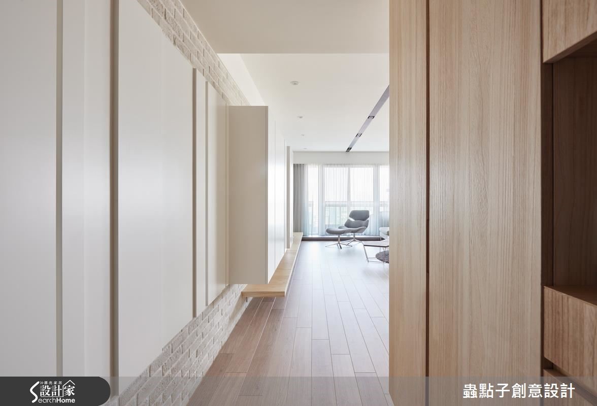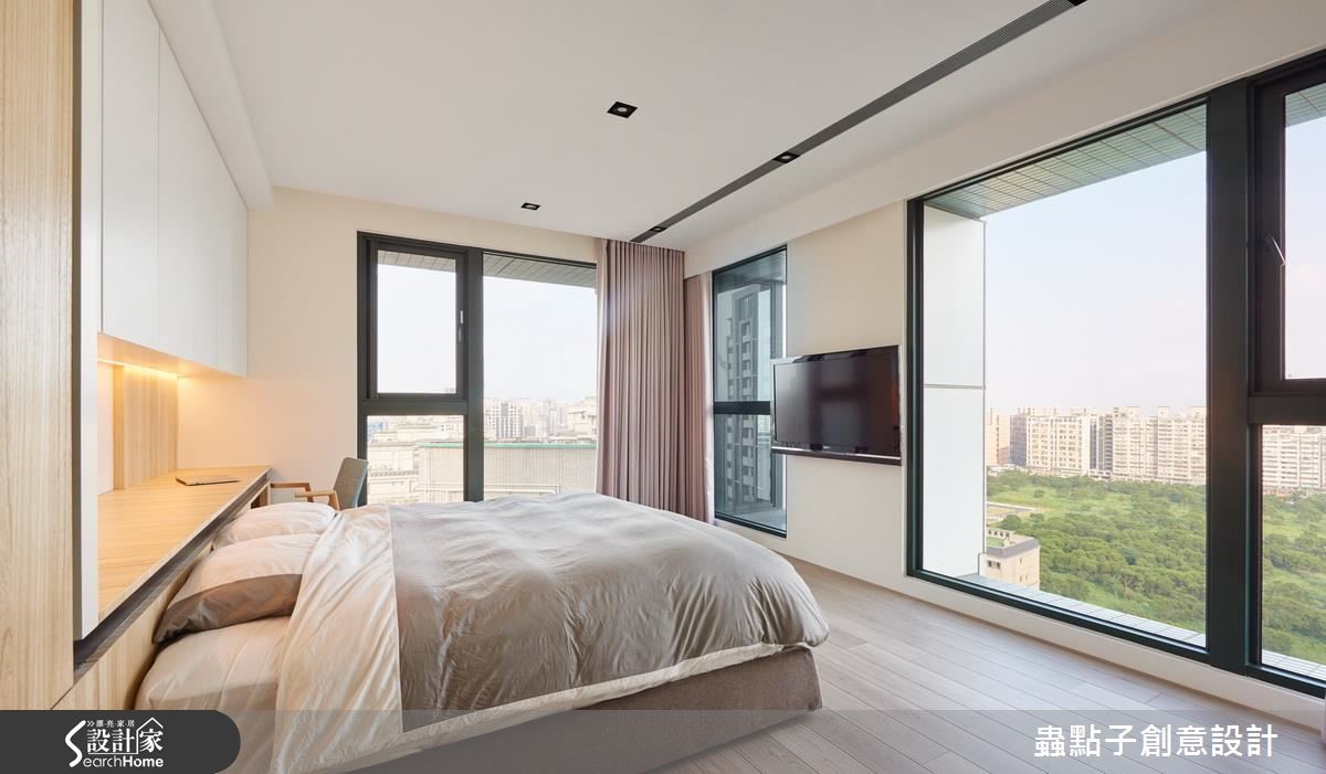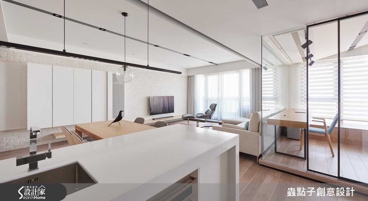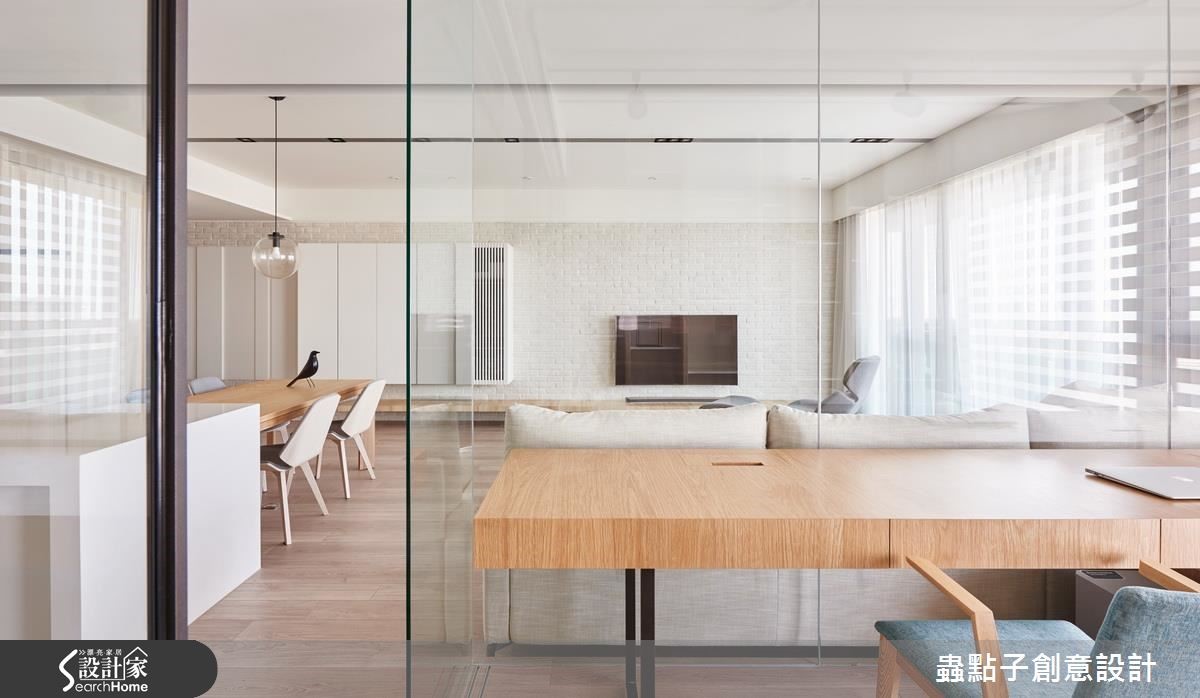 兼具医生、作家身分的屋主,希望一回到家就能好好放松,设计师利用大量的纯白色系和浅色木材质,将149平方米空间变得更轻盈纾压,并以清透的材质,打造出兼具视觉穿透性与隔音效果的玻璃书房,让屋主可以在独立的空间中享受阅读、书写的乐趣。【玻璃材质与浅色系,增加明亮感】以北欧风定调的居所,迎着大面落地窗,将户外景观纳入室内,再藉由灯光设计与天花线条,化解梁柱过大的问题,令人一走进室内,便能感受到舒适的开放感。玄关处以柜体和温润的文化石串联客厅电视墙,再搭配通透的玻璃材质与温润木质,提升居家的明亮度,让整个空间漫溢着阳光的温度,营造出疗愈、放松的生活氛围。宽敞的主卧空间,面对著大幅的绿意和市景,迎入舒适的自然氛围,除了更衣室配置外,在床头处也蕴藏大量收纳机能,为居住者挹注实用机能性。