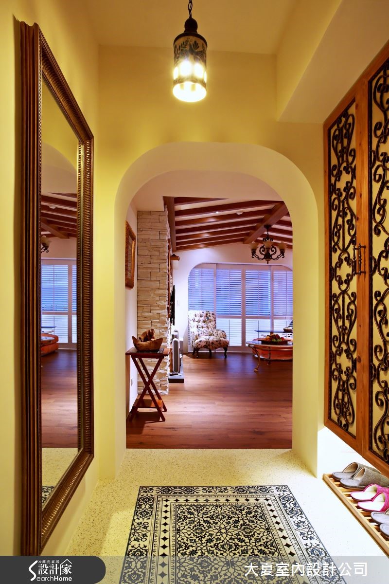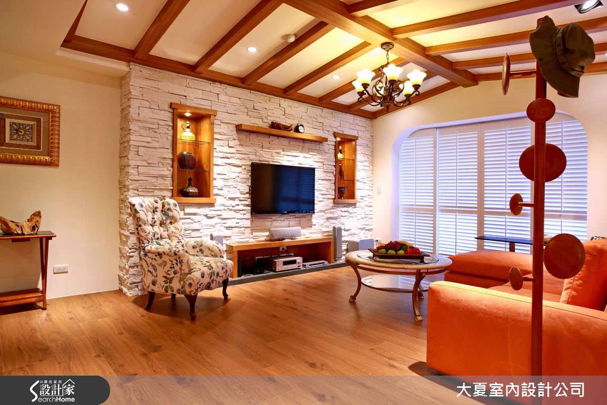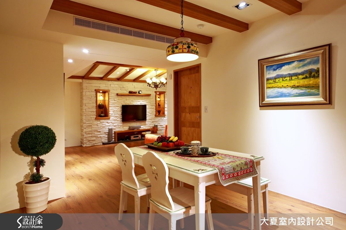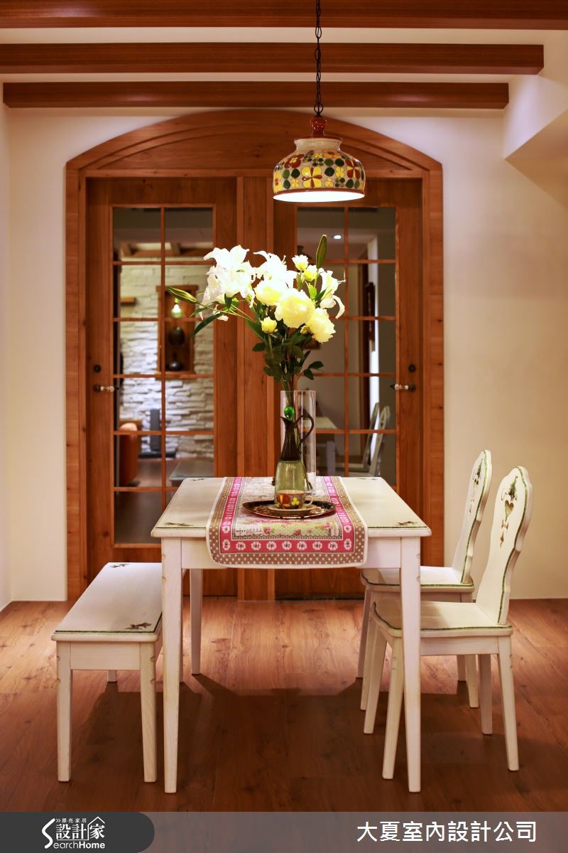 在城市中筑起一座梦想中的城堡,饰以浪漫的乡村风味道,晕黄的光感调和一室温馨,异国风尚的艺术线条与画作点缀其中,创造出醉心的动人雅居。【全室净白,注入木质加温空间】入室后的玄关先以弧形的线条描绘出鞋柜造型,地面则铺设波斯地毯,营造出浓浓的异国质感。公共空间里,以原木肌理铺设地坪、门扇,甚至化作天花板的横梁格栅,让日常生活逐步加温。白色文化石堆砌出客厅主墙,沉浸于惬意、优雅的城堡故事里。两侧嵌入柜体机能,让摆饰或艺术收藏得以尽情展示,更添丰富的人文情怀。餐厅选用白色调的餐桌椅,呼应乡村风的恬静典雅,结合民俗风的灯饰与桌布,挹注活泼的视觉印象。