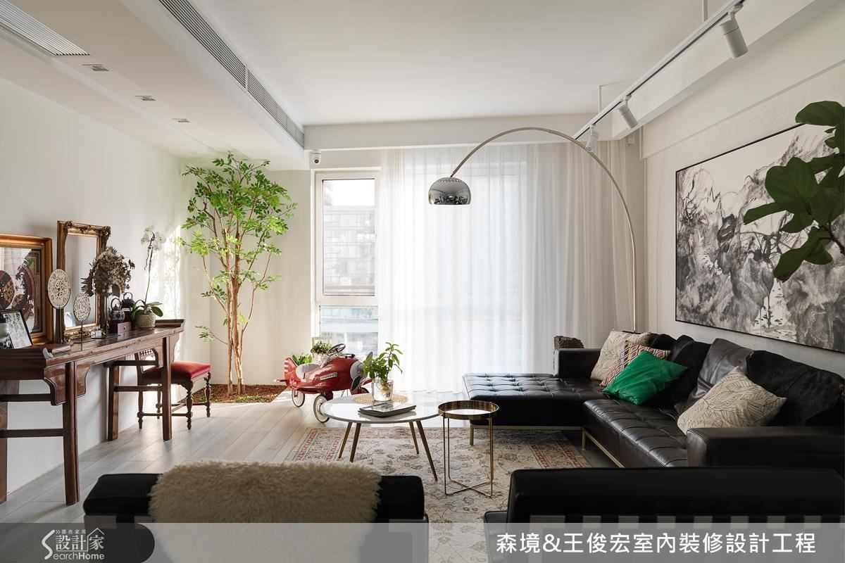 从事艺术创作的屋主夫妻,因为工作关系经常四处游历,他们将对家的眷恋化为一棵树,有着落叶归根的寄情。整体运用简单的格局满足生活机能,并将多年收藏的艺术品作为软件妆点,丰富的人文色彩让整个家散发独特风格。
