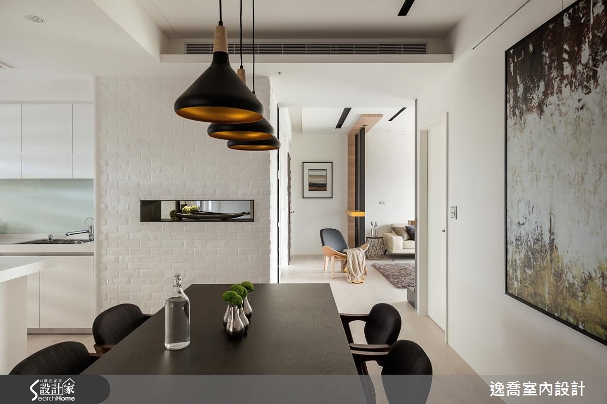 142平方米的北欧风居家,设计师以线条为架构、素朴色调为背景,赋予无杂质的室内场景,并延揽独一无二的景观优势,藉由大片开窗导景入室,演绎从容不迫的生活态度。 【将自然绿意纳入居家】 设计师于入口处配置一道雾面玻璃隔断,作出半透光遮掩效果,界定出独立的玄关空间;室内给予简约色调,搭配清简无华的家具,表现温暖的生活本质,而厅区一整面对外窗则成了视觉主角,在美好的绿意景致之下,型塑里外对话的流动时刻。 餐厨场域呈现净白的主调,以文化石墙显出设计层次,墙面则悬挂画作为妆点,搭上鲜黄柜体与悬吊灯饰,意外显现出略带工业风的生动氛围;寝卧回归纾压要求,以大面积浅色木皮强调雅致温暖,且将梳妆台、床头收纳及床背柜相互整合,使立面表情更为利落清爽!