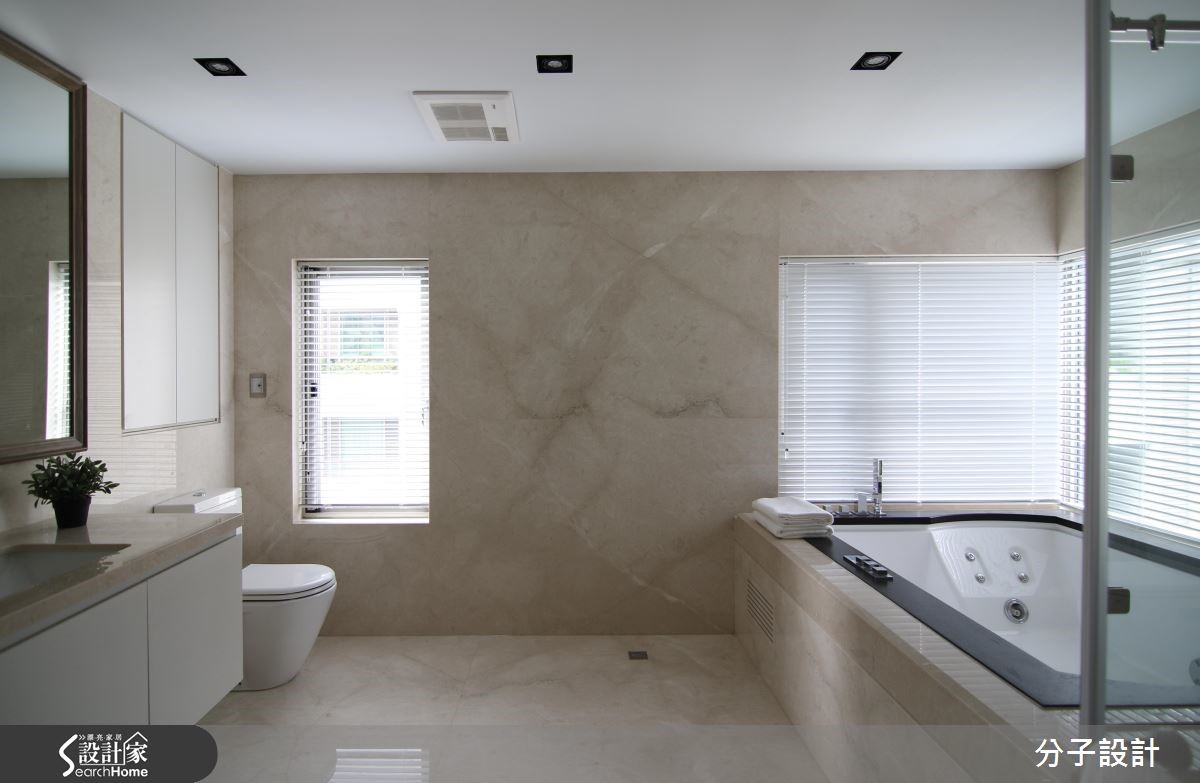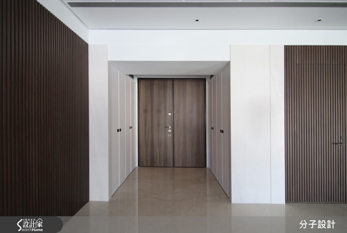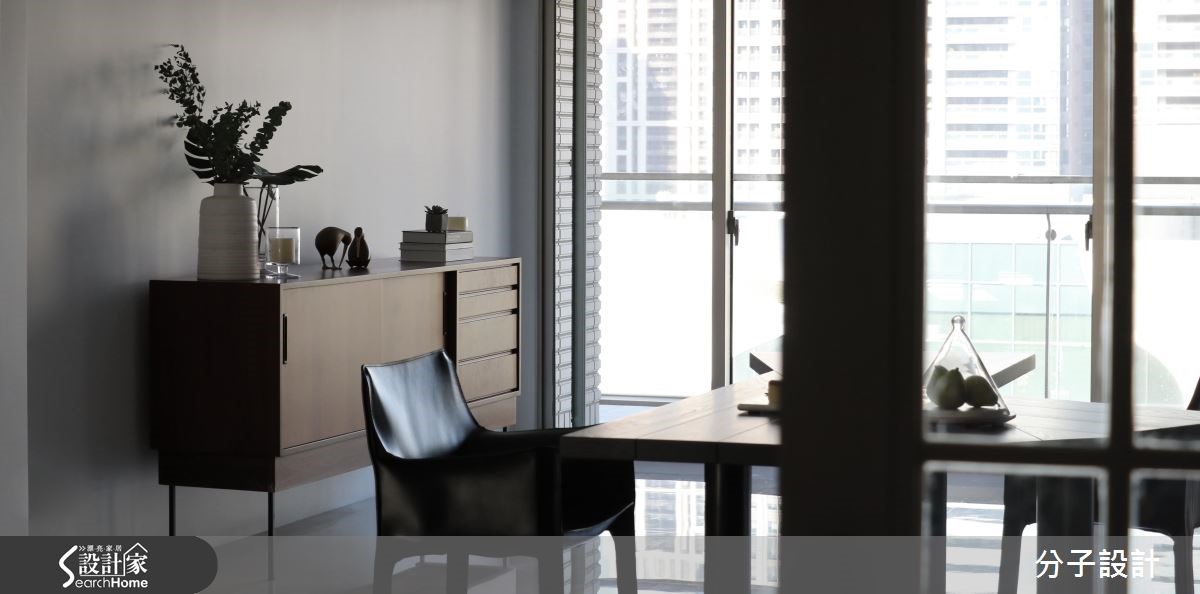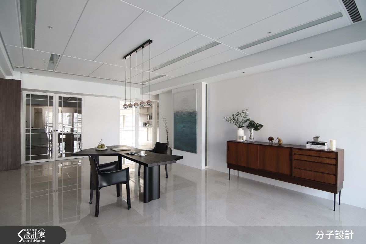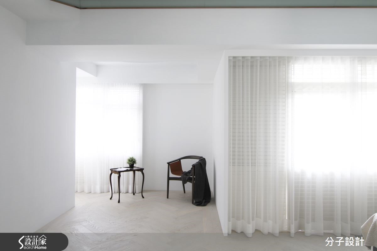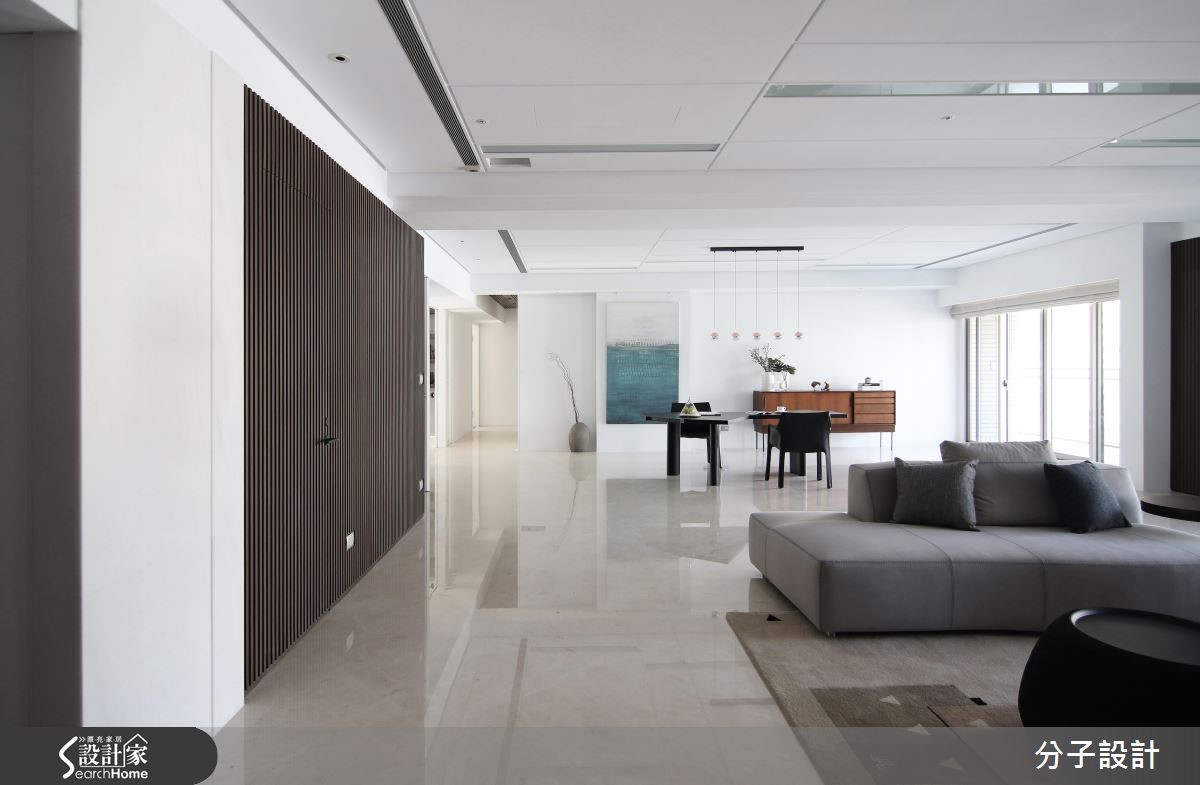 264平方米的现代风居家,设计师透过格局重塑导入室外光源,使各场域皆能接收到采光,同时运用大面积白色作为基底,与温润木作相互搭衬,在新旧材质的完美衔接之下,将老屋重新改头换面。【大面积采光,打造明亮客厅】进入玄关即可见格栅语汇的渐进延伸,带入些许沉稳禅味,空间整体采以白色创造雅致情境,与深色木作的搭配恰如其分,搭上四平八稳的方正布局,佐以大面积饱满采光,造就开阔明亮的视角关系。【清玻为主,让光线游走厨房与书房】公领域以开放形式连贯场域,天花则加入镜面、线条等模糊横梁交界,于餐区立面陈设绿色画作,巧妙对应客厅的红色软件,形成汇聚视线的鲜明焦点,替清冷白调谱出曼妙与生动,并选用清玻建构厨房与书房门片,让光线得以有效穿透,营布出互动感十足的领域关系。【阳光加上起居地带,疗愈的卧室】寝卧承袭明亮简约的风格,因应原始的格局架构,于角落规划舒适的起居地带,同时导入迷人温暖的阳光,让住卧空间充满疗愈放松的气息!卫浴则选择带有自然纹理的暖色砖面,型塑温暖风格,且配置双洗手台,让日常使用更为灵活!