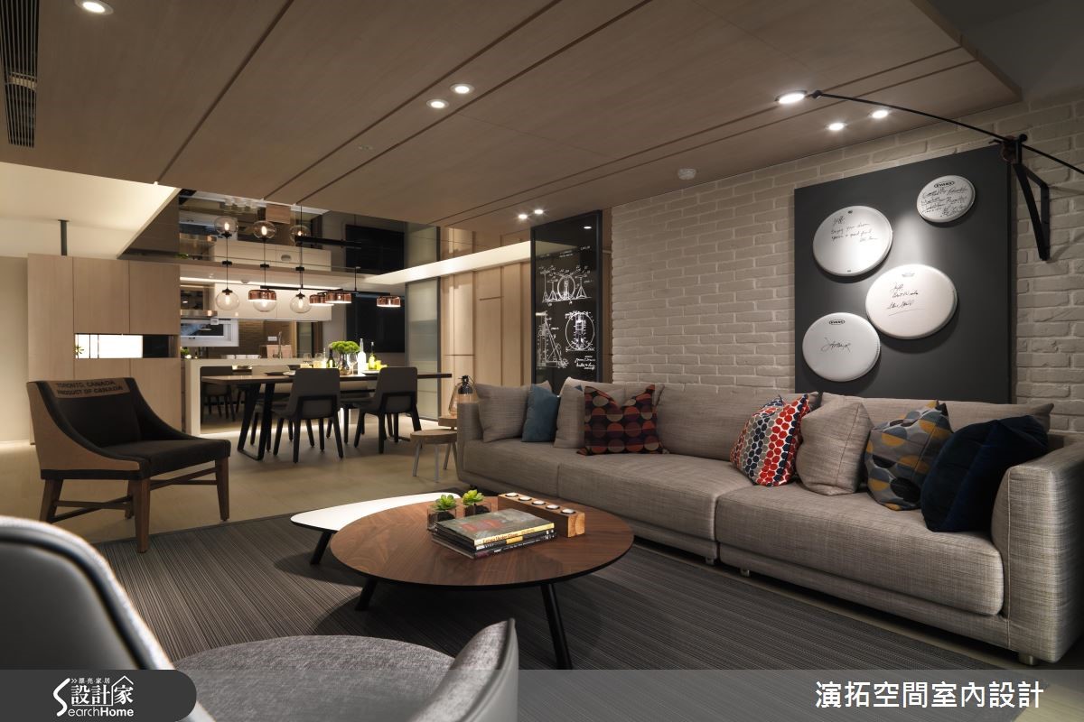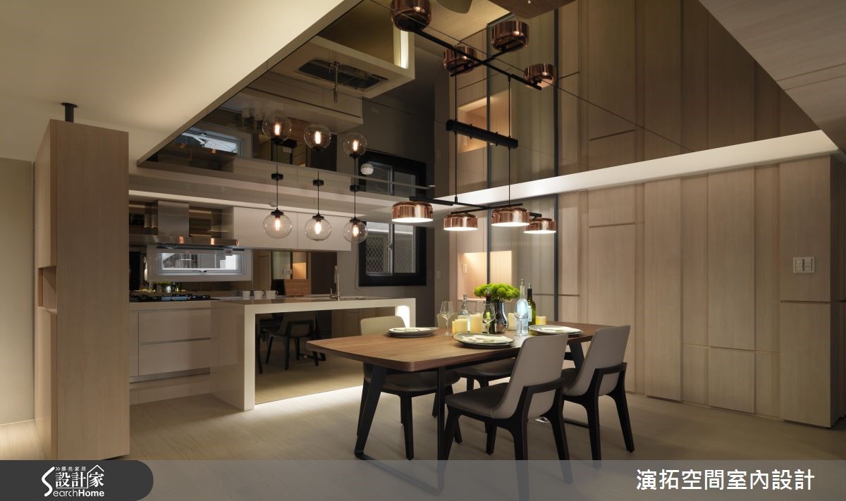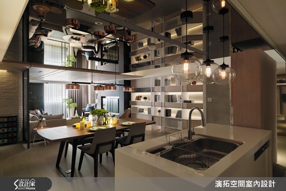 122平方米老屋,是屋主自幼成长的地方,适逢新婚,找来设计师进行空间重塑,完工后的居宅不仅呈现开阔尺度,更融入工业风结合现代感元素,变化出独特的时尚风貌。【符码背景墙,展示情感记忆】设计师以英文符码打造背景墙,搭配相框聚焦视觉,展示出居住者的情感记忆;沙发墙选用白色文化石为底、搭上装饰软件,创造颇具个性的墙面表情,电视墙整合书墙不仅兼具实用机能,更具优雅格调。【镜面天花板,延伸空间高度】餐厅、厨房重整后,变为开放餐厨场域,旁边的旋转鞋柜则形成与玄关之间的弹性界定,空间更可被灵活运用,天花大胆地采用镜面设计,除了衬出工业吊灯的剔透明亮,亦衍生挑高的视觉观感。【整合寝卧立面,隐藏收纳存在】寝卧透过温润木纹带出朴实生活感,并经由立面的整合,让人察觉不到收纳柜体存在,而灯饰与铁件的合宜点缀,则标榜出属于居者的个人风采!