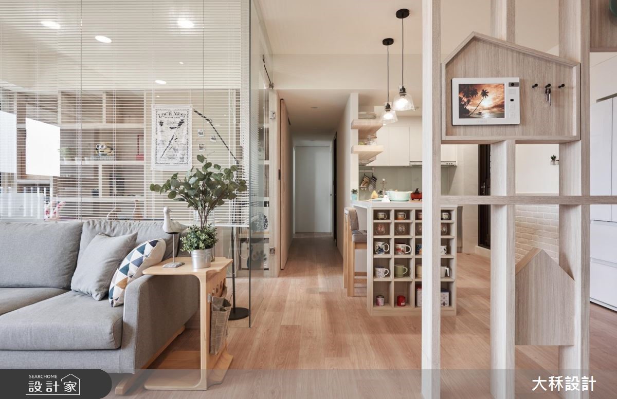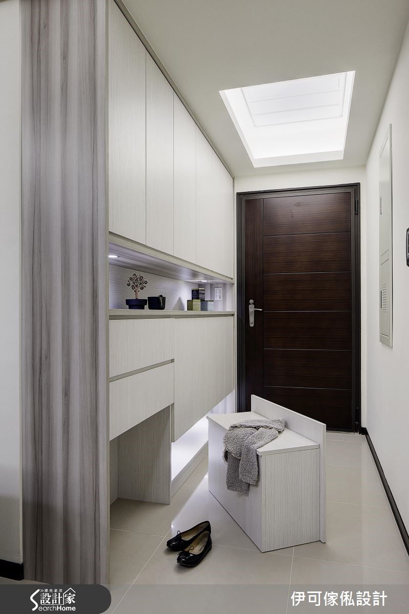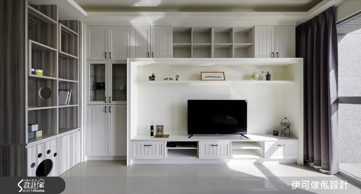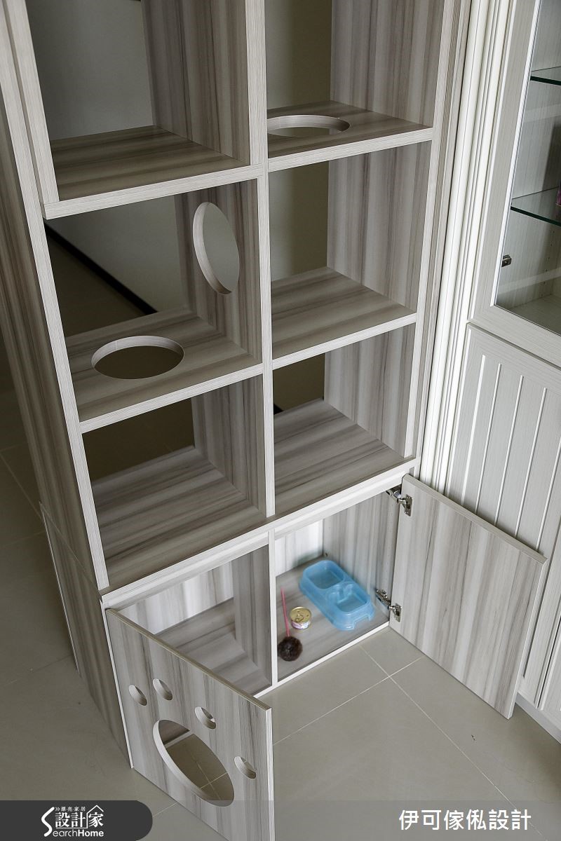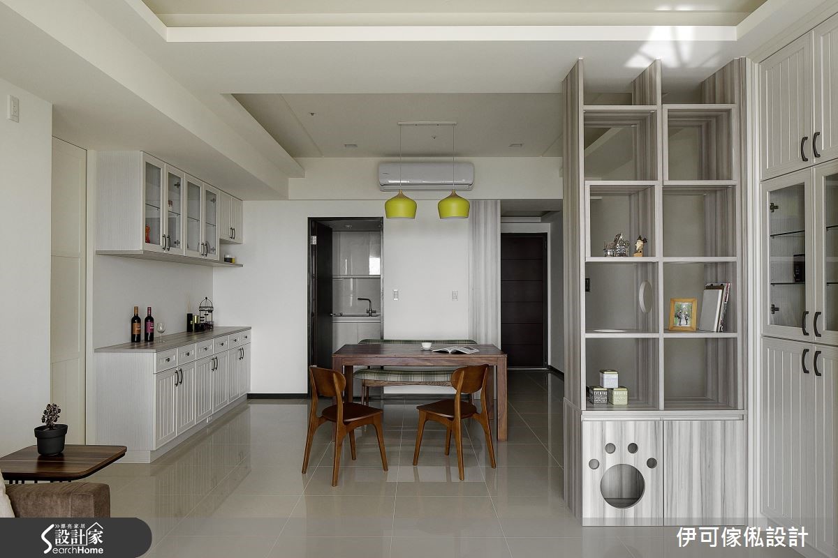 86平方米居宅,设计师在不动格局的前提下,舍弃繁复设计元素,采以北欧风格替空间定调,并着重于客餐厅的收纳机能,符合了一家四口与一猫的生活需求。 【具美观且功能十足的玄关空间】进入室内,可见入口处规划整排收纳柜,灯光结合中段开放的设计形式,增添量体的轻盈质量,且配置隐藏式的活动穿鞋椅,创造美观且功能十足的玄关地带;客餐厅之间以猫爪镂空图腾的双面柜作出界定,不仅让进门后的视觉获得缓冲,更兼作猫跳台使用。【乡村感极简线板,打造美型墙面】客厅则透过大面窗导入美好光景,于电视墙挹注大量的置物空间,选择带有乡村感的极简线板作为语汇,打造出复合式机能的美型墙面;餐厅领域则考虑廊道过长,采隐藏活动推拉门予以区隔,赋予立面更完整的表情。主卧规划整排实用衣柜,以带有细致纹理的柜面型塑简约质感,即便是柜体上方亦不放过,满足大容量的收纳需求;而游戏间则采木地板铺陈,打造舒适健康的使用环境,而为了因应未来生活的弹性变化,没有施作多余设计,使空间无论作为房间或书房都合用!