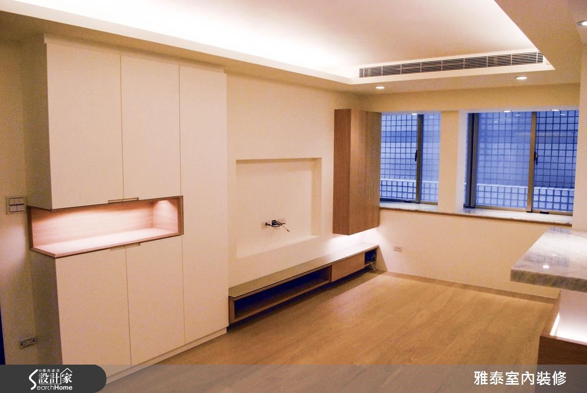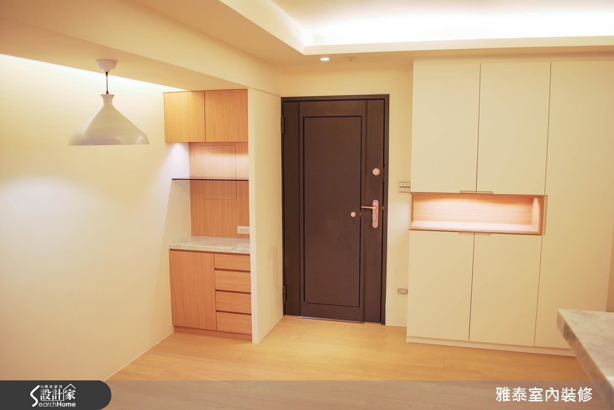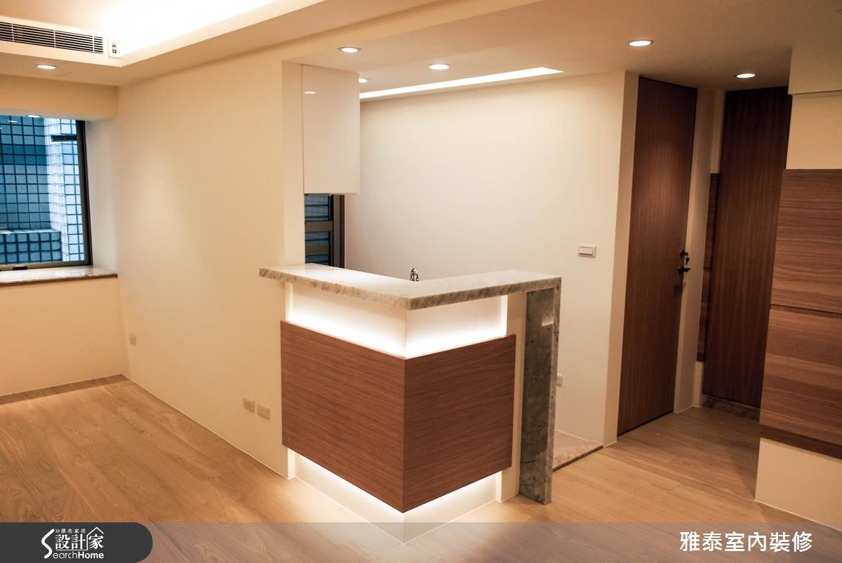 历经30年岁月的居宅,在设计师的改造之下,转为现代感的简约风格,利用米色调与木纹肌理的铺陈,搭配各式收纳机能,打造实用与美学兼具的宅居,同时也满足父母替女儿打点结婚新居的心意。【善用畸零空间,打造收纳机能】整体空间藉由木皮予以妆点,温润大地色彩传递出自然的怡人气息;设计师为了增加空间开阔度,以及结合年轻夫妇的使用习惯,将原本封闭的厨房改为开放式格局,并增设小吧台,使之与客厅相融,让视野更显舒心开阔。考虑未来家庭新成员的加入,还特别规划厕所及小孩房,替生活增添高度便利;而收纳机能更是设计的重点,主卧利用衣柜旁的畸零角落,置入开放式书柜,满足屋主的实用需求。