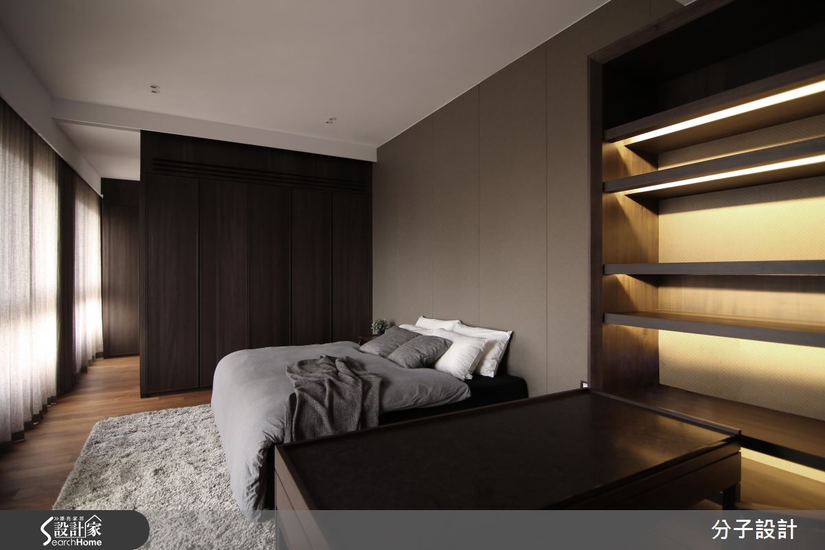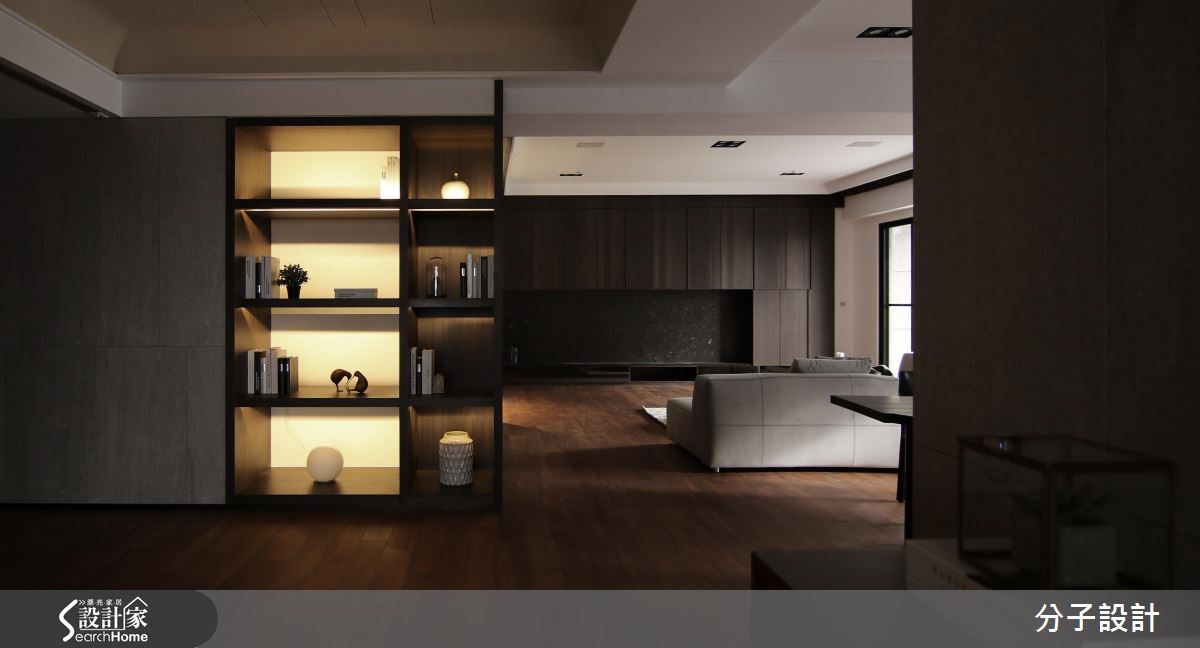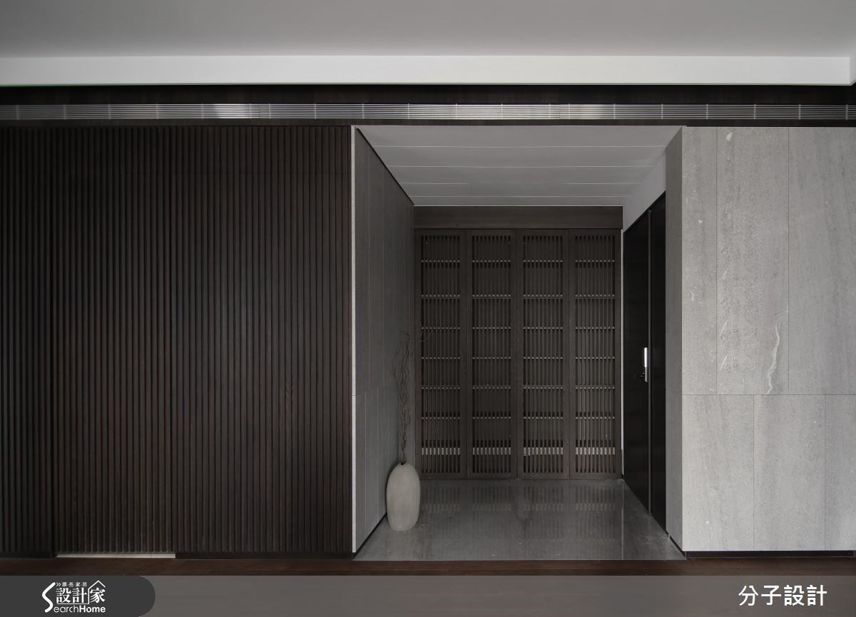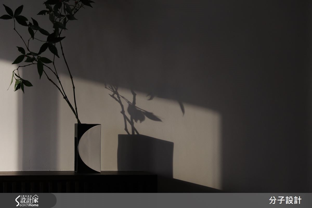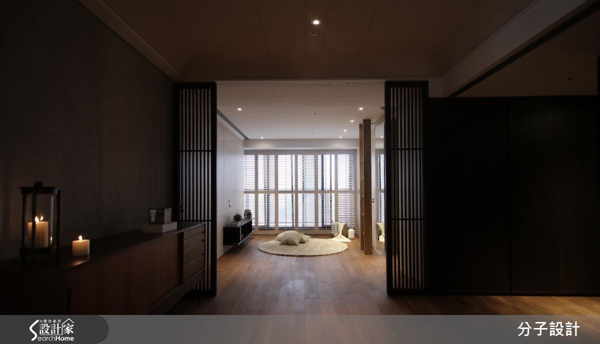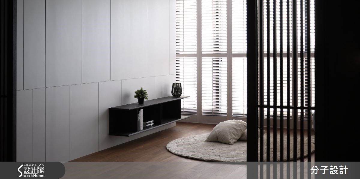 设计师以大量木元素与石材井然有序的铺排在空间中,创造宁静、自然的氛围,更贴和日式风格特有的美感,让日光穿梭在家具与摆设之间,随着时间烙下光影之美。 【石材与隔栅,让光影充满艺术】入门处以格栅规划大面积收纳柜体,壁面以石材营造冷调质感,同时以格栅门片巧妙隐藏卫浴与储藏空间,更让光线制造特有的艺术感。全开放公领域铺设色调沉稳的木地板,采用低台度沙发,增添休闲感。电视墙以石材结合大面积柜体,创造方正却不失层次的设计。针对原先光线较为不足的中段空间,利用格柜柔和的人工照明与多功能室的日光补强,增设格栅门片的多功能室兼具隐私与互动效果,将日式风格特有的暧昧美感忠实呈现。主卧则结合阅读机能,以大地色系创造自然的舒眠空间,置物柜嵌入人工照明,让空间更显温馨。