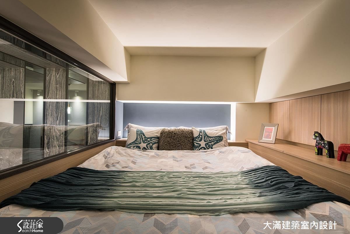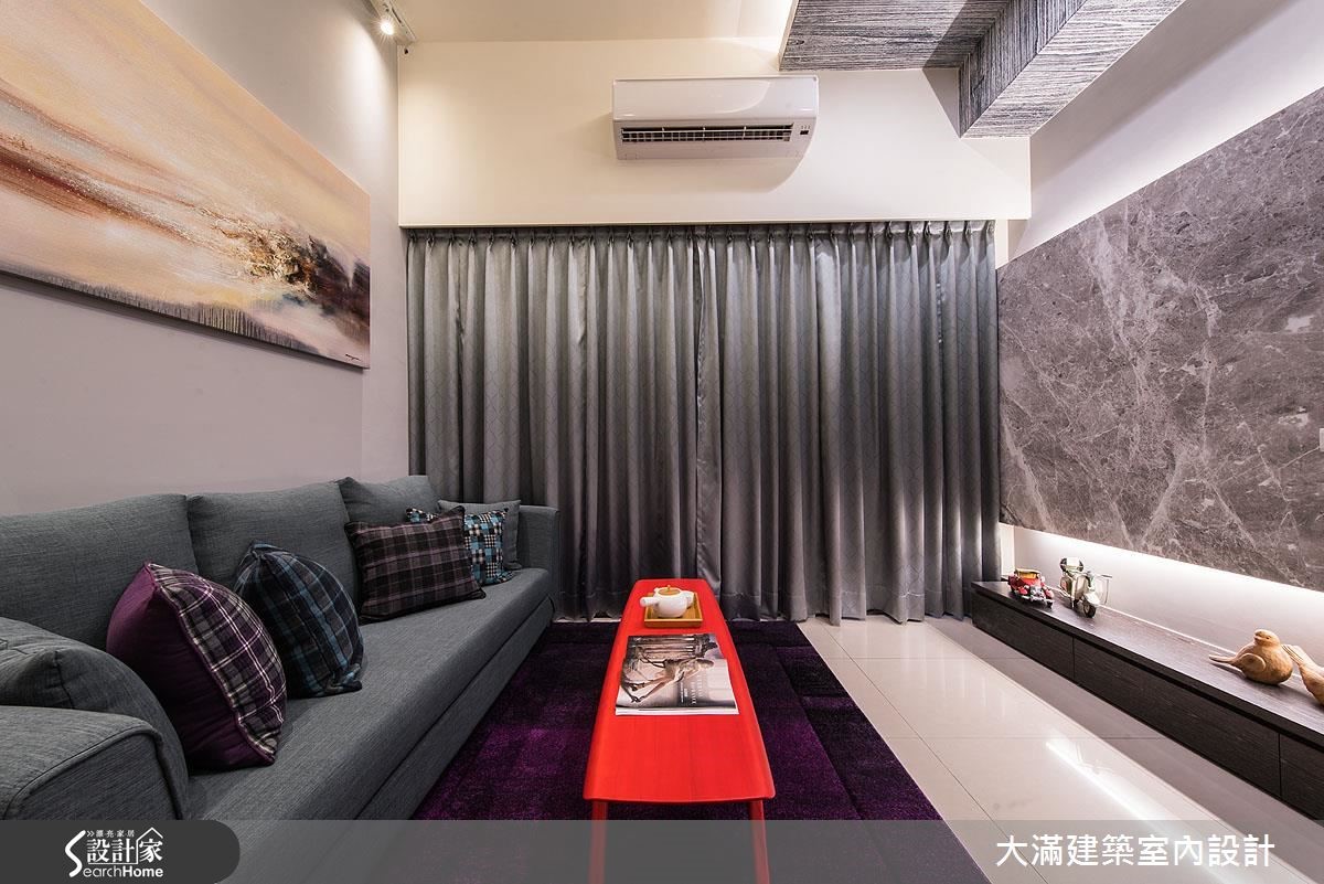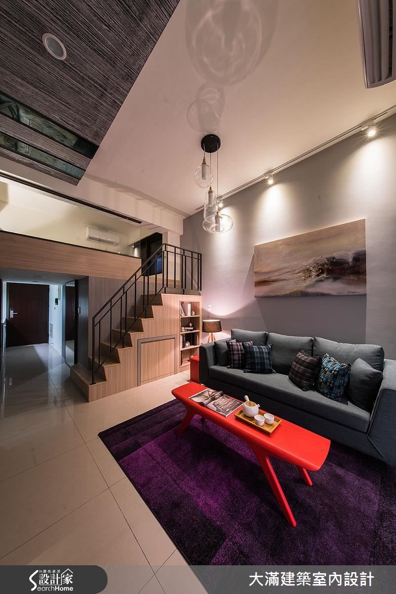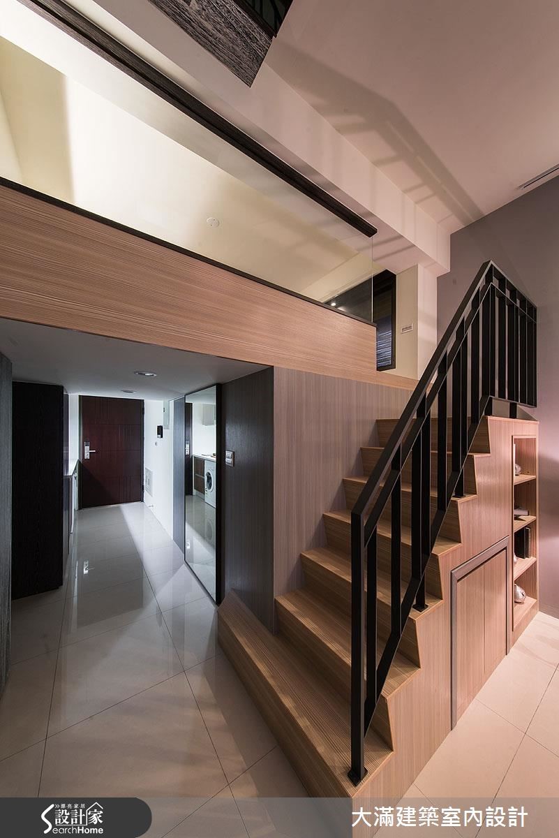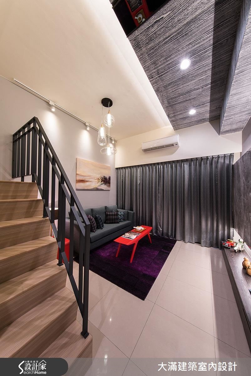 针对挑高结构的现代宅,设计师以精省的预算,藉由材质延续与色彩的搭配,并融入清透建材,让53平方米的场域展现难得的开阔大器。【主墙面延伸,拉阔空间感受】材质选择上,设计师采木纹、大理石等纹理深刻的建材为主,于电视主墙做出材质的串联延伸,其间穿插灰镜,藉由简单的块体与线条,无形中导引视觉向上,达到拉阔立面尺度的效果,并在沙发墙上加入重点画饰,搭配灯光的照明提亮,创造轻盈挑高的视感。楼梯部分不只拥有良好的收纳展示机能,并藉著扶手的透空处理,营造舒适的梯间地带;二楼选用清玻作为接口,强调两层楼的连贯性,营造开阔明亮的感受,而卧室内则运用留白设计,搭配床头灯与清玻隔断,汲取大量的光源,满足照明需求,也缓解小空间的狭窄感。