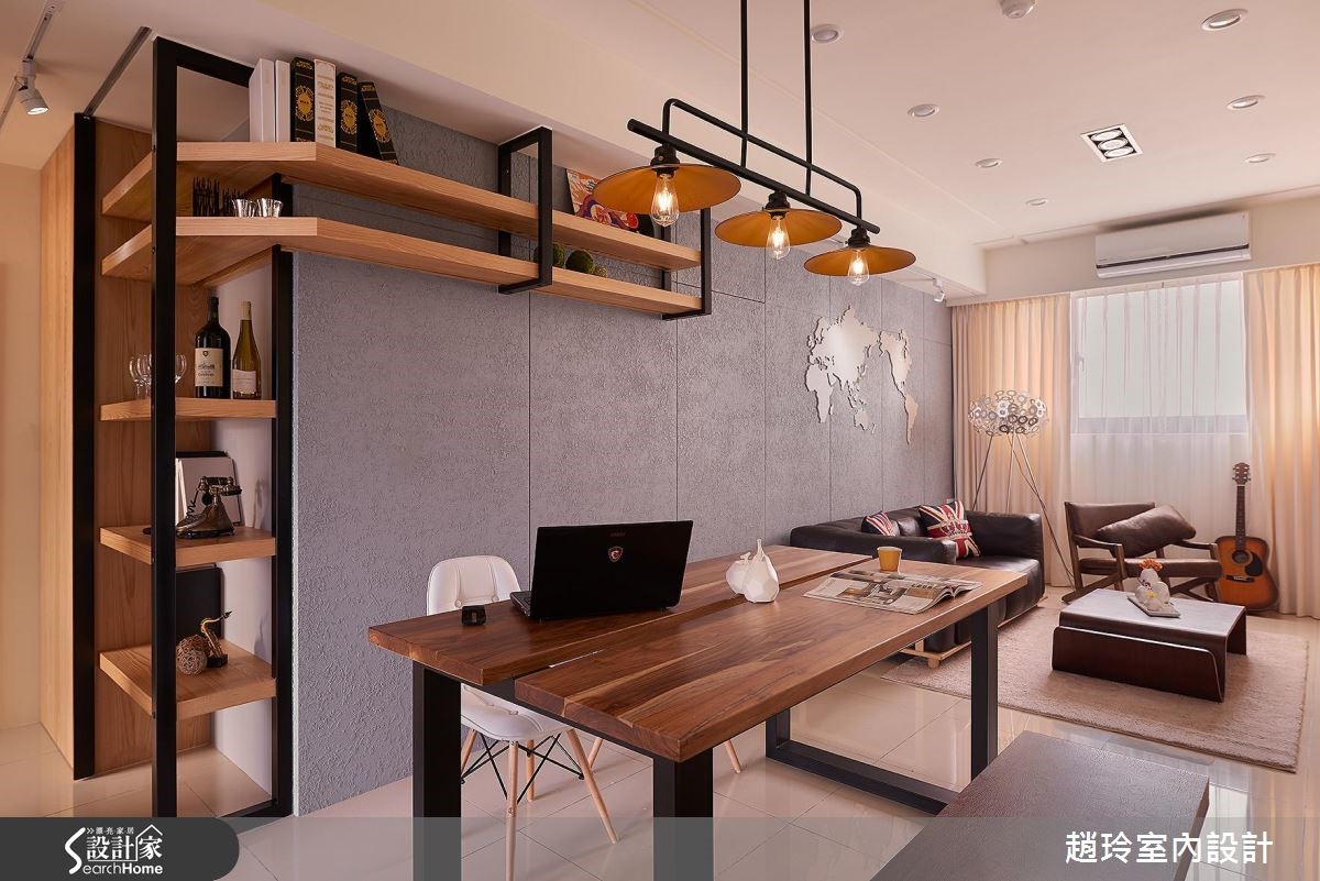 116平方米的住宅,设计师改善采光、动线等问题,并挹注工业元素与休闲风格,营造满室的温馨,不仅融入独特的世界地图装饰、乘载一家人的情感记忆,更运用更衣间、收纳柜等超实用规划,完成了屋主爱妻的梦想。 【改善动线与采光,实现居家梦想】进门后,设计师沿著玄关墙面规划柜体,透过L型动线延伸、以及铁件与实木皮板的搭配,创造导引及展示目的;独特的陶瓷漆铺陈视觉主墙,将餐厅、客厅串联,更巧妙隐藏通往居室的暗门,呈现宽阔平整的效果,墙上的世界地图装饰,勾勒着动人的情感记忆。主卧衣柜融入简约设计,加入线条搭配灰色质漆、映衬日光的投射,呈现素净内敛的风景;而床头多层次的设计,推演出多元的堆叠角度,其中更隐含藏灯处与维修孔位置,再再显示着设计者的细腻巧思!
