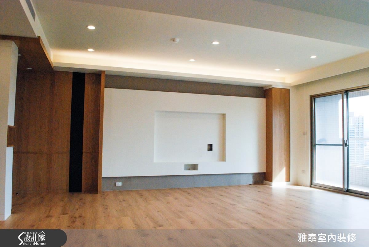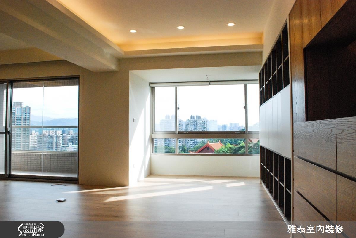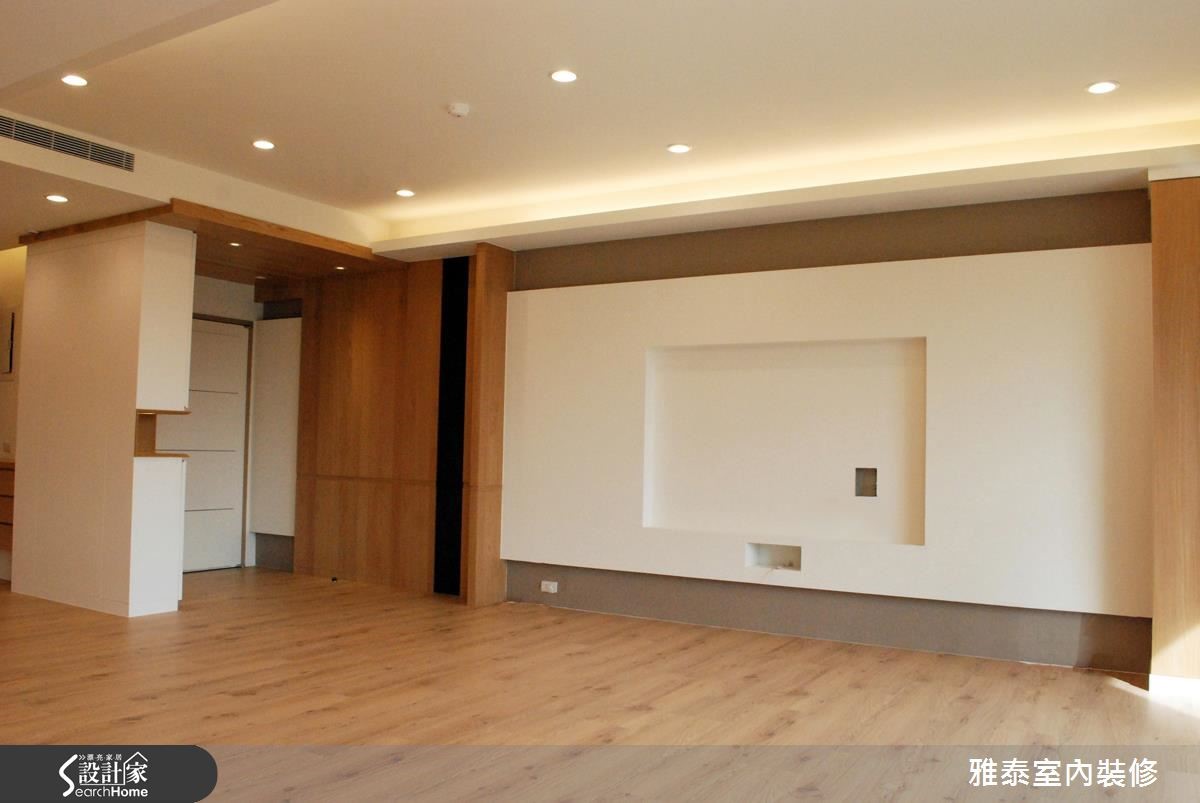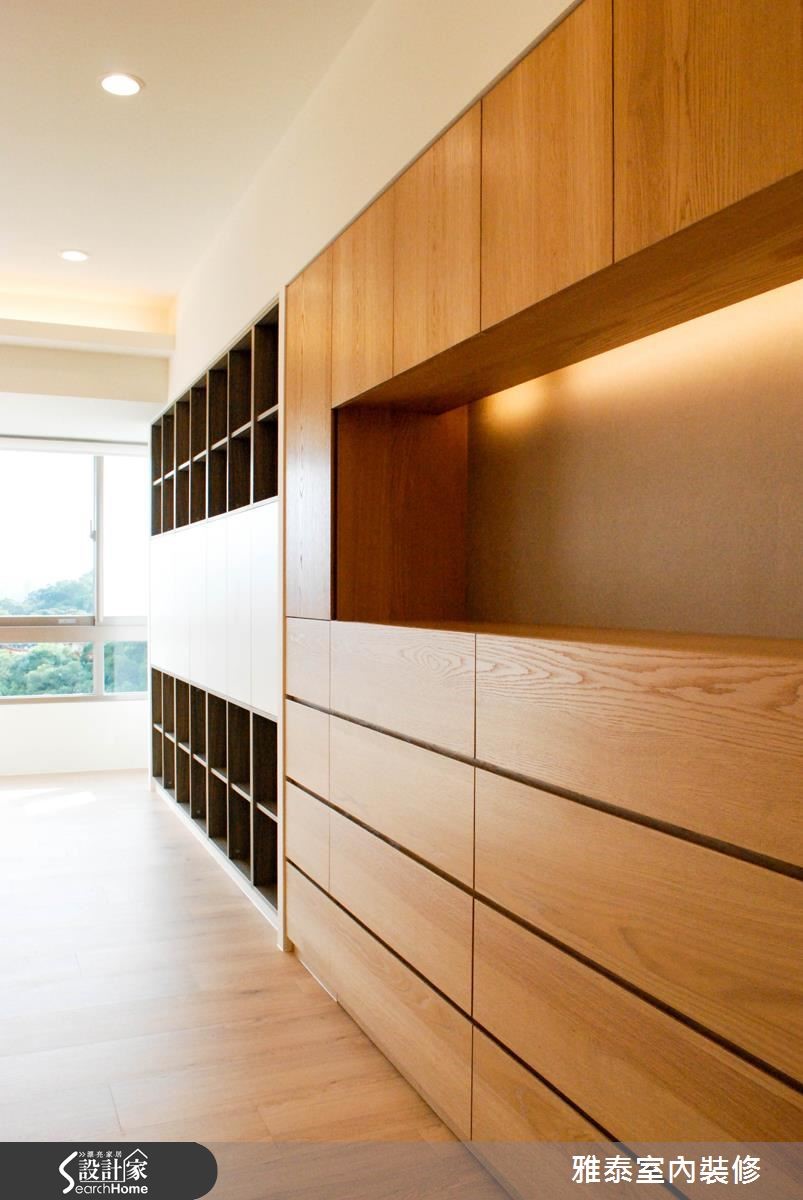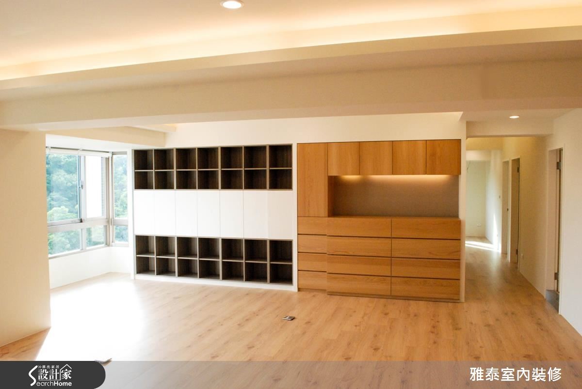 前身为商业空间的215平方米漏水老屋,经由设计师重整规划后,将空间转化为包含开放阅读区、主卧、更衣室、小孩房、客房的住家格局;风格上则注入温润的木作材质,并融合现代简约风格,成功替屋主一圆梦想中的设计蓝图。【清爽木材质,营造舒适空间】在格局规划上,将客厅、餐厅、书房区相互打通,塑造入门即见的宽广公共区域,让疲累整天的屋主进入家门,便可感受不受拘束、开放自在的舒适感;材质选择以浅色调为主,透过木地板与木作收纳柜的配置,满足美感与实用机能。设计师舍弃客厅常见的电视柜,于主墙侧边连结设备柜,电视下方则设有红外线接收器,可将遥控器讯号导入侧边设备柜,此设计不仅整平墙面表情,更满足现代人对无线的需求。