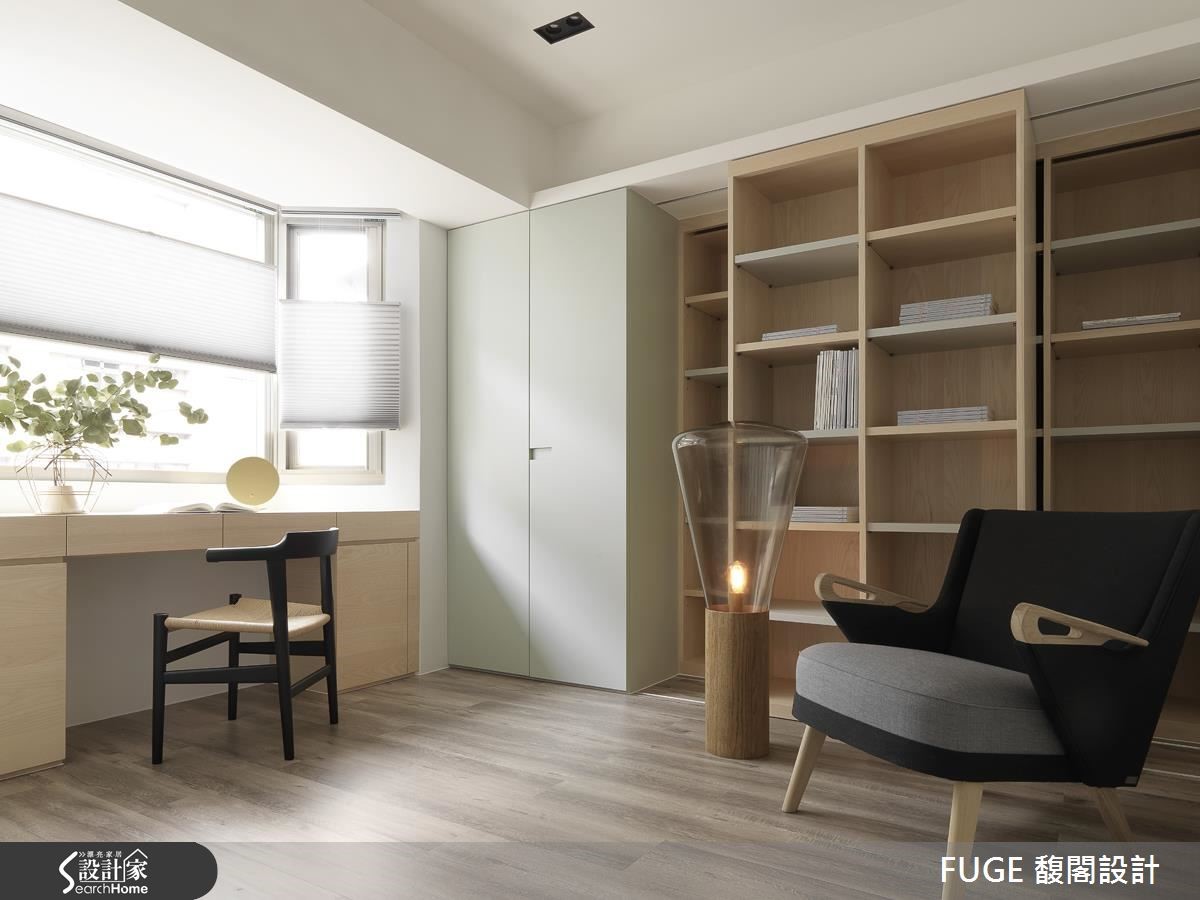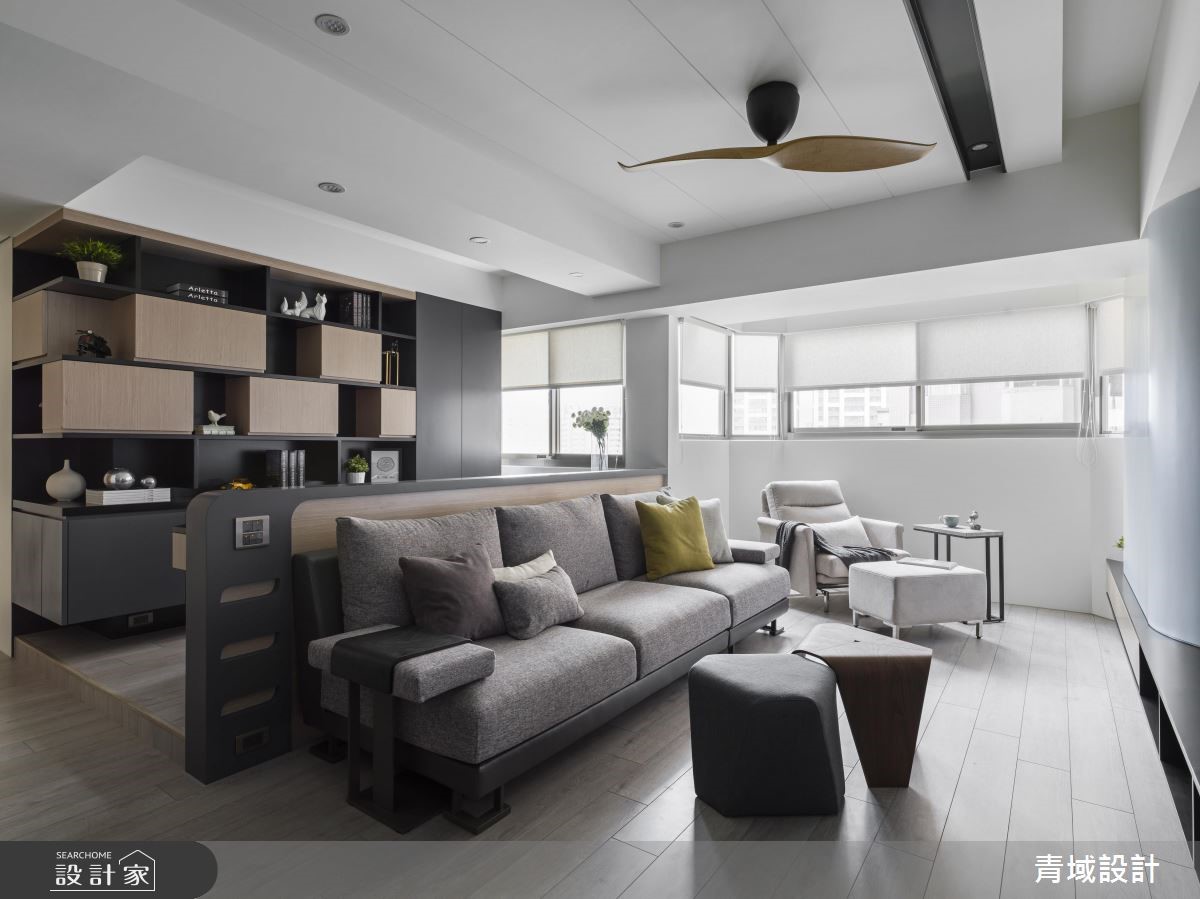 一家四口共享101平方米生活空间,原先厅房封闭、动线分配不均的格局让空间过于拥挤,设计团队重划格局、严选色调与配件,创造宽敞、清爽的视觉展现。 【变更卫浴,以分类概念重整动线】原有的3室2厅为封闭形式,且格局分配设定不符屋主需求,位于客厅后方的主卧配置与卫浴空间压缩客厅尺寸,更造成了走道空间浪费,让空间更显局促。设计团队将空间"分类",将私领域放置在空间右侧,并变更卫浴入口;接着将公领域规划于左侧,成功拓增空间使用,收整原先浪费的走道,让屋主一家人拥有足够的收纳空间与独立书房。针对美感设计,设计团队由线条与色彩着手。大面积收纳柜运用利落线条划分界线,接着以大面积嫩绿色与大地色系,搭配色调轻浅的木材质与金属镀钛,打造清爽、温煦却不失精致质感的现代风格。