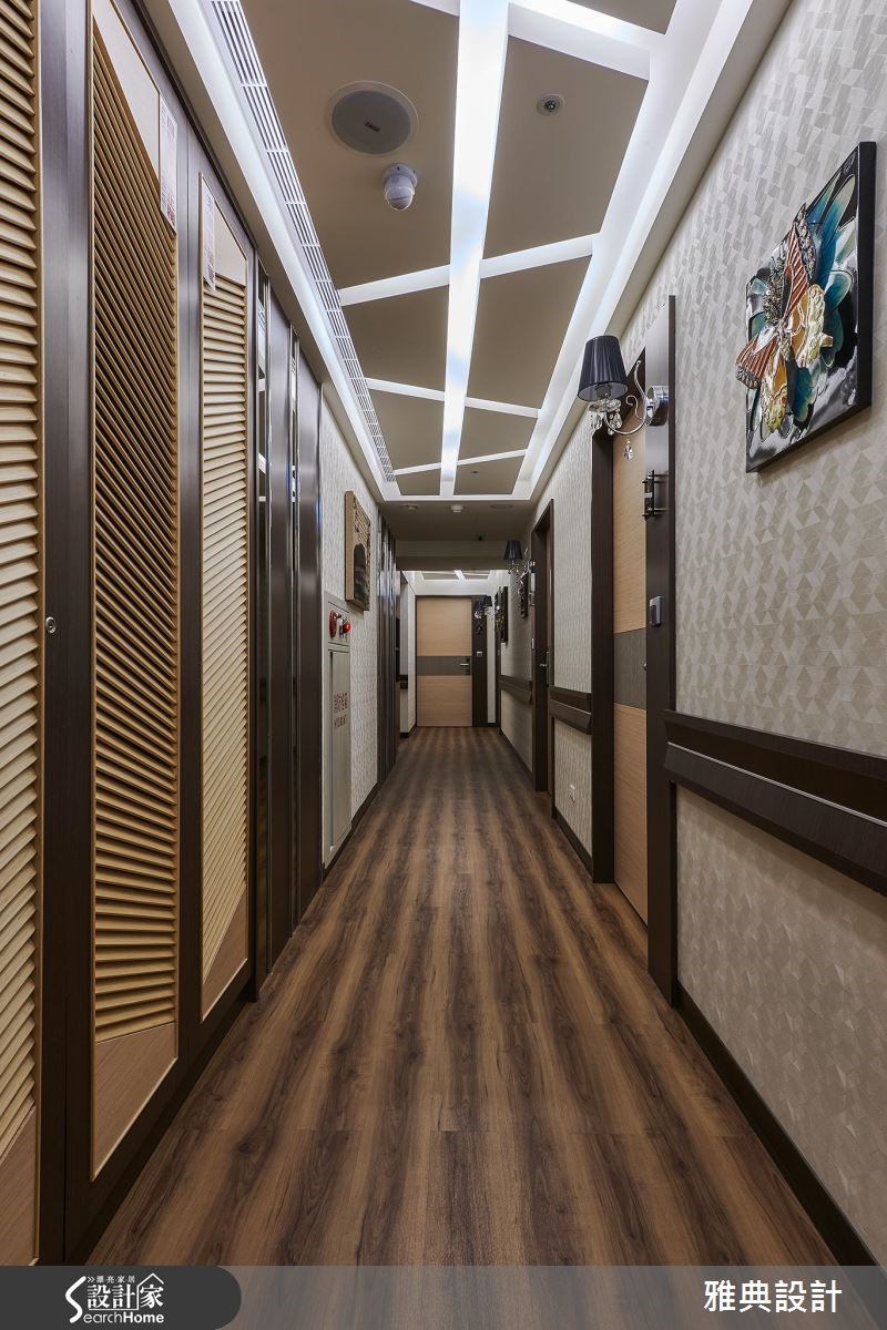 产后护理为女性一生的关键时刻,由专业医疗与室内设计团队携手规划的护理中心,全然考虑产后女性的细致需求,体现在动线规划与格局安排,让坐月子就像在酒店度假一般。【柔和色调,营造温馨情境】由于本案为老屋翻新,加上母婴护理中心更重视居住安全,在动线、机能与风格做出细腻考虑,消防设备更是不容忽视。空间以奢华风格为定调,大门菱格设计提升质感,迎宾区域结合会客室,以细致的水晶灯、高背拉扣单椅,搭配私藏的古典风格摆设,打造雍容气息。廊道全然以安全为考虑,铺设耐磨地板与木质扶手,佐以格菱天花设计,美观与机能兼具。设计团队共规划12个居室,皆是26~33平方米的酒店级规格,采用清爽色调、配备齐全的亲子辅助与空气清净设备,更贴心采用宽敞的干湿分离卫浴。针对隔音设计,设计团队除了将婴儿房设置于大厅旁,更在每一个隔断内部采用泡棉与静音条,让妈妈们全然安心静养。针对婴儿房设计,除了杀菌消毒机能,更配置一对一视讯,让妈妈不用下床也能随时关心宝贝。