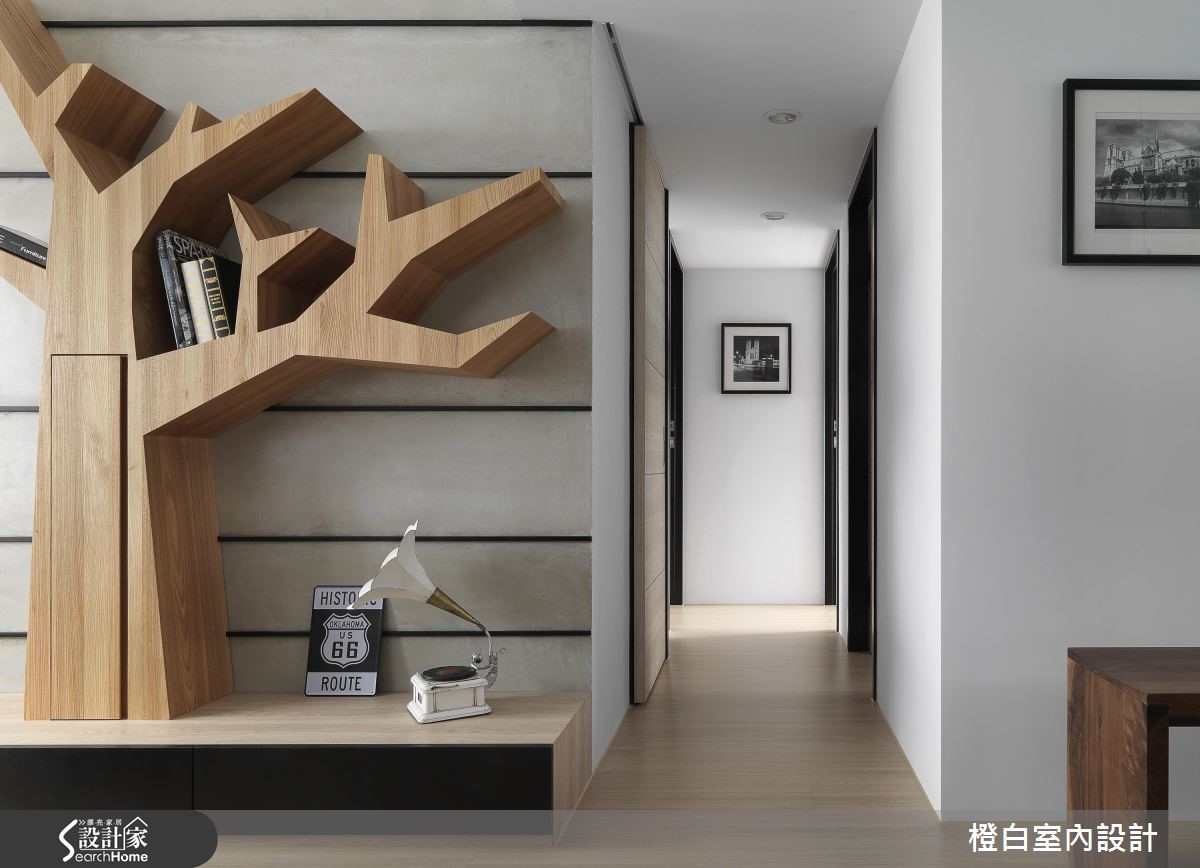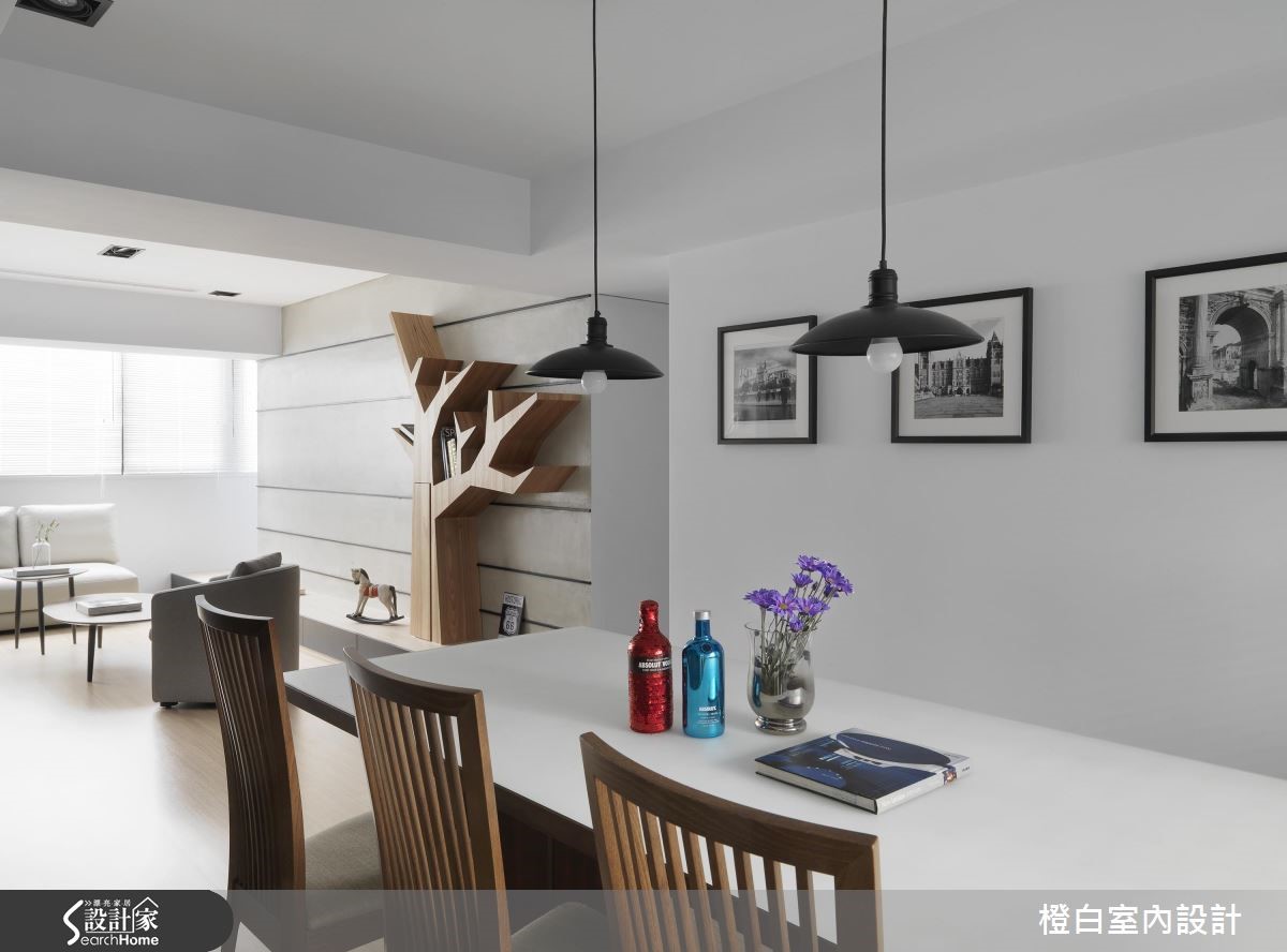 28 坪中古屋居宅,设计师以简约风加以改造,呈现低彩度的沉静视野,并注入美型机能设计、搭衬装饰软件佈置,让家的每一处尽现艺术品味,快跟着小编一起走进来看看吧!居家墙面运用或深或浅的灰色铺陈,搭配浅色沙发陈设,呈现协调的平衡色调,将简约感展露无遗,电视墙则刻划横向线条、型塑延展立面的效果,底部则结合低檯度开放平檯,作为绝佳的展示空间,且间接整合了视听柜机能,减少零碎而杂乱的柜体摆设,一旁则採用木作打造树状装置艺术,不仅提供收纳机能,也促成居宅内的视觉亮点;循着结构柱与大樑位置,自然地分化出餐厅区块,空间延续了素樸的灰色底蕴,搭配色系一致的木柜、餐桌椅,营造休閒雅致的用餐氛围,并透过垂直线性修饰量体表情,无形中与电视主墙形成趣味呼应;寝卧设计了角度极大的斜屋顶,除了修饰格局,亦勾勒独特的线条趣味,同时採以明亮的蓝色挥洒床头墙,描绘明亮、轻爽的起居调性!小编的最爱为了增添空间视觉立体度,设计师选用小幅摄影作品加以装饰,并抽离鲜豔色彩,透过黑白照片体现画面细节,干净而简洁,令人印象深刻!