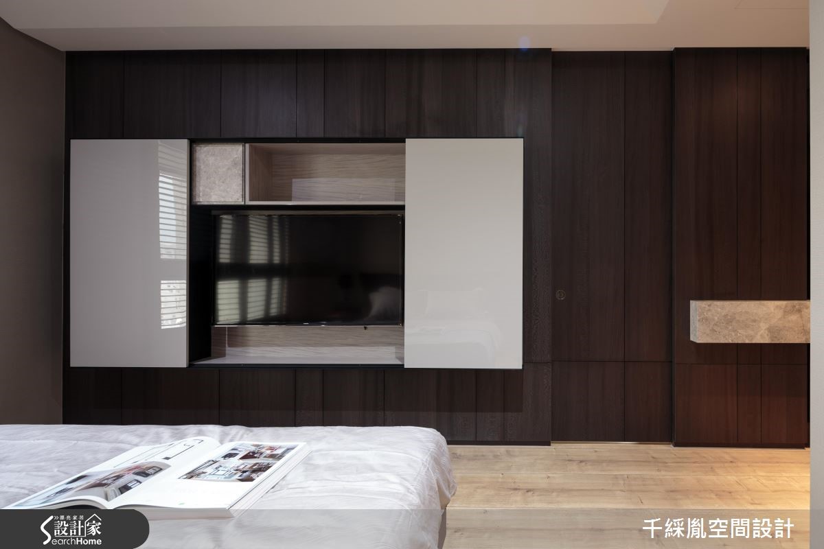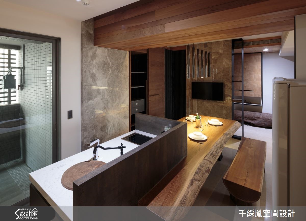 198平方米的宽阔场域,设计师给予大器的居家主题,并透过木作强调休闲简约,搭配石材的现代大器感,以自然材质描绘大宅的美丽表情。【善用材质混搭,展现自然之美】设计师以质朴的木与石贯穿全室,不仅修饰横梁存在,也构成俐落的壁面造型,大理石打造的电视主墙,刻意地融入斜角修饰,与天花板横梁衔接,在别出心裁的手法下,将空间缺陷化为美感造型;餐厨区则结合实木餐桌与中岛机能,让使用更顺畅。主卧铺陈木地板,搭配色系一致的木家具及木窗,营造素净的禅风主轴,床头墙反差地以亮面材质打底,衍生古朴与现代并存的对比之美,而电视则隐藏于弹性柜面之内,赋予墙面多重机能,重新定义立面表情。