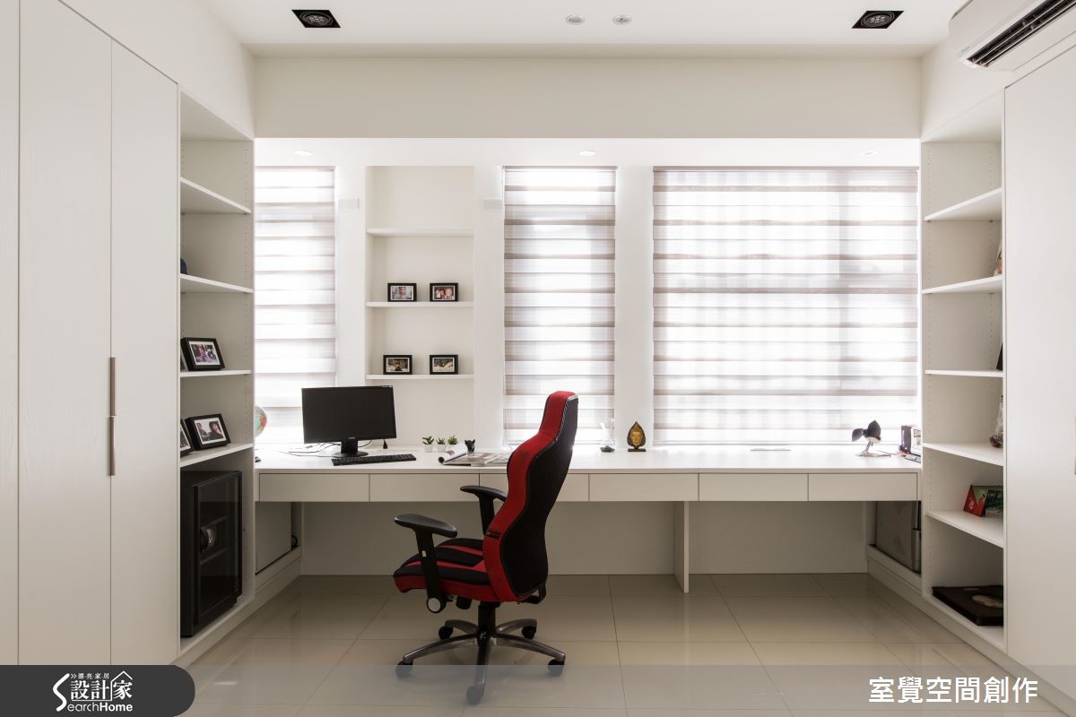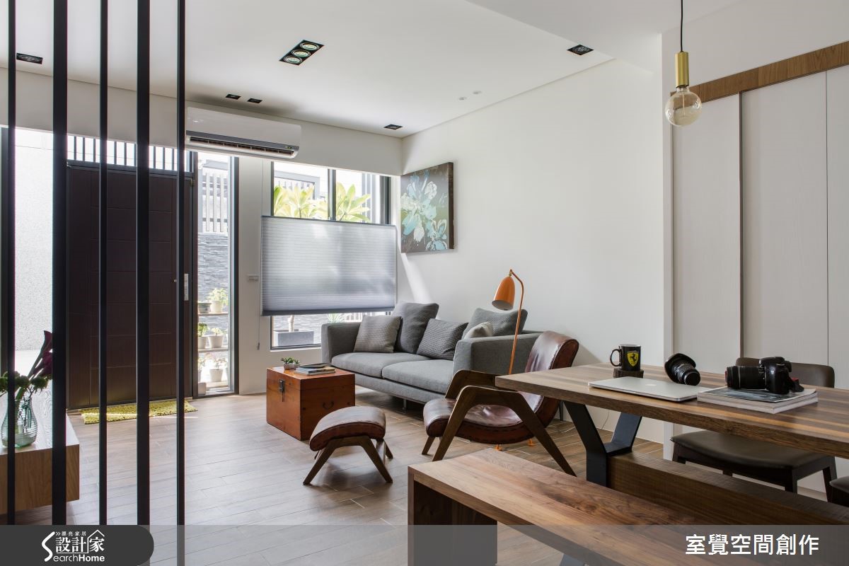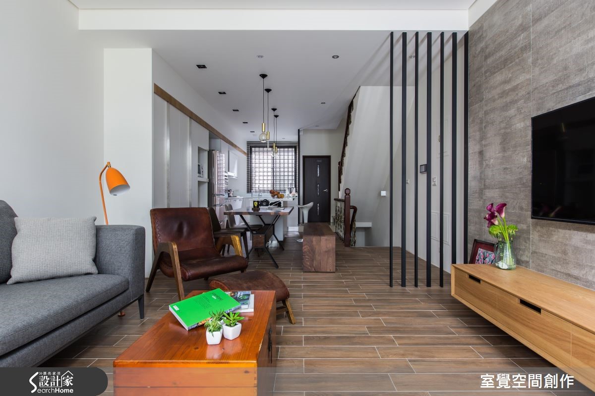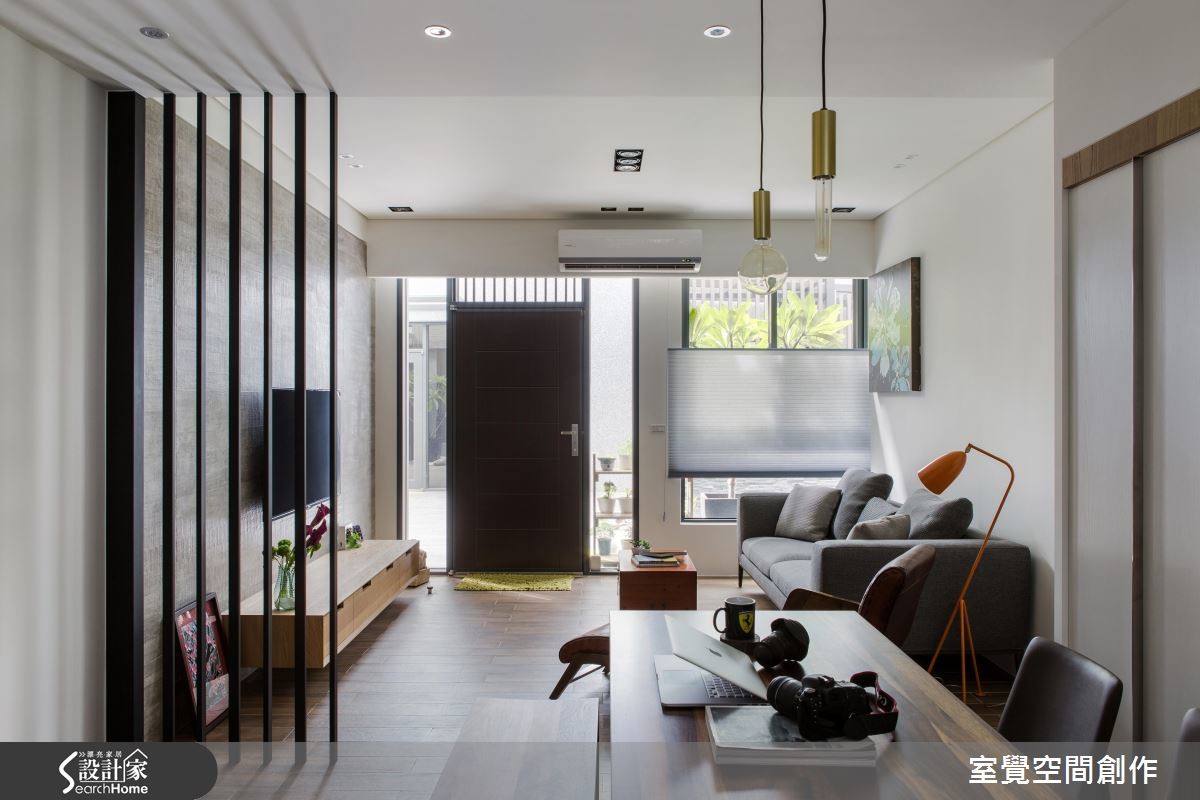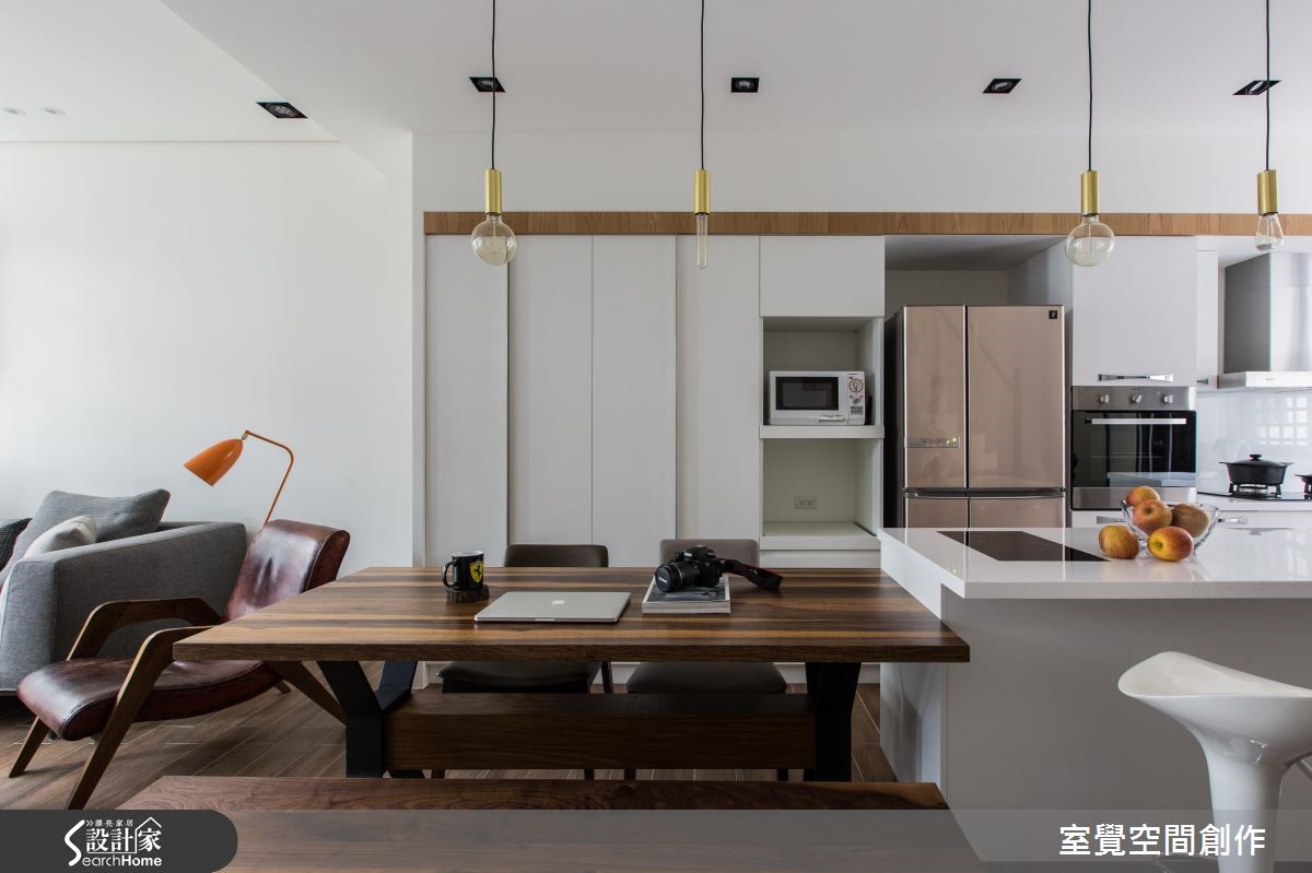 99平方米居宅原始格局略显狭长,所幸前后采光条件不差,于是改建既有的U字型厨房、因地制宜作出一字型中岛,把生活动线完整串联,同时也满足女主人梦想中的清爽书房,打造出明亮舒适的人文居所。 【开放手法扩充采光,造文青感】设计师让公领域呈开放格局,将客厅、餐厅与厨房延续串联,使采光得以相互共享,并让墙面适度留白,拉阔整体空间感,佐以深色木质家具,还原明亮舒适的生活。通透木格栅、温润木餐桌则重新定义了现代风格,植入些许禅风韵致;让公领域既可作为招待亲友的聚会场所,也体现恬淡自适氛围。书房内配置调节窗帘,汲取合宜采光,再搭配白色调使空间轻盈,并规划柜体收纳需求,确保视觉清爽利落。