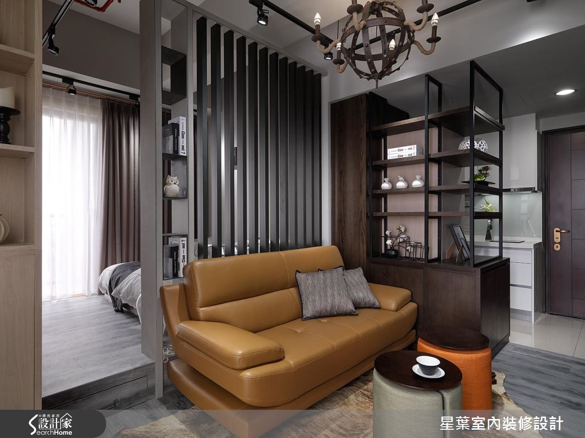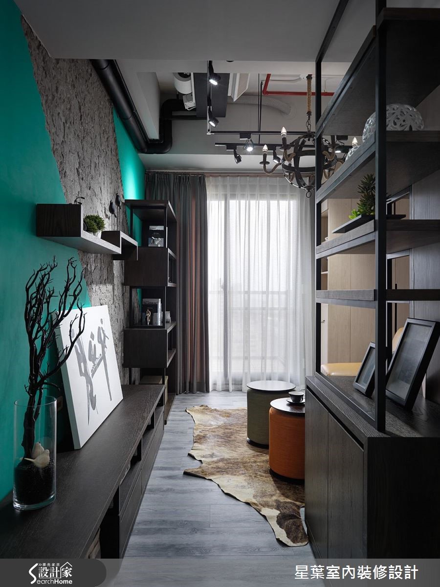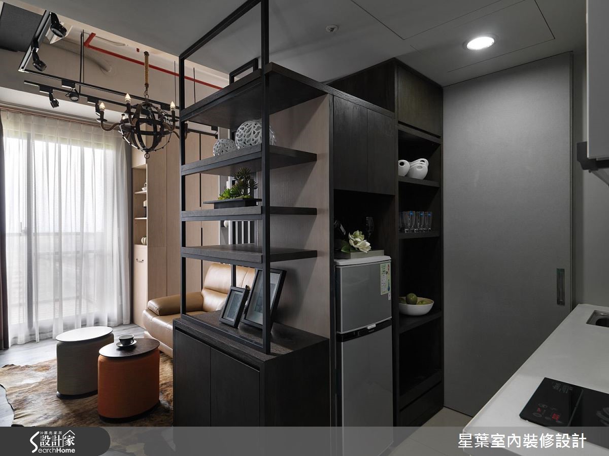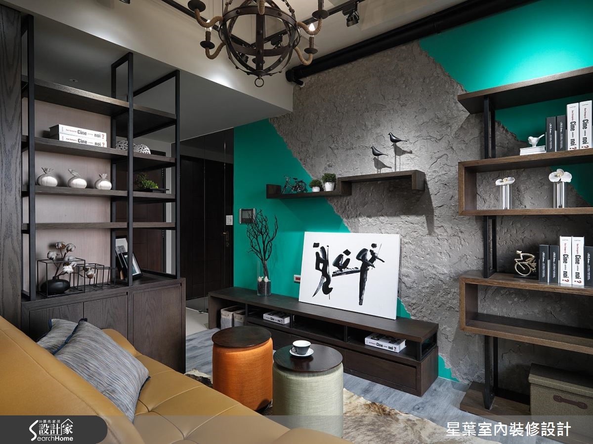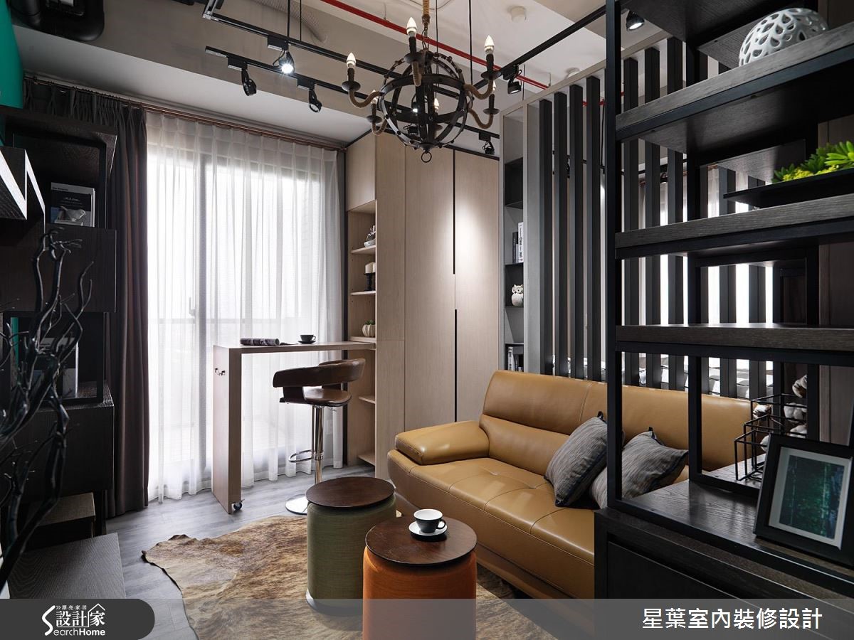 36平方米的小户型空间,设计师凭借有限预算,整合各项收纳机能、妥善运用每吋空间,同时融入放大而穿透的设计手法,让居宅充满个性魅力,满足居家美感和实用性。【格栅取代沙发墙,达成引光效果】在有限的空间中,设计师为强调光与视线的连续性,让沙发墙采以格栅型式呈现,替后方的卧眠区域引光、强调通透的空间感。电视主墙则透过异材质混搭,让充满现代感的绿色块面创造出视觉焦点,同时装置层板、落实轻盈的机能表现,构筑成一幅美妙的视觉意境。【以窗边柜体,延展生活动线】设计师藉由柜体各自铺排生活动线,区划出阅读、用餐、厨房等主题领域,窗边更规划整排柜体延展动线,并暗藏小巧的开放式吧台、不使用时可加以隐藏;卧房则将底部架高,并在地坪底下规划收纳空间,不着痕迹地隐藏机能,建立充满弹性的使用情境!
